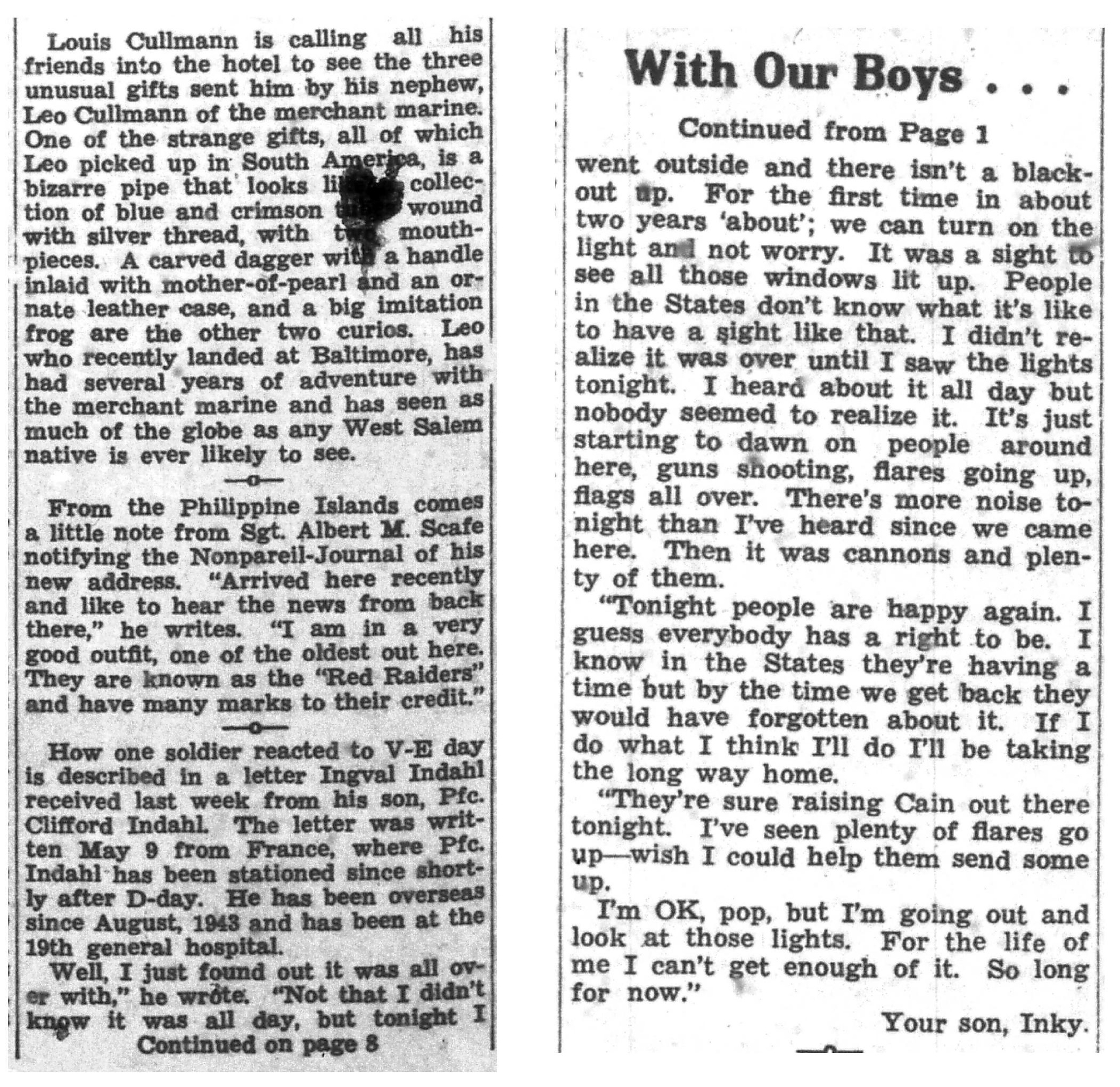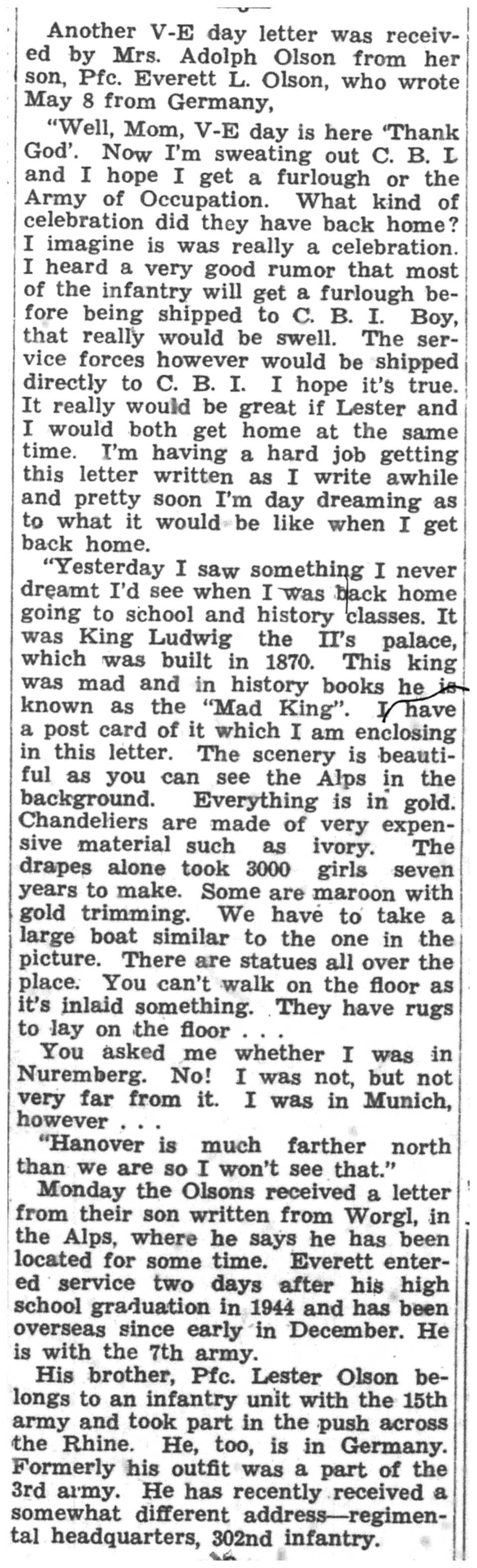 | 1945-5-8 | La Crosse Tribune p9 | |