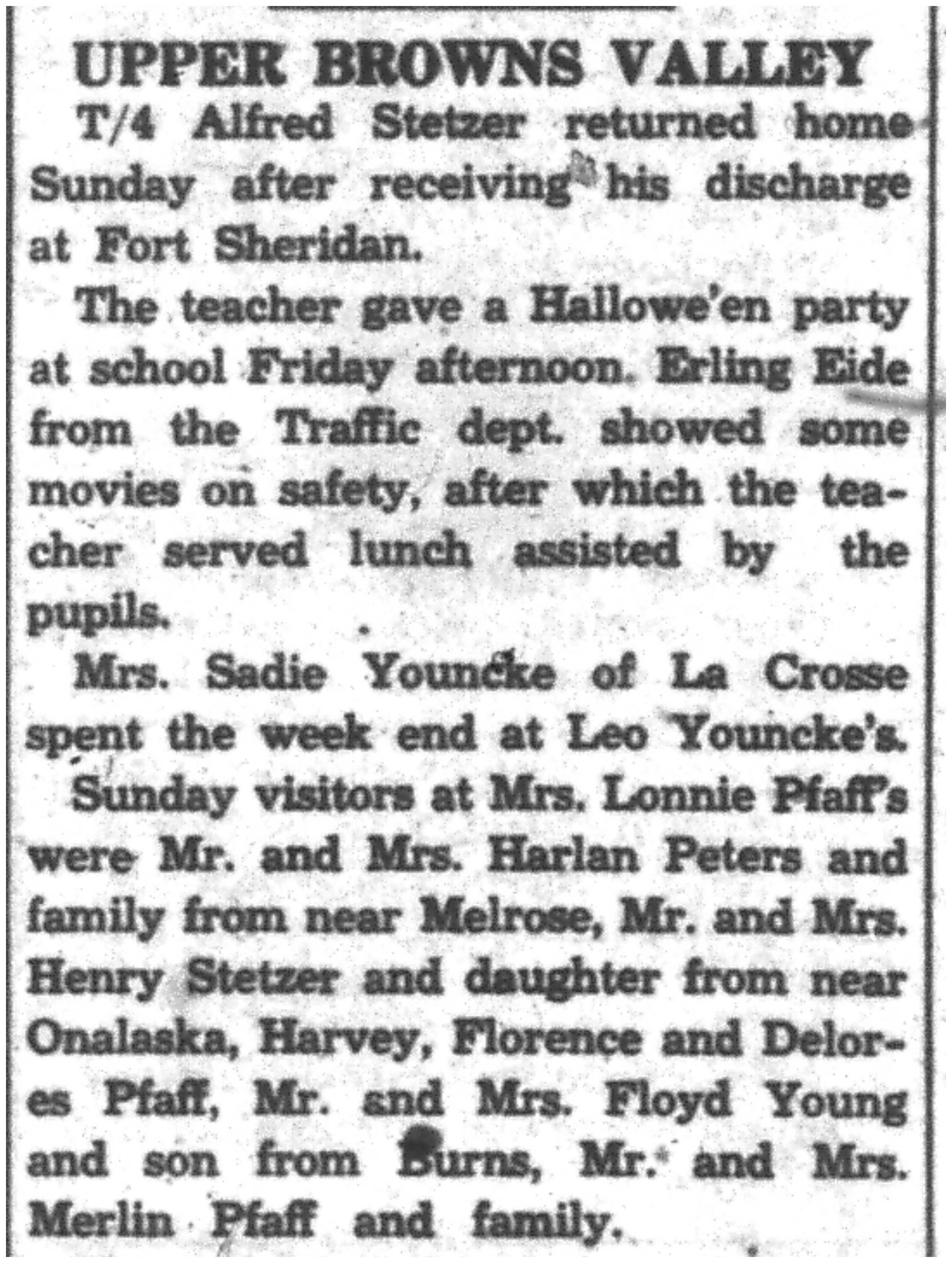 | 1945-11-8 | La Crosse County Record p5 | |