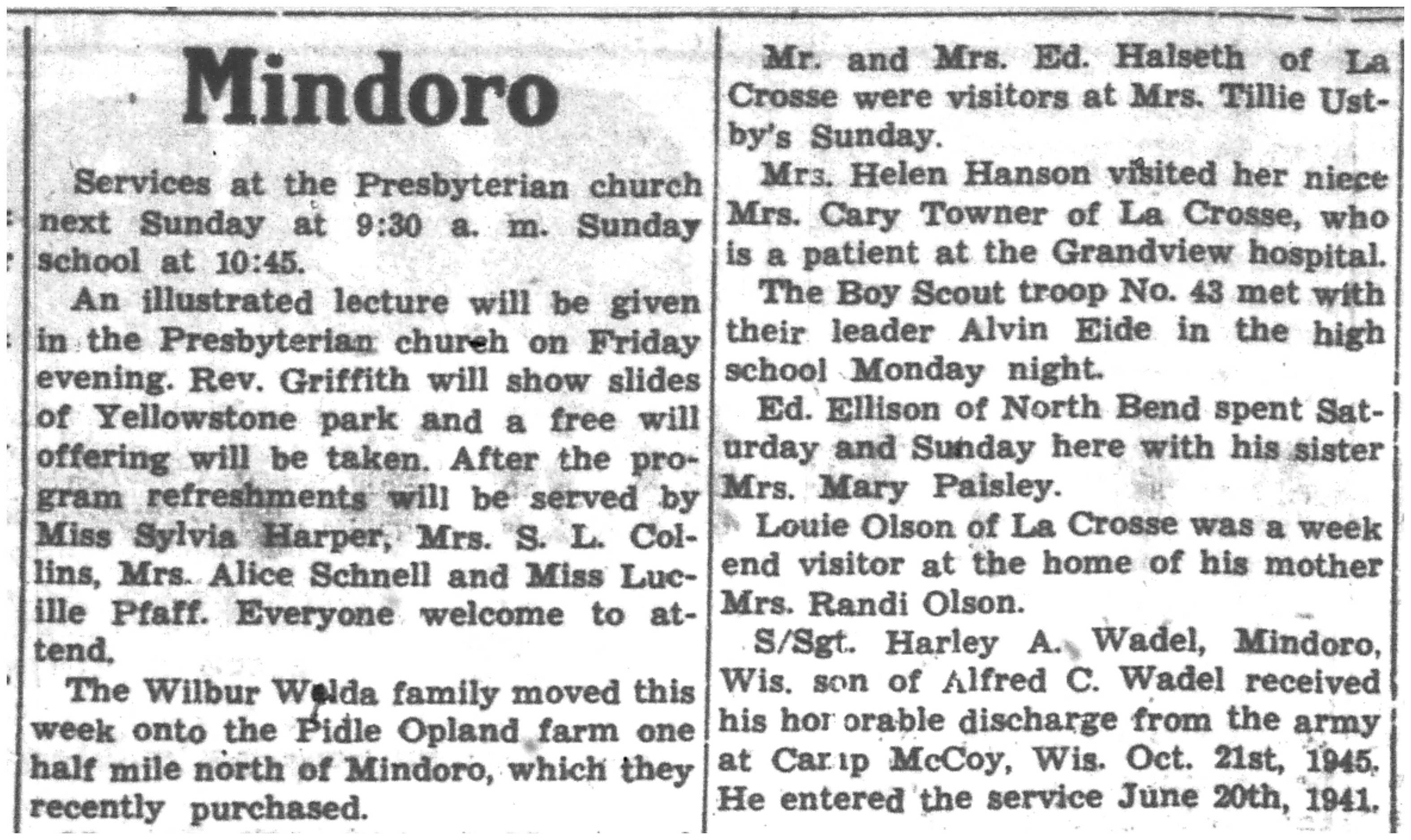 | 1945-11-29 | La Crosse County Record p8 | |