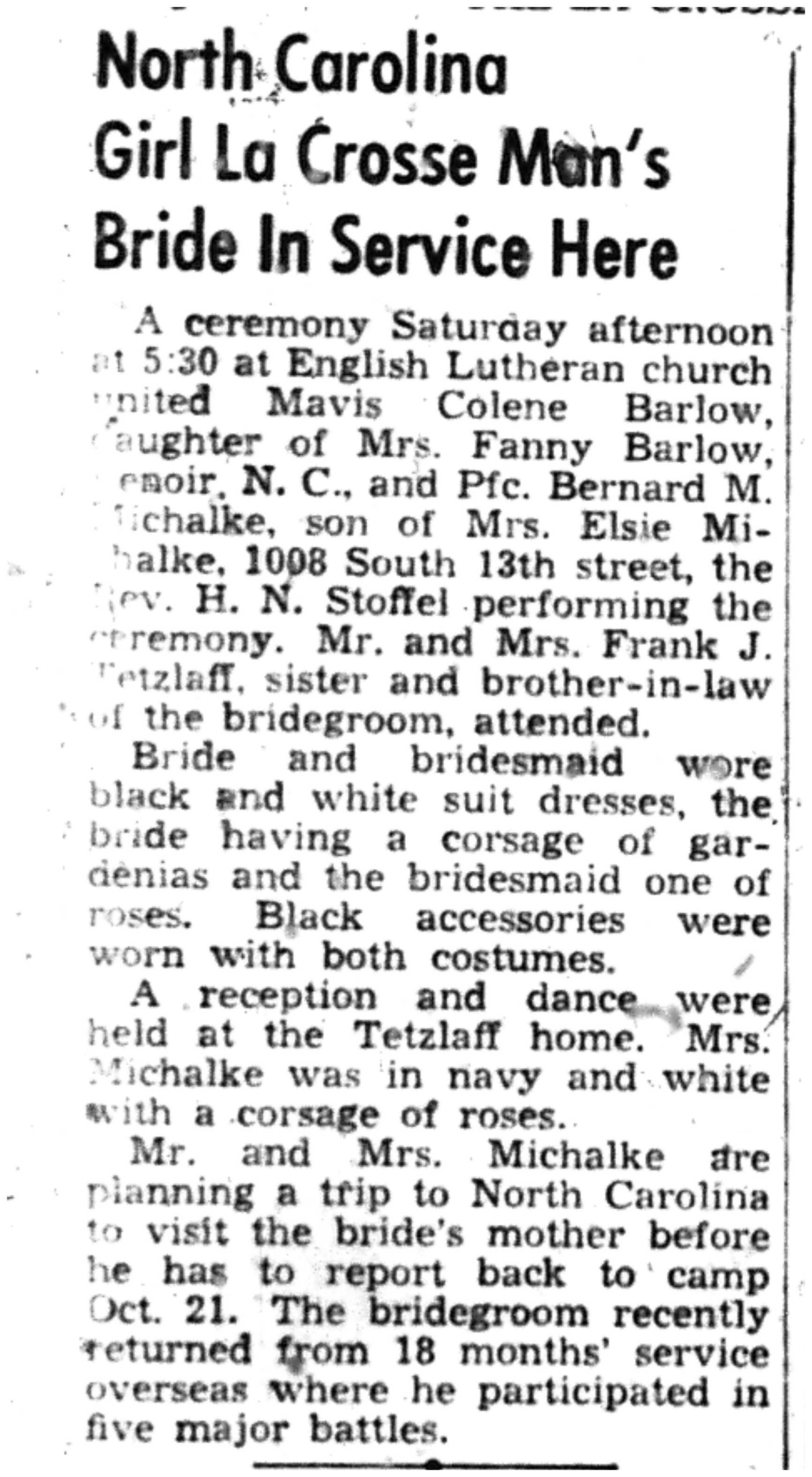 | 1945-10-1 | La Crosse Tribune p4 | |