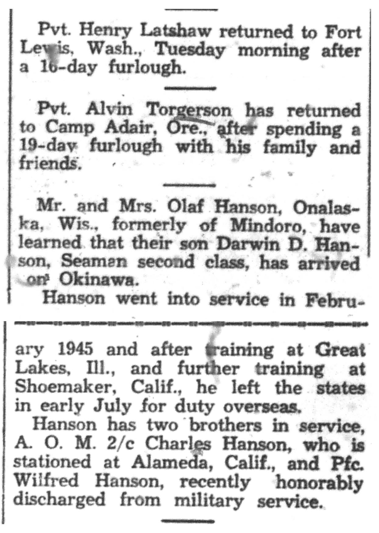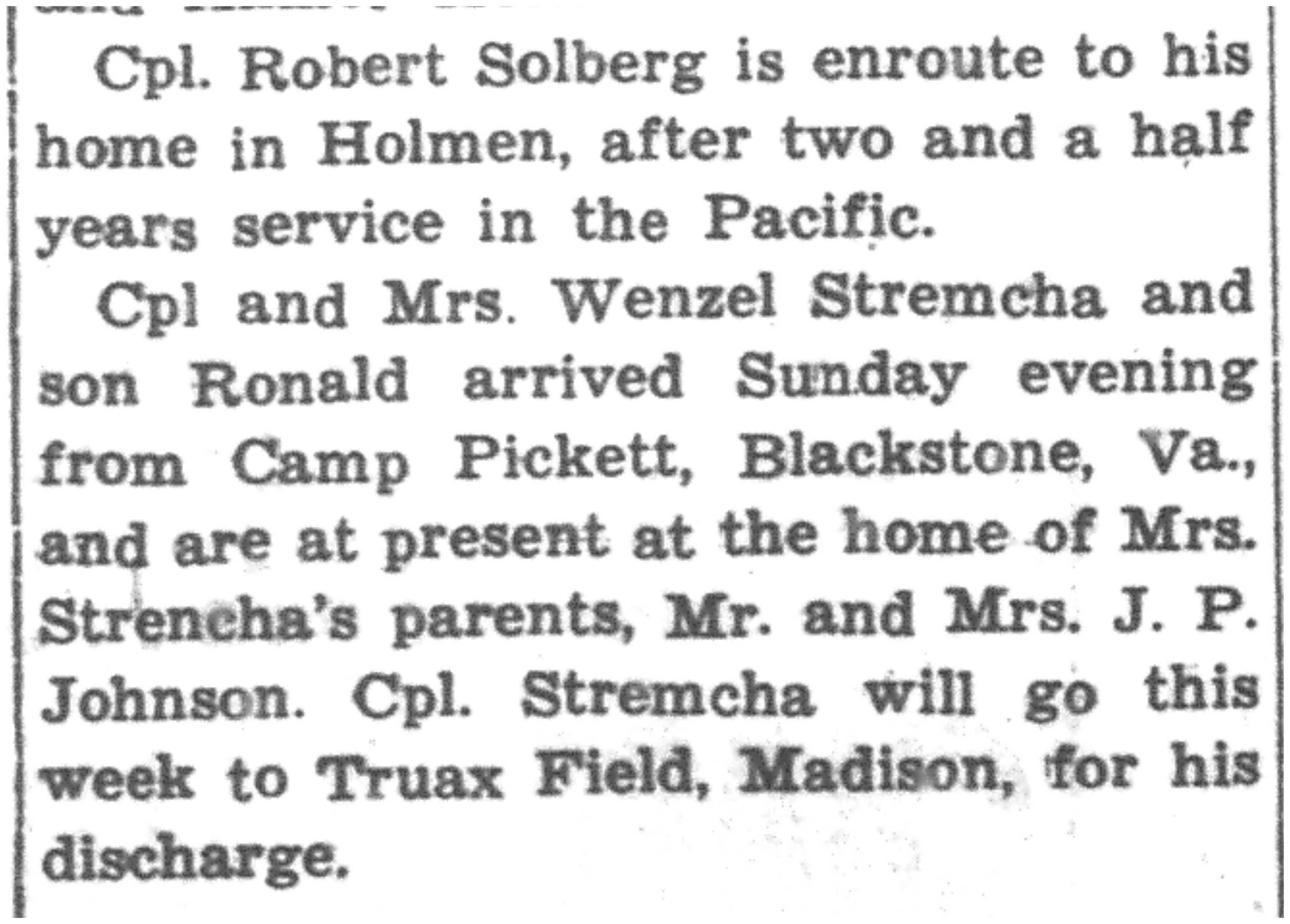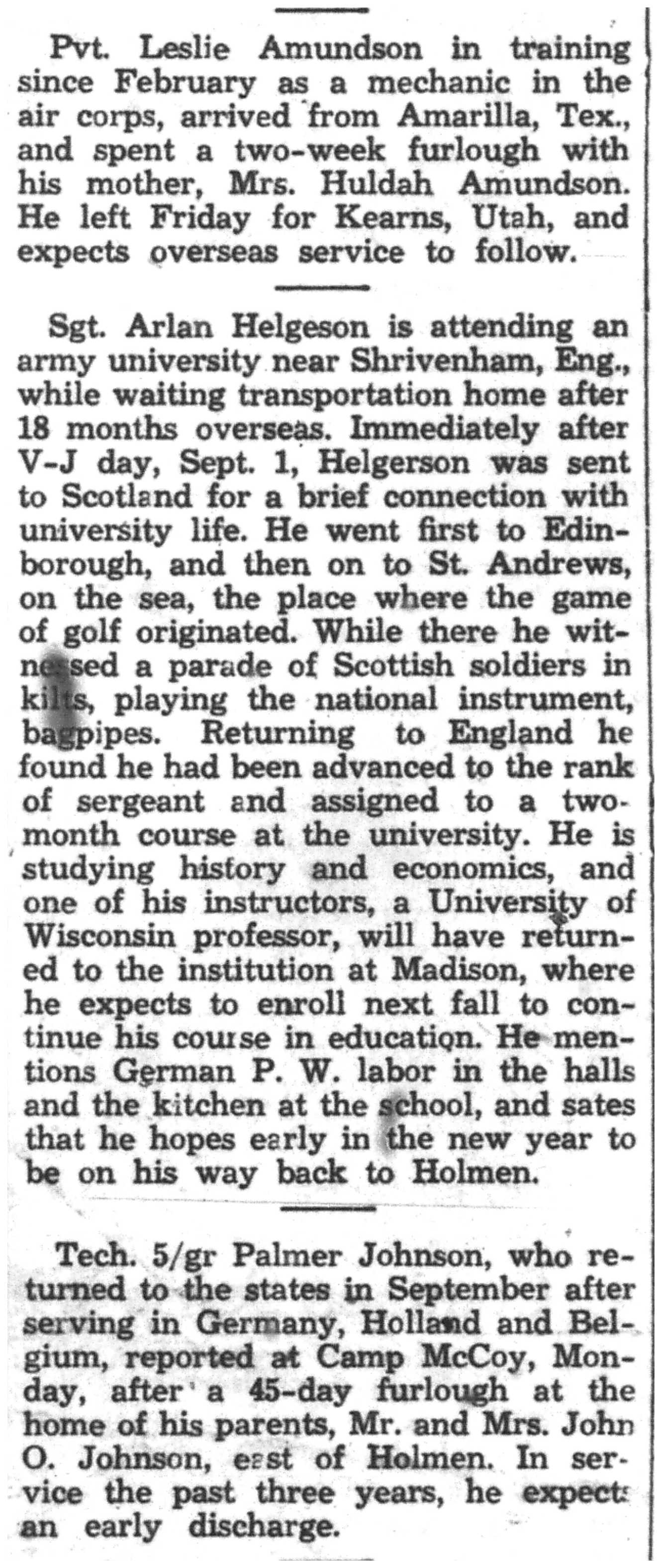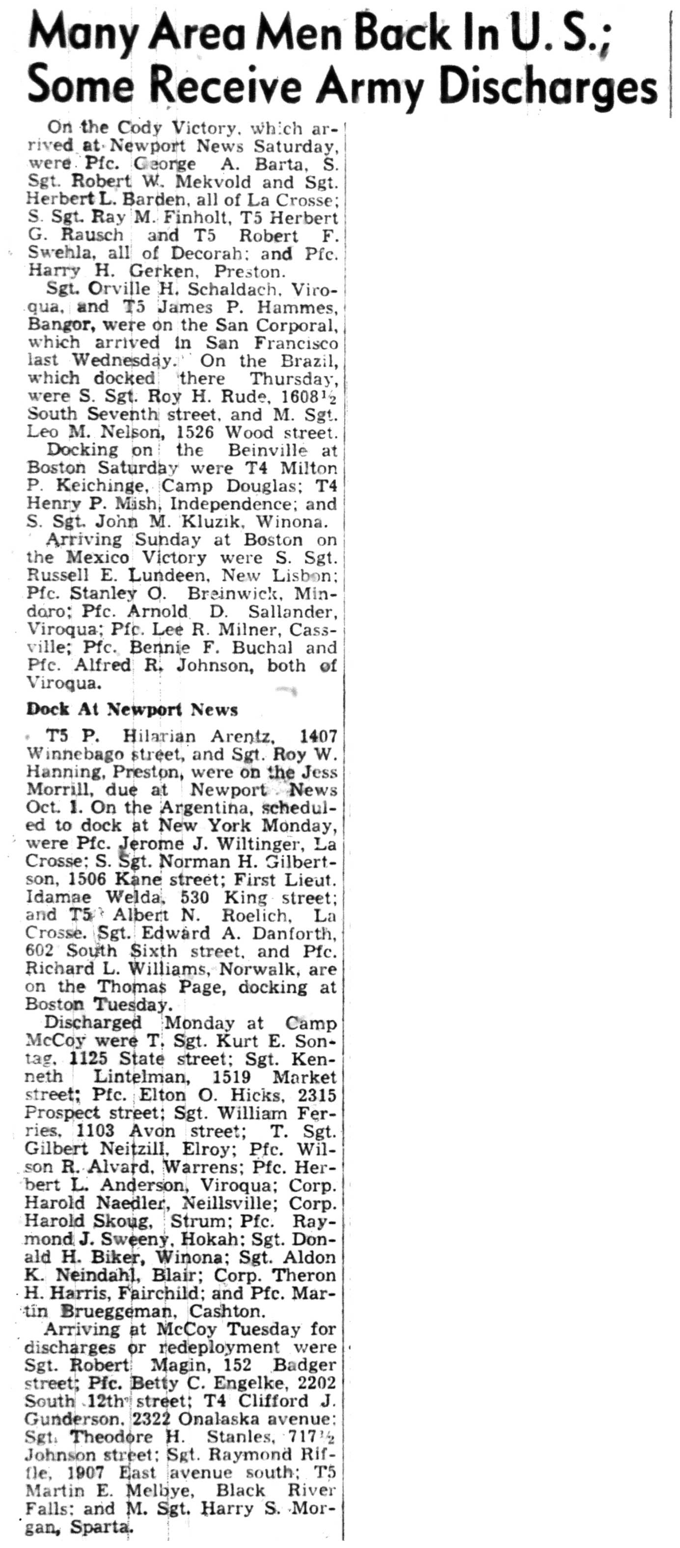 | 1945-10-1 | La Crosse Tribune p5 | |