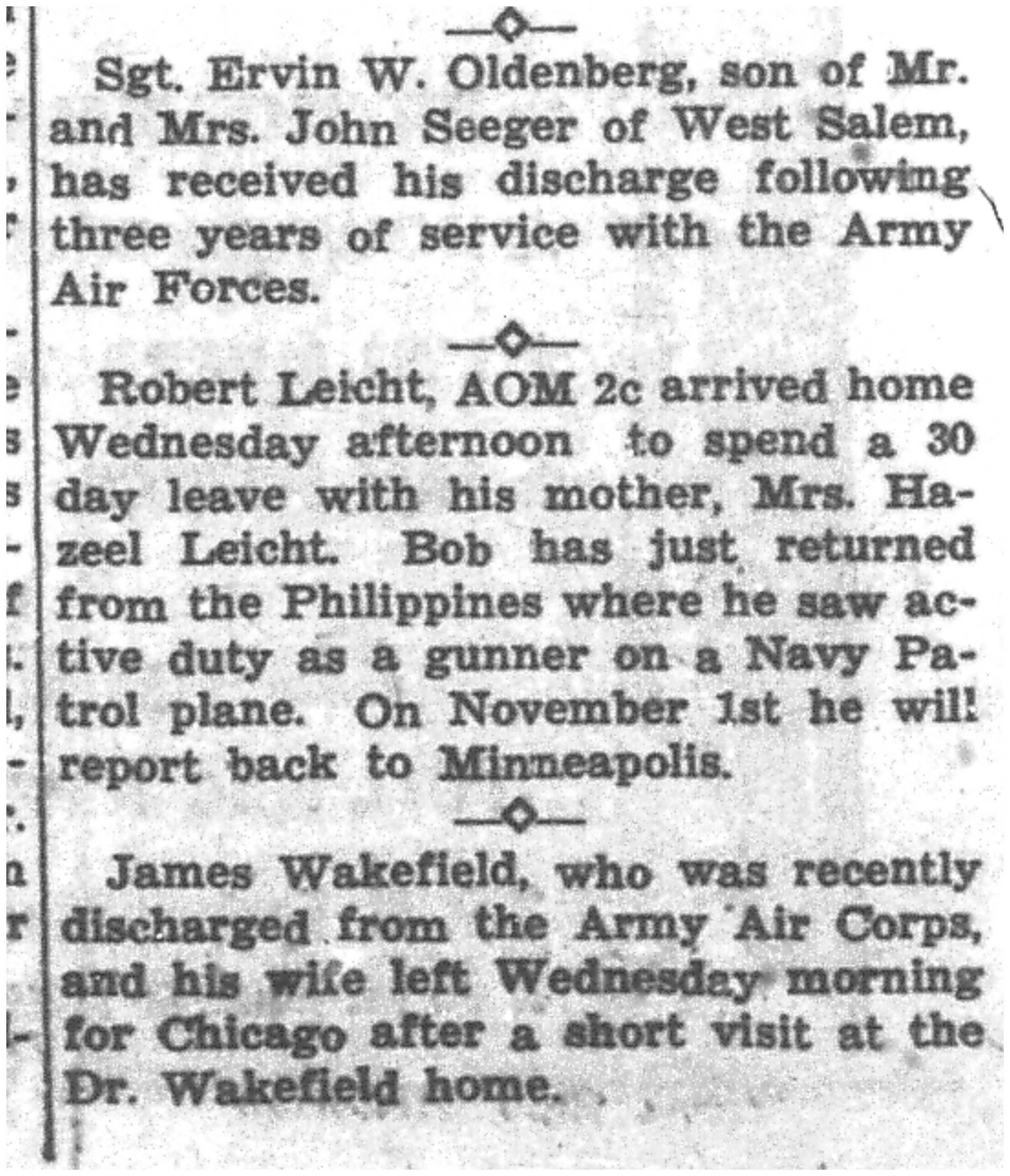 | 1945-10-11 | La Crosse Tribune p14 | |