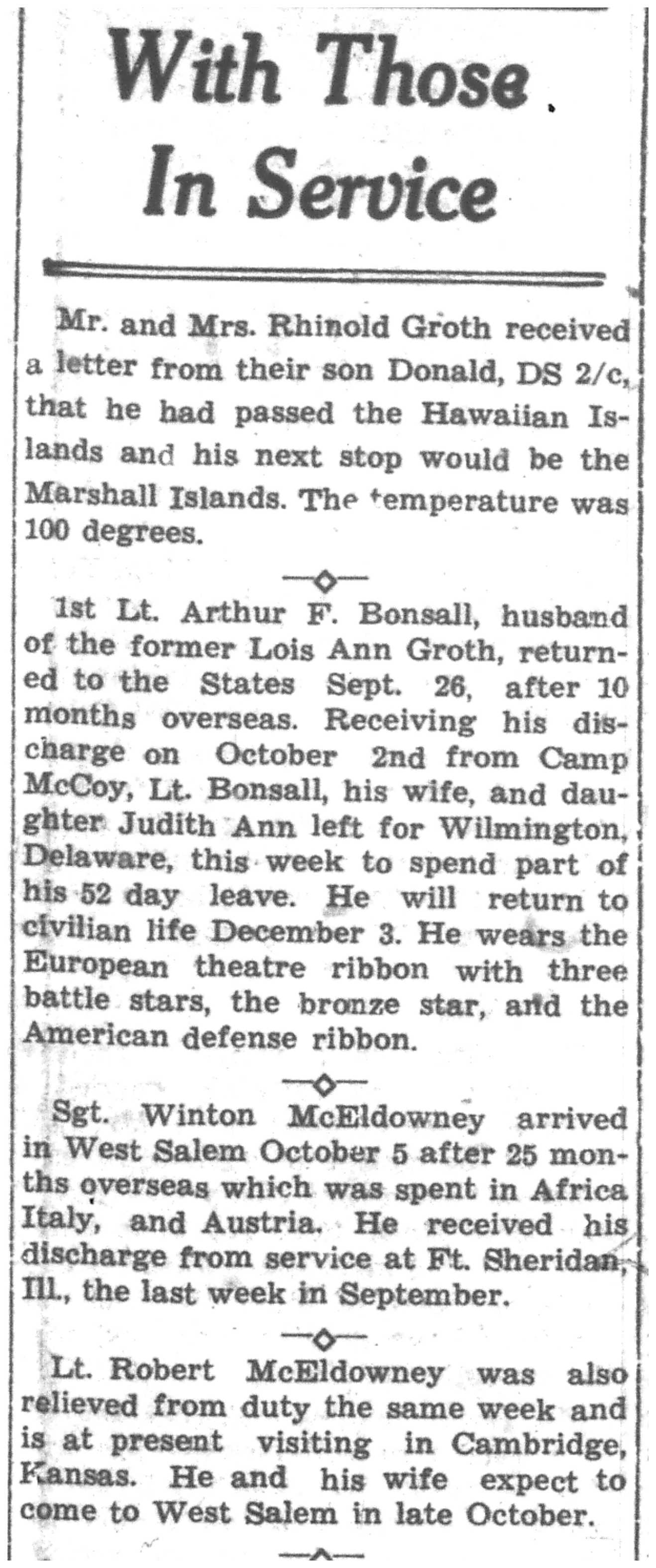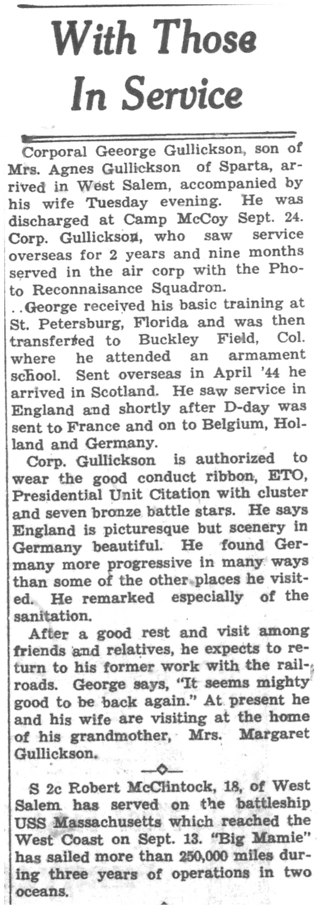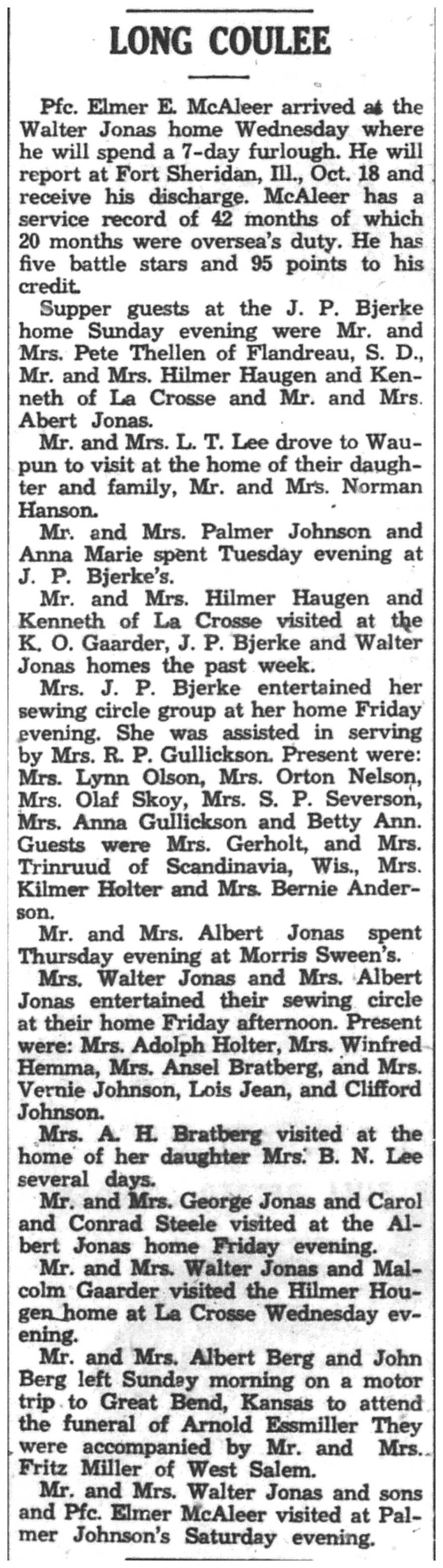 | 1945-10-11 | La Crosse Tribune p4 | |