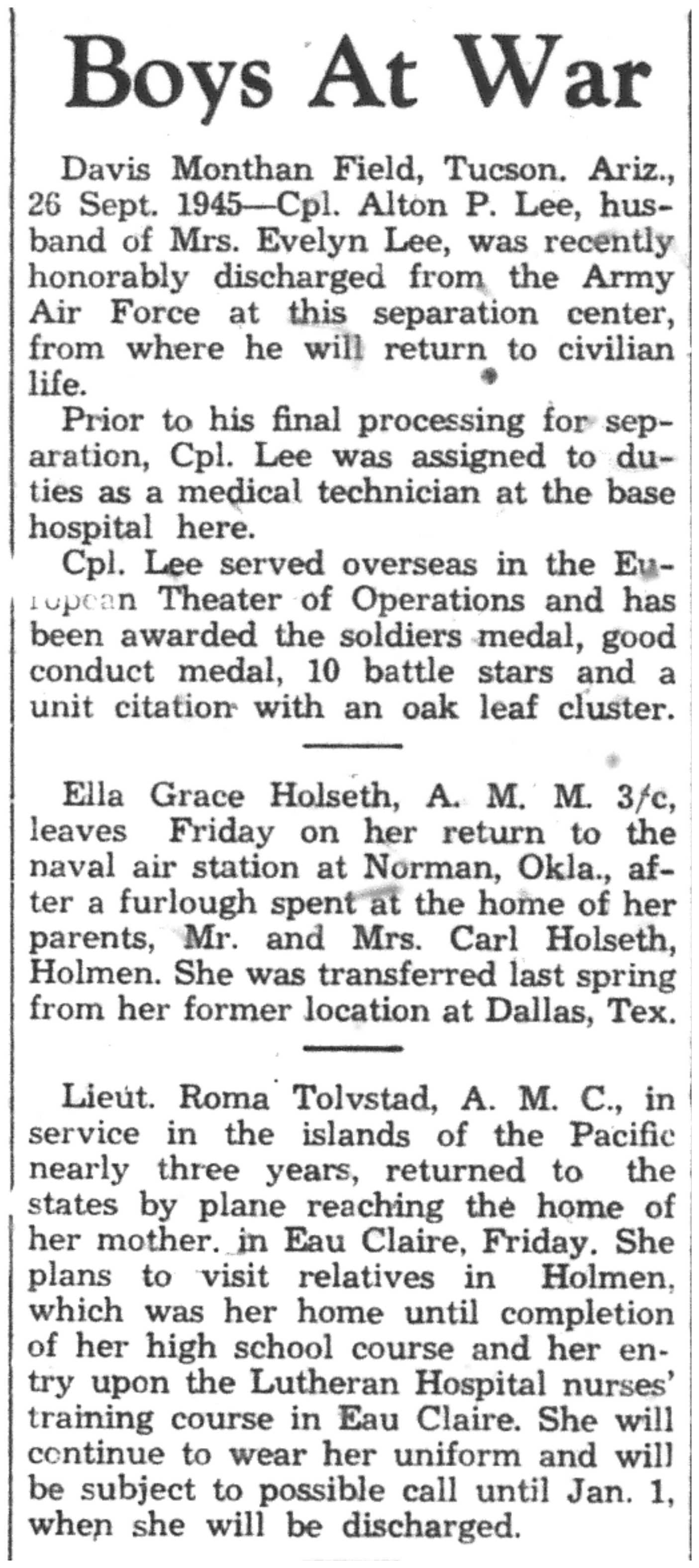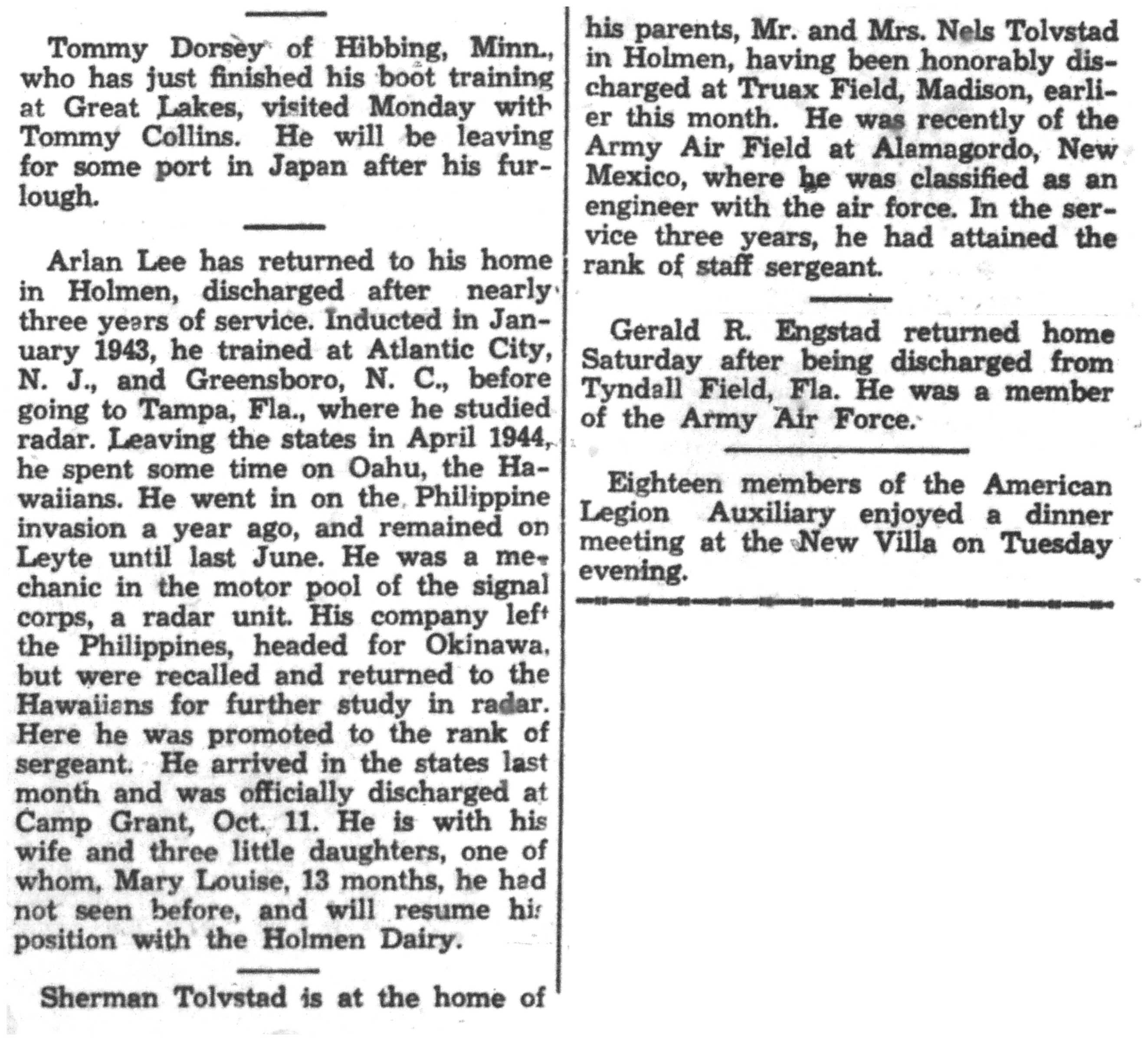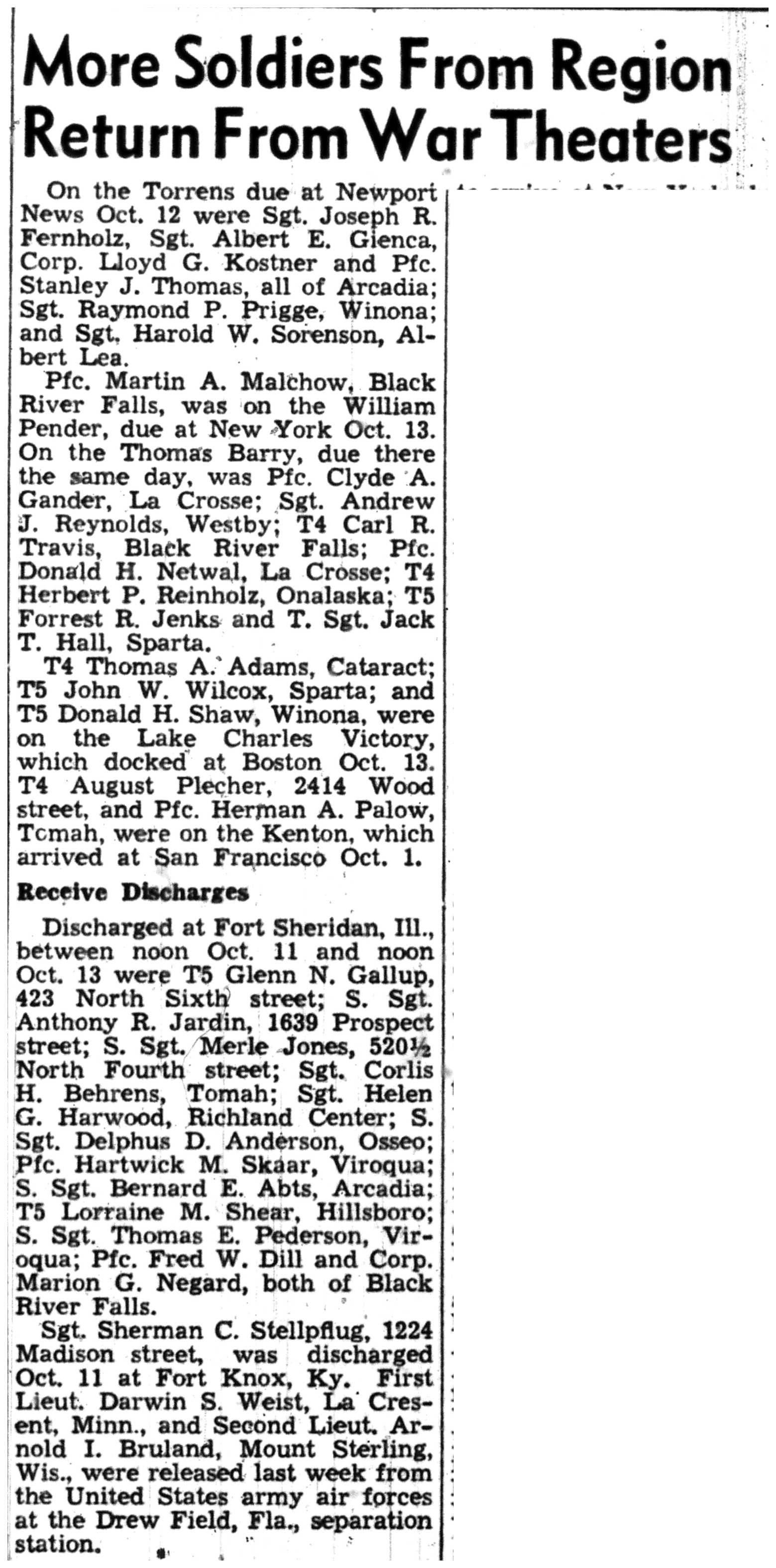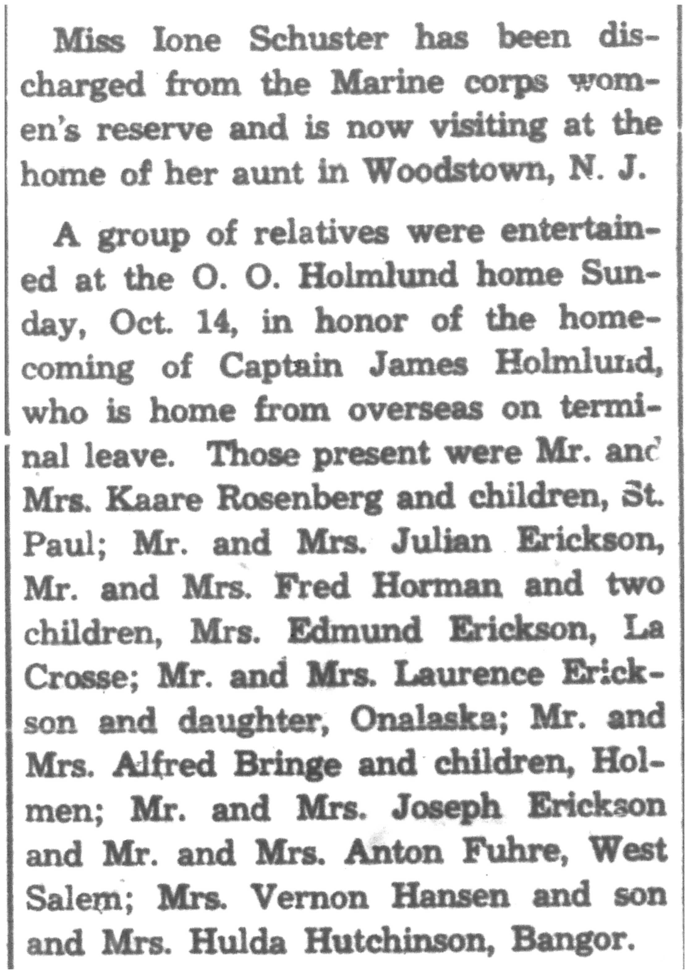 | 1945-10-12 | La Crosse Tribune p4 | |