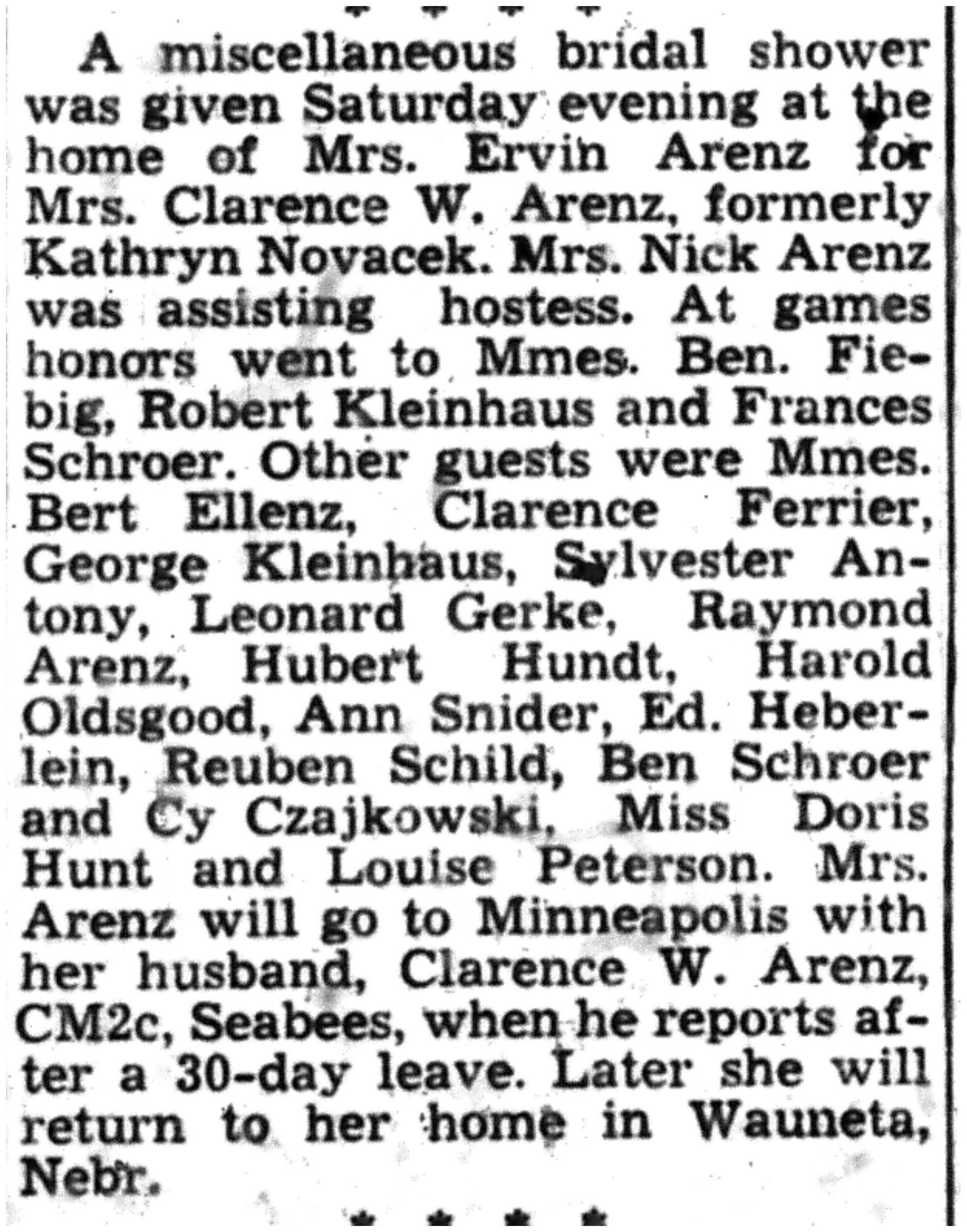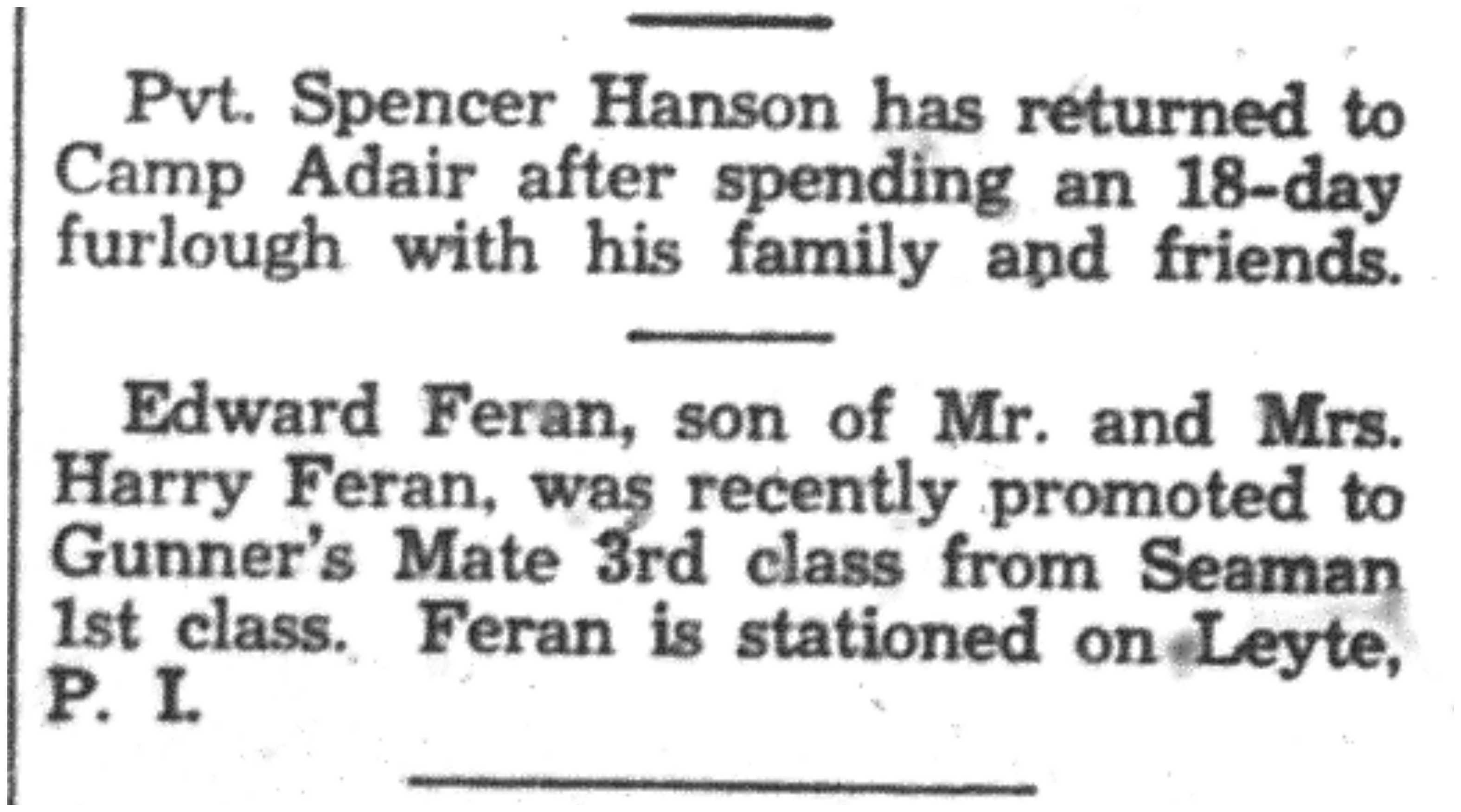| 1945-10-11 | Non-Pareil Journal p5 | |