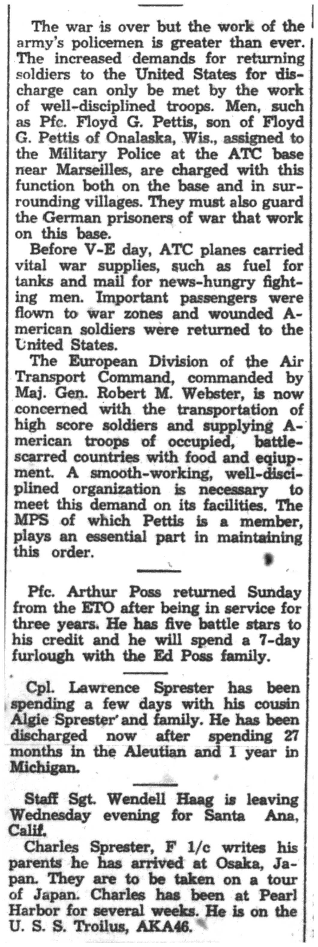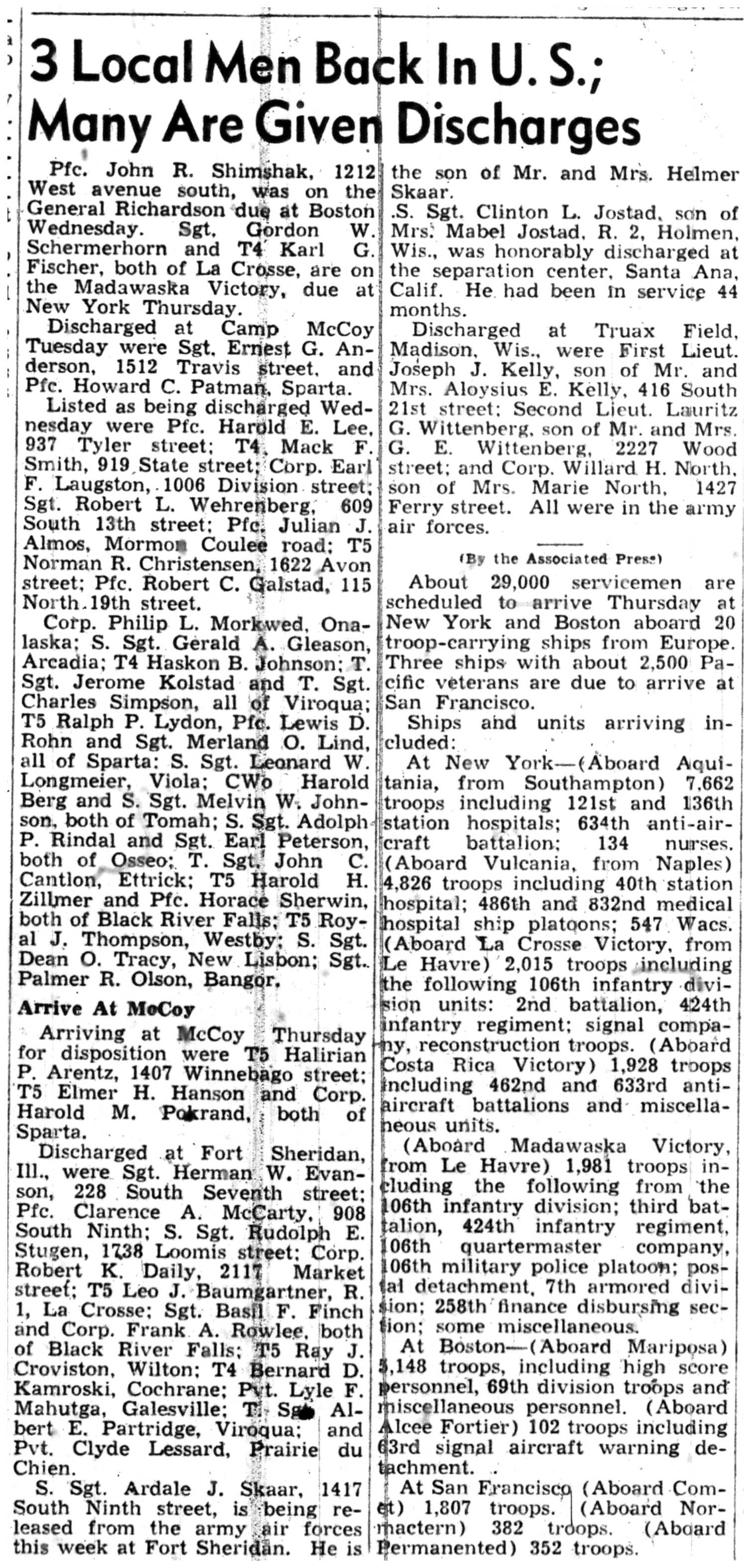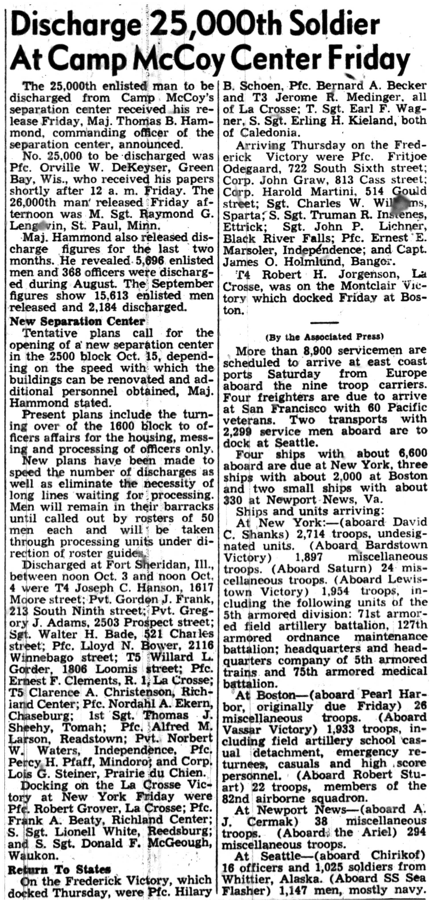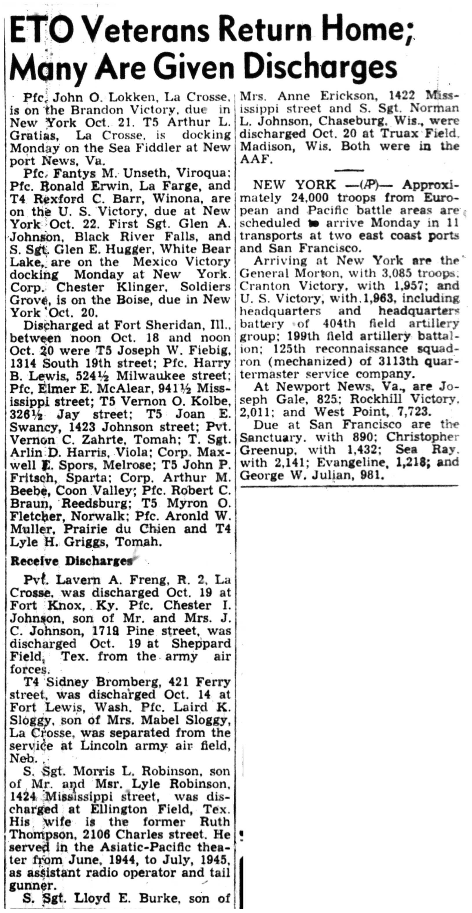 | 1945-10-4 | La Crosse Tribune p6 | |