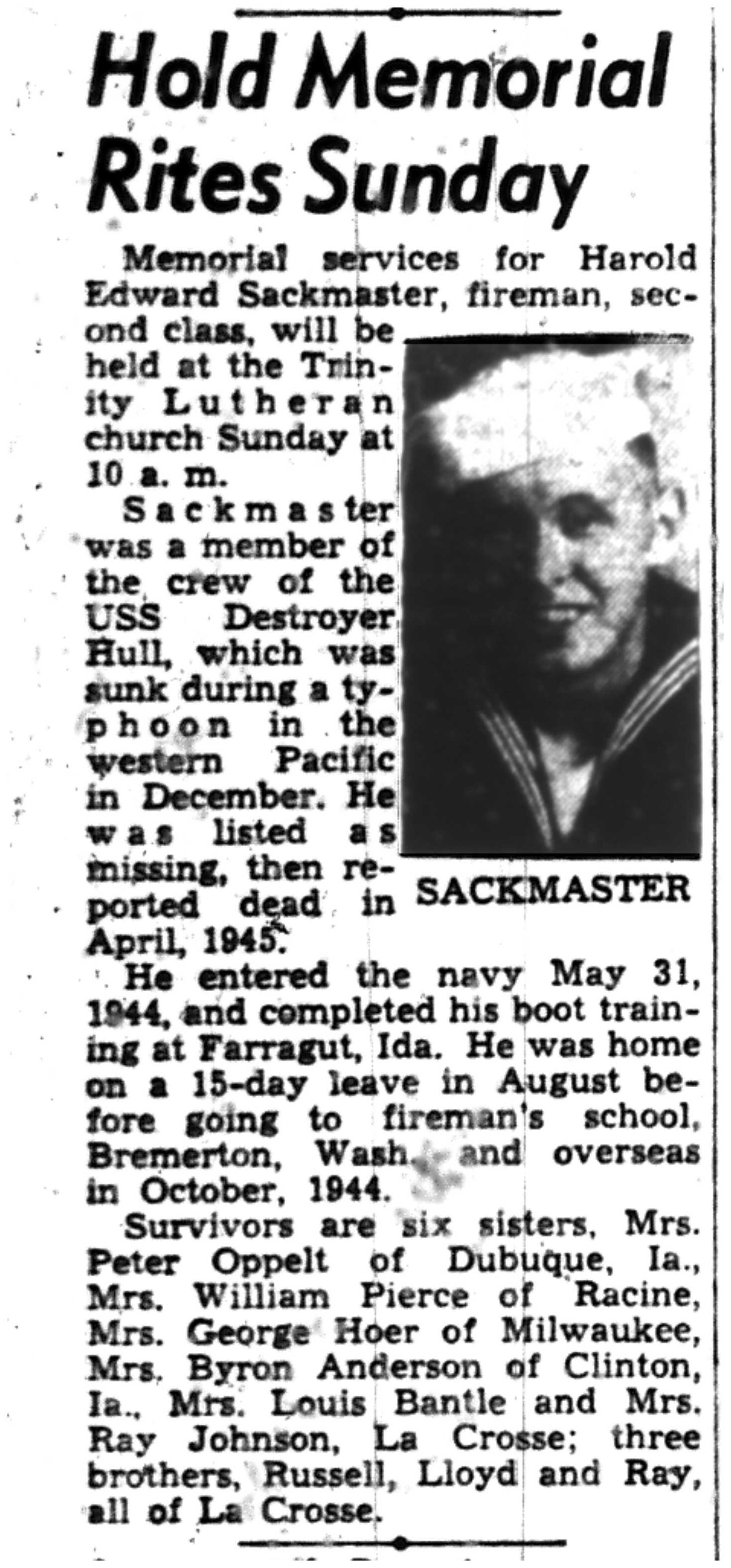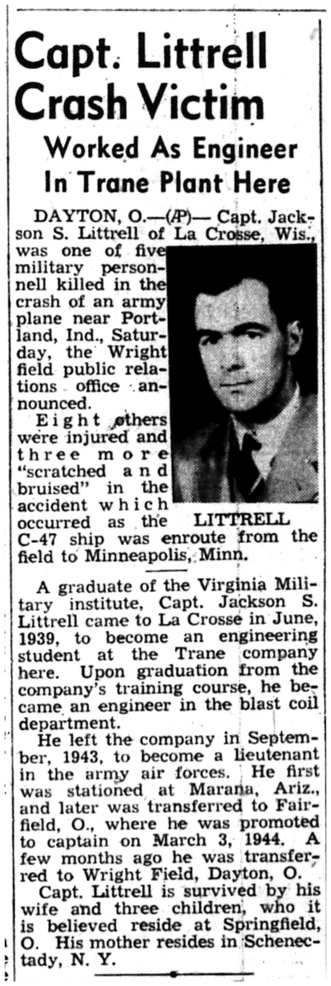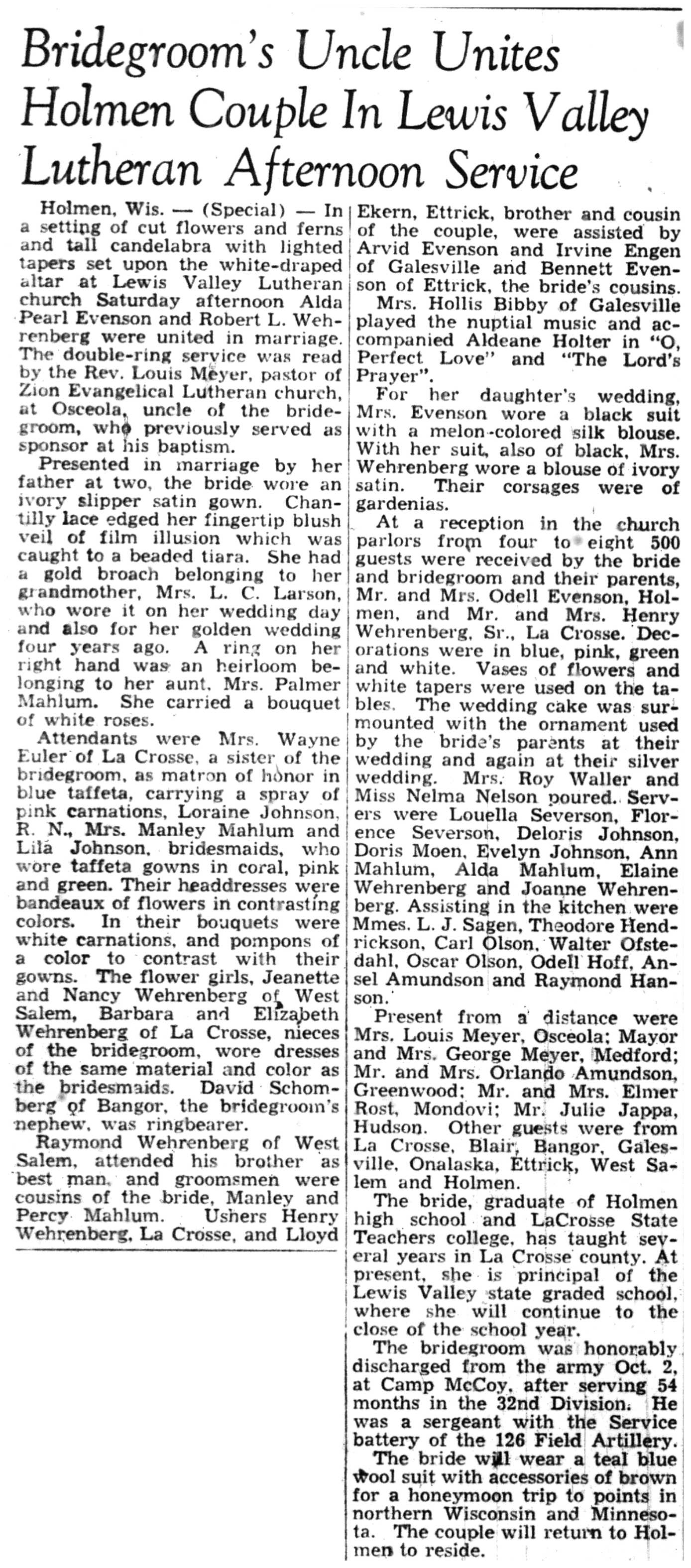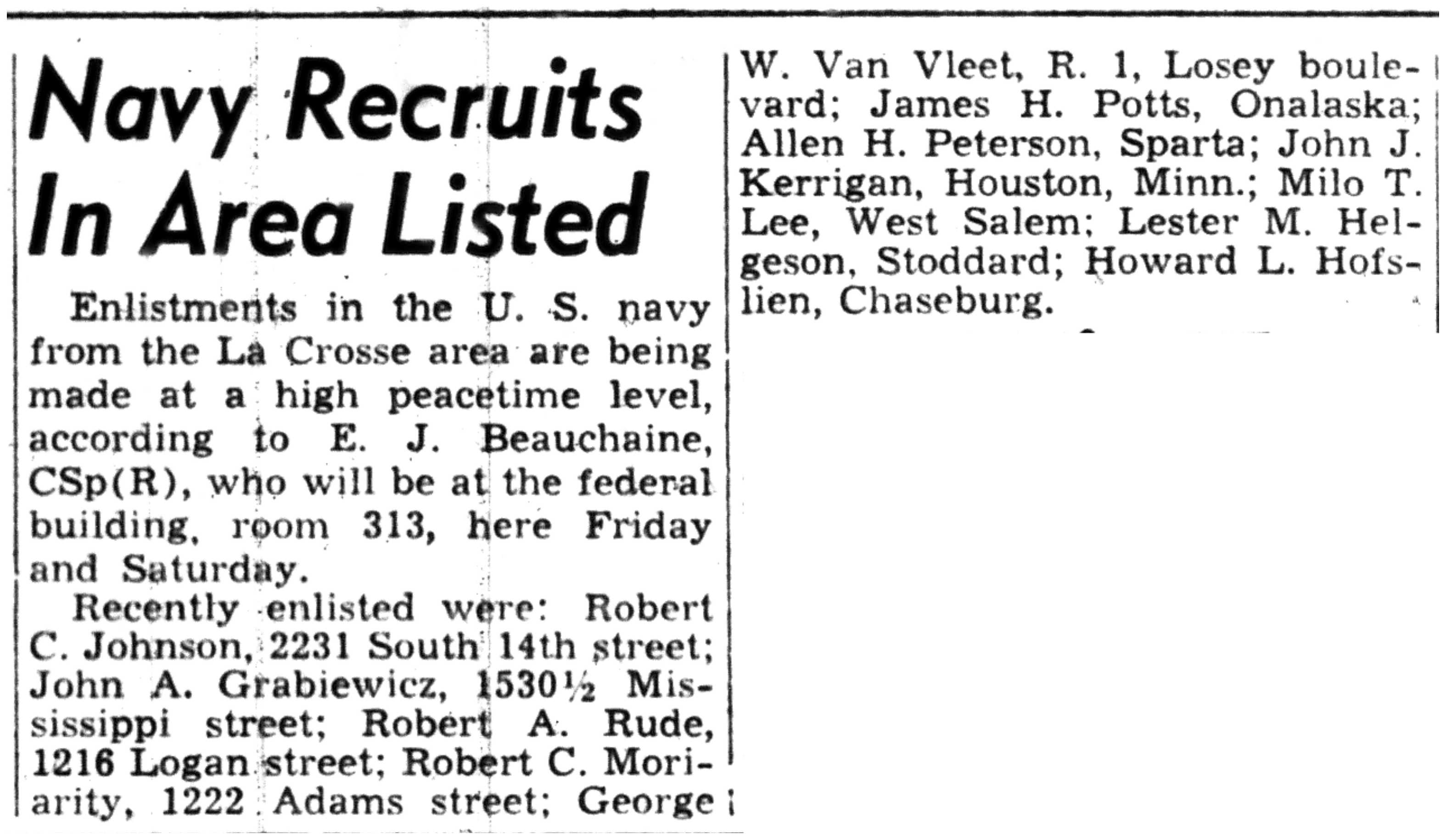 | 1945-10-27 | La Crosse Tribune p4 | |