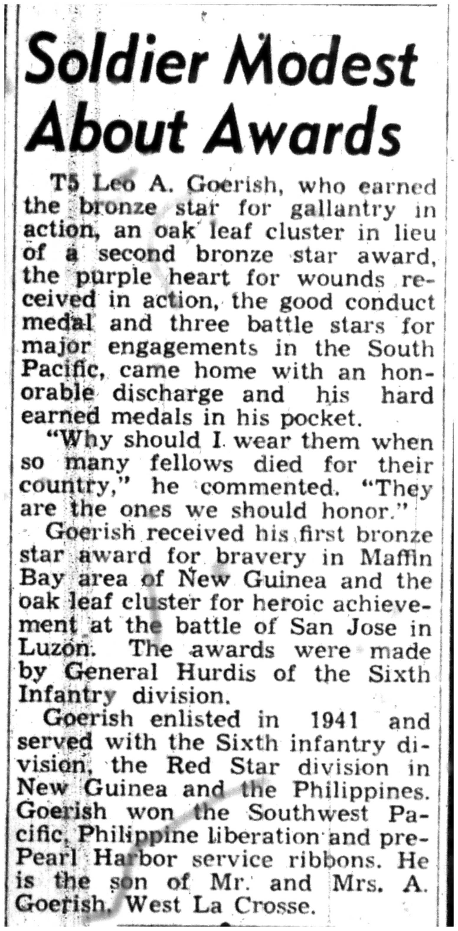 | 1945-10-28 | La Crosse Tribune p5 | |