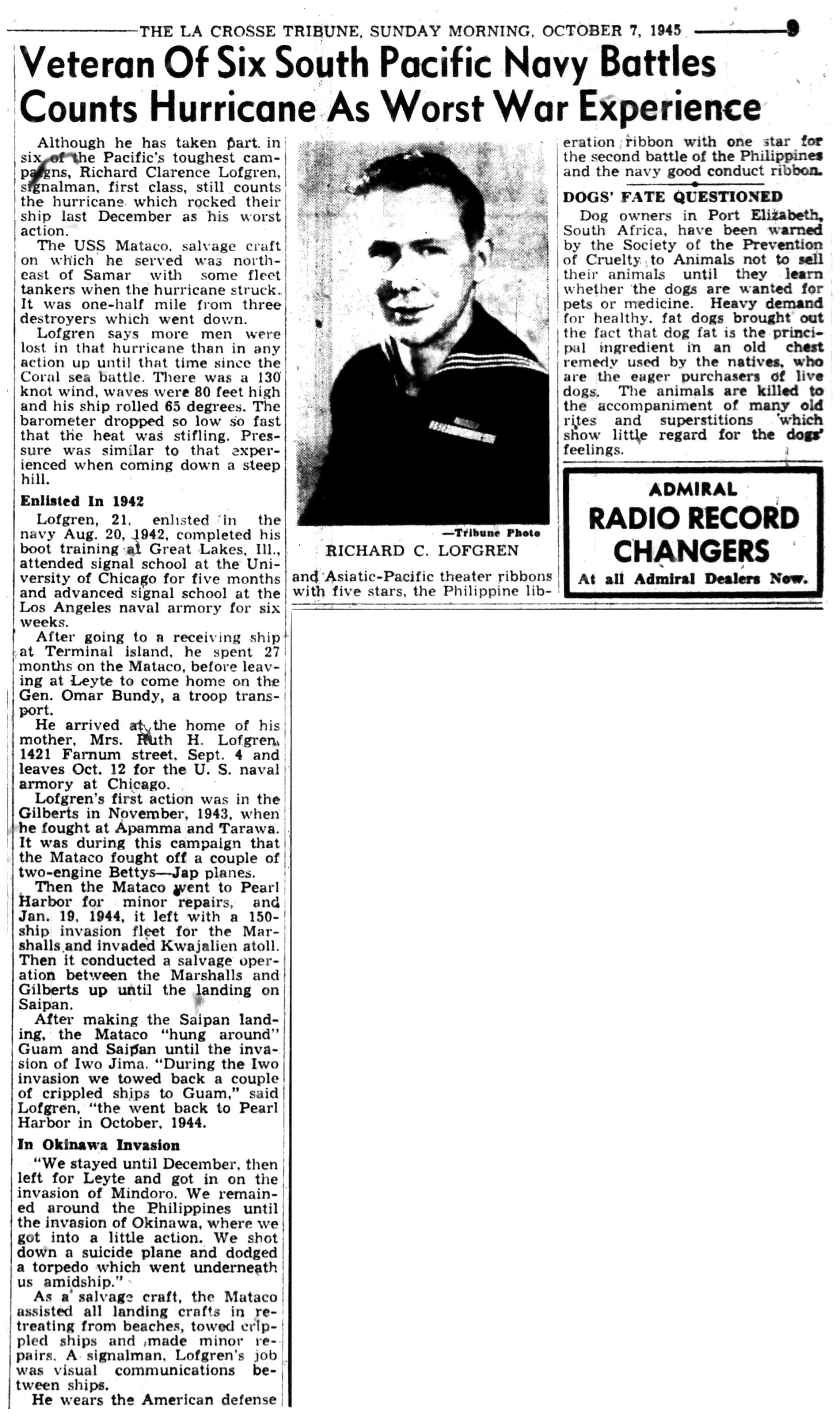 | 1945-10-7 | La Crosse Tribune p8 | |