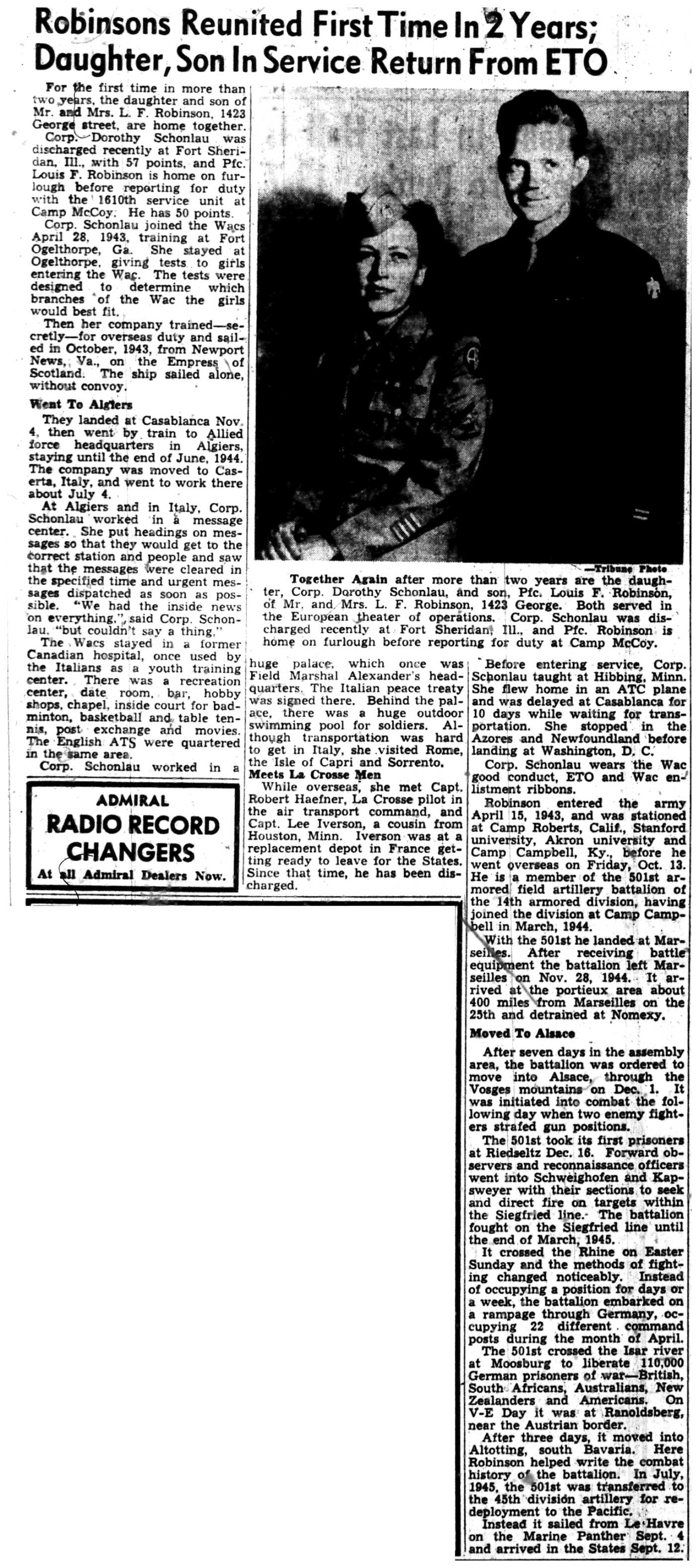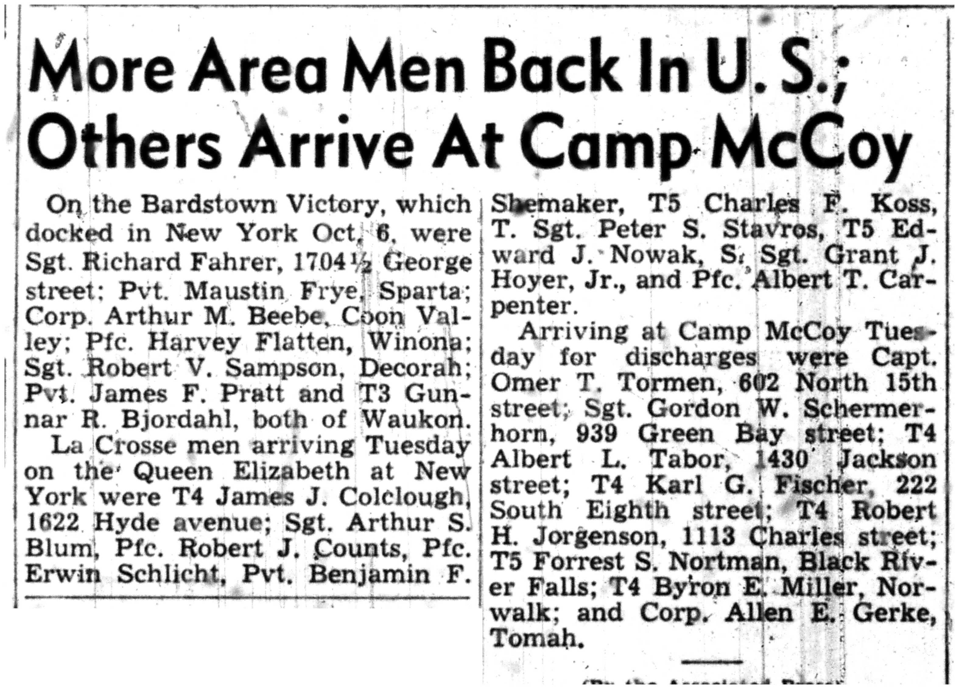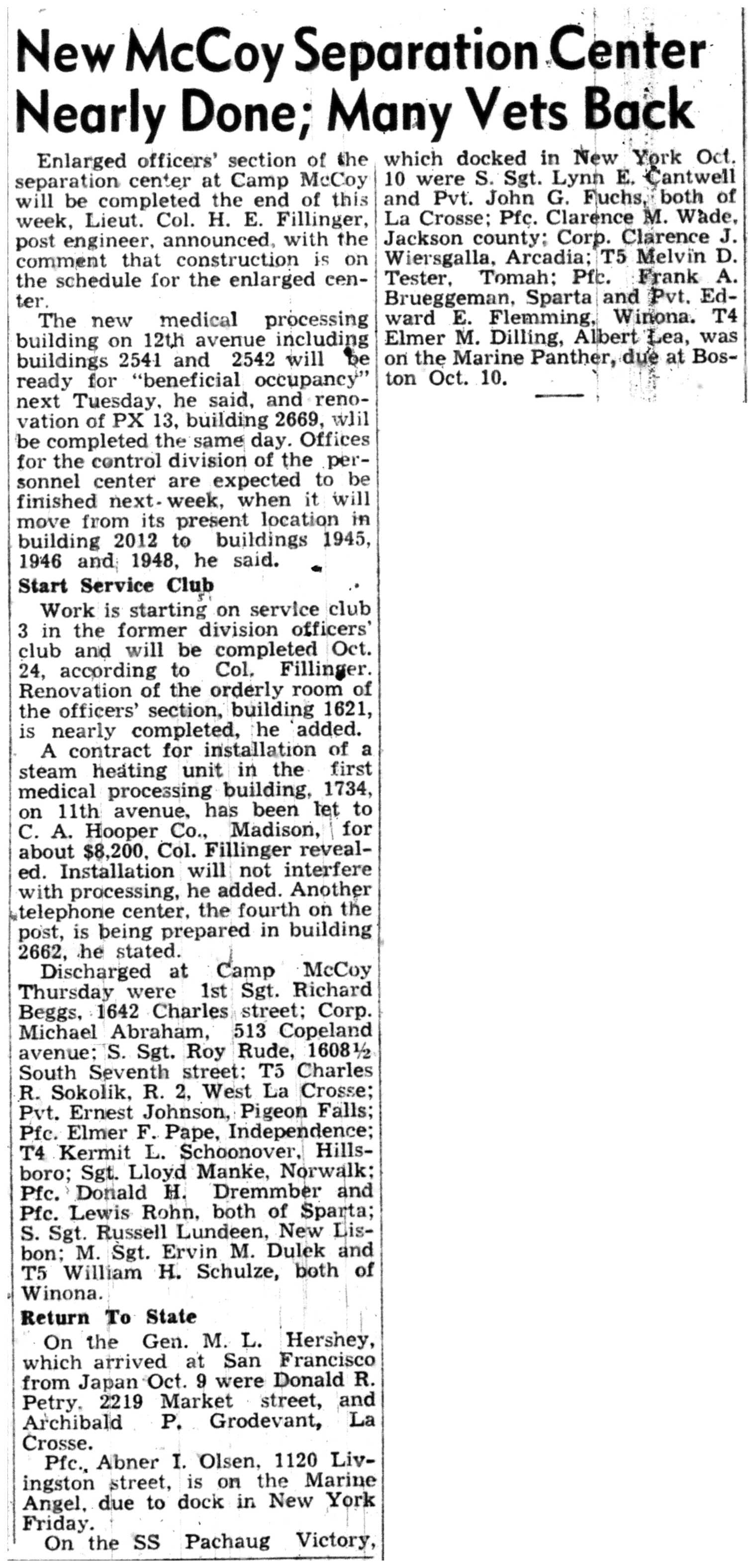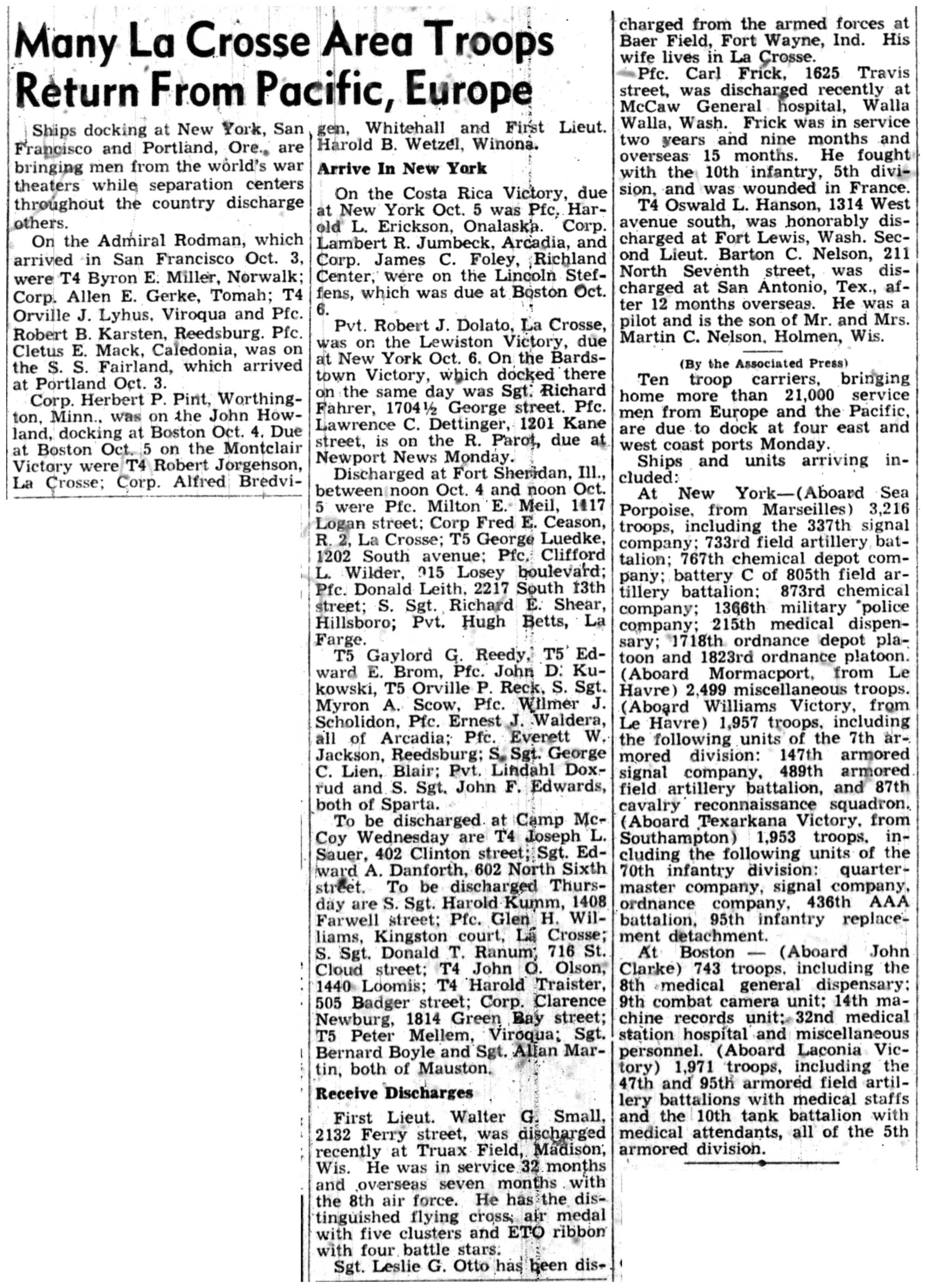 | 1945-10-10 | La Crosse Tribune p10 | |