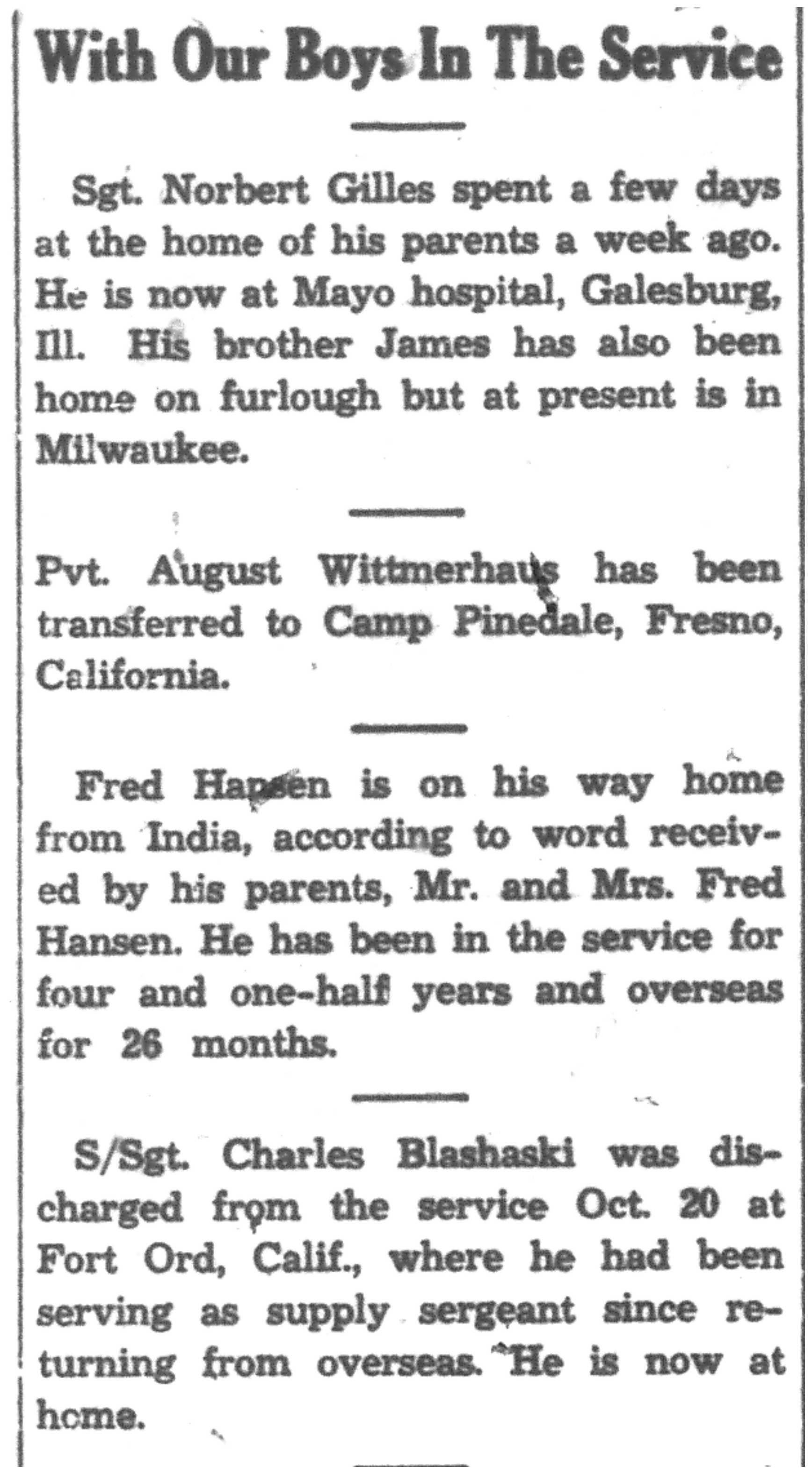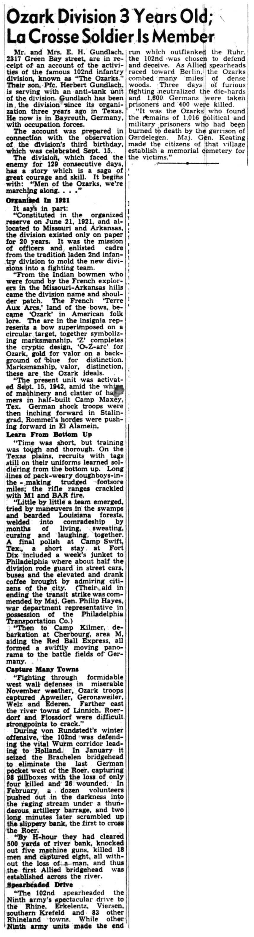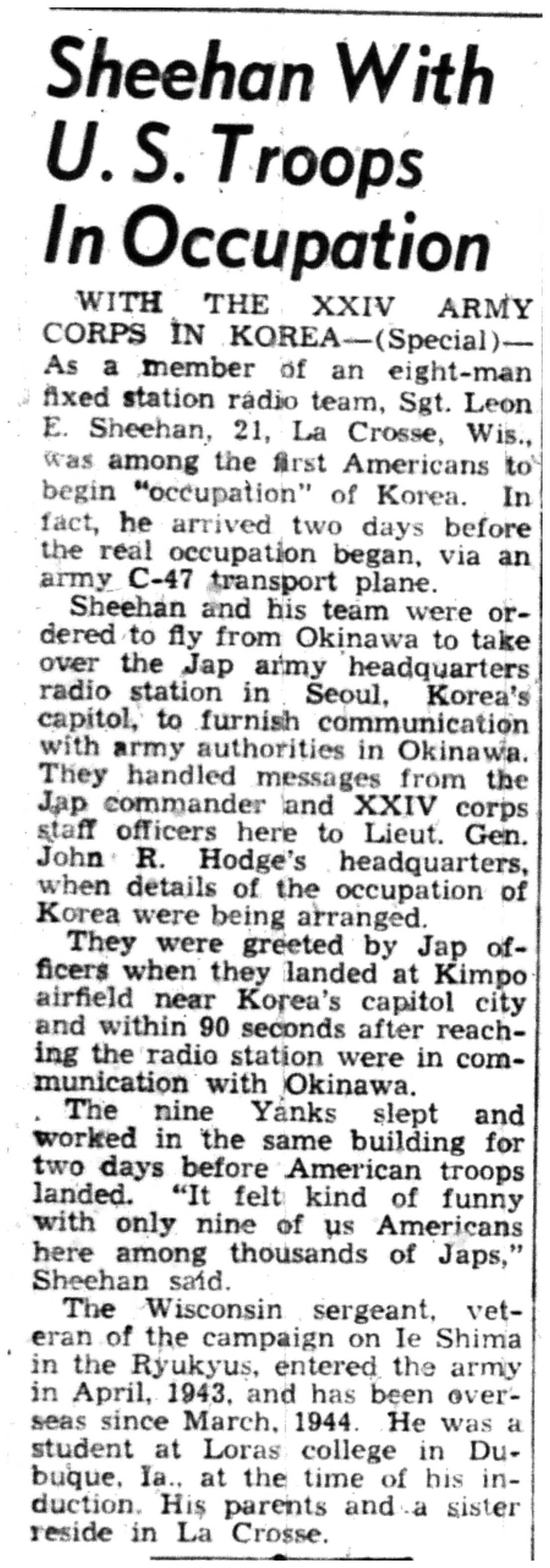 | 1945-10-3 | La Crosse Tribune p9 | |