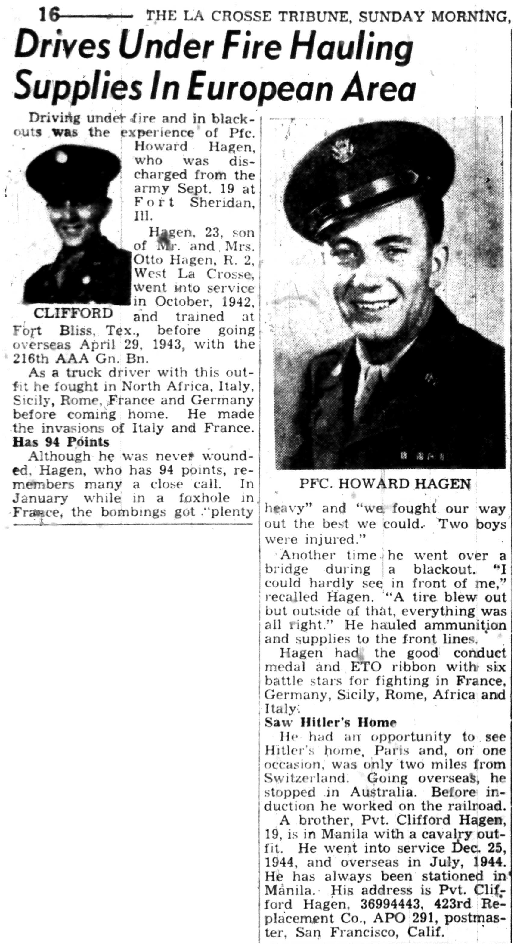 | 1945-10-2 | La Crosse Tribune p6 | |