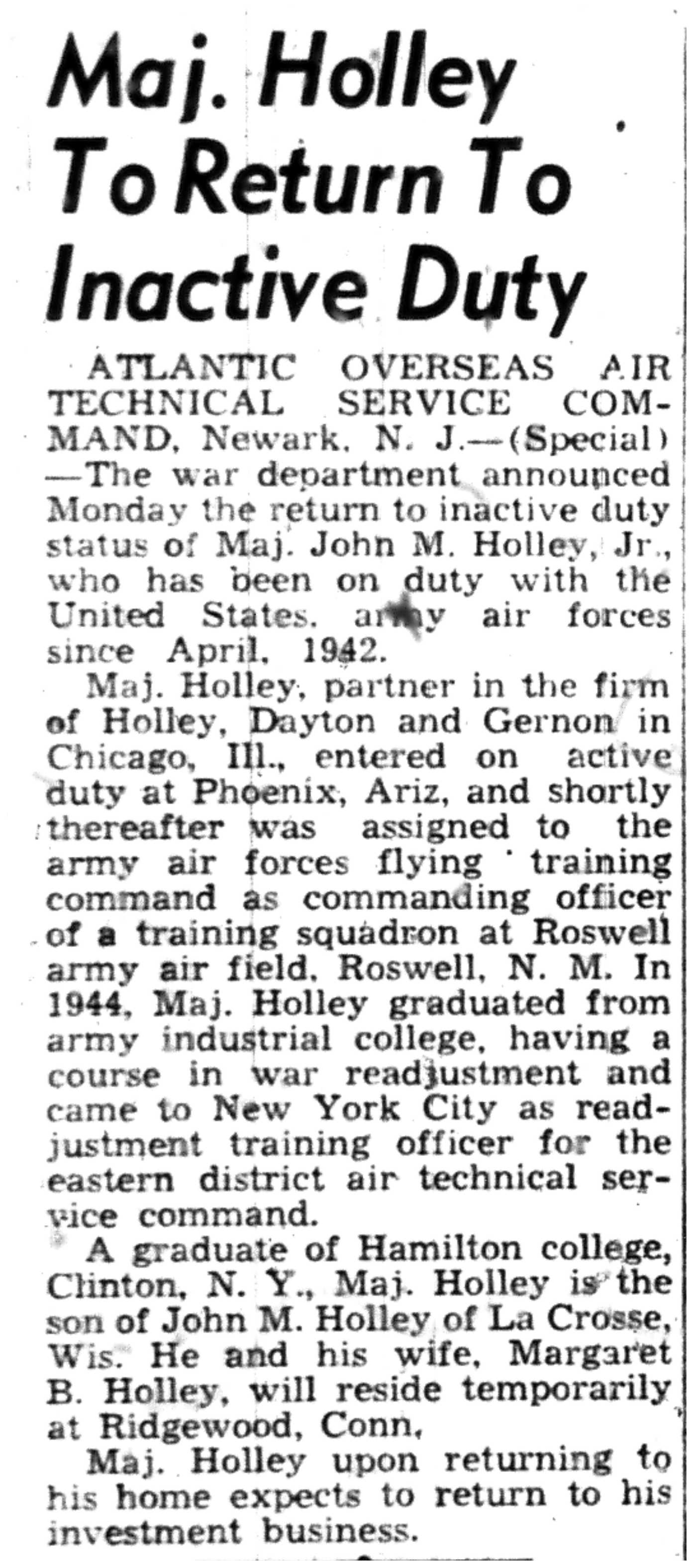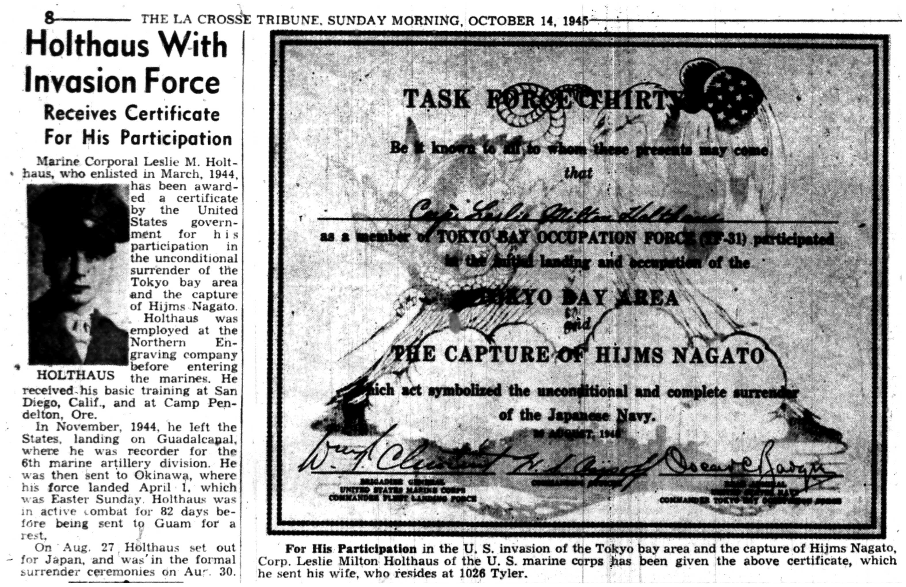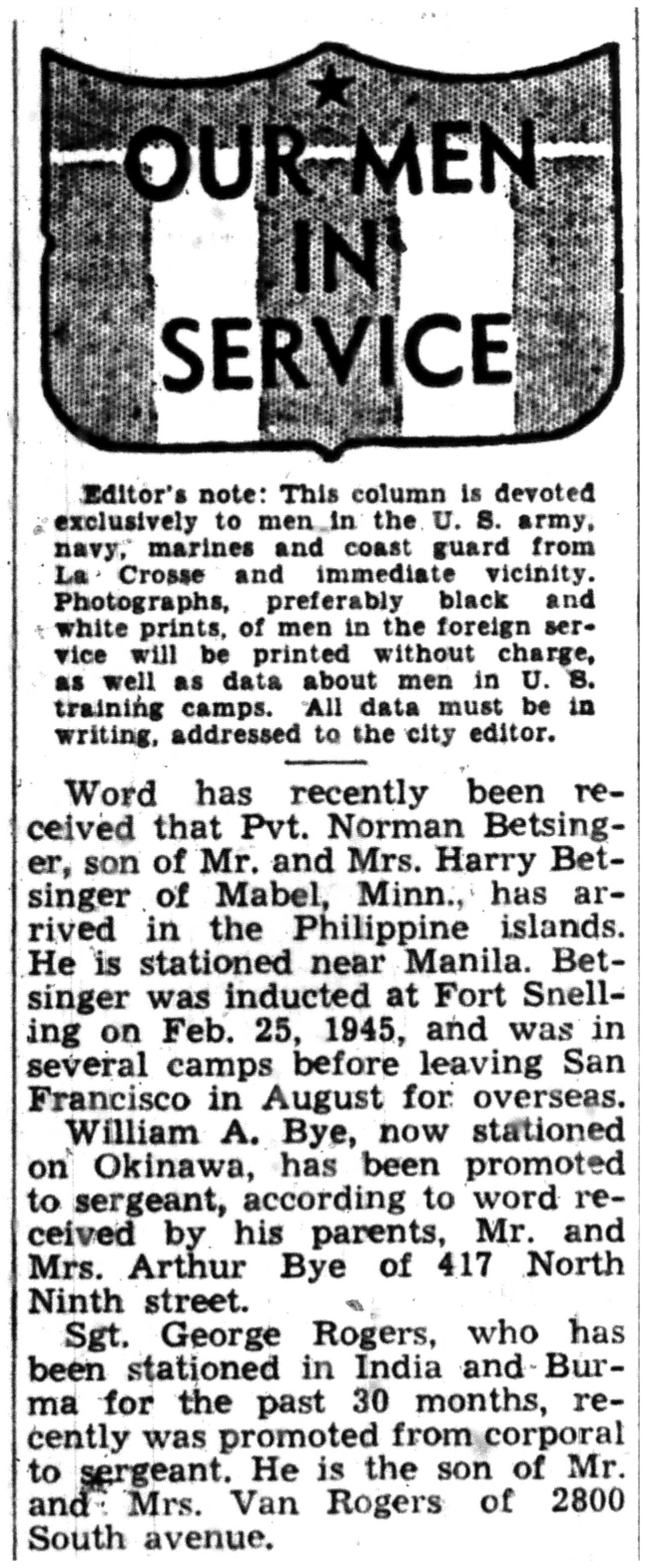 | 1945-10-31 | La Crosse Tribune p9 | |