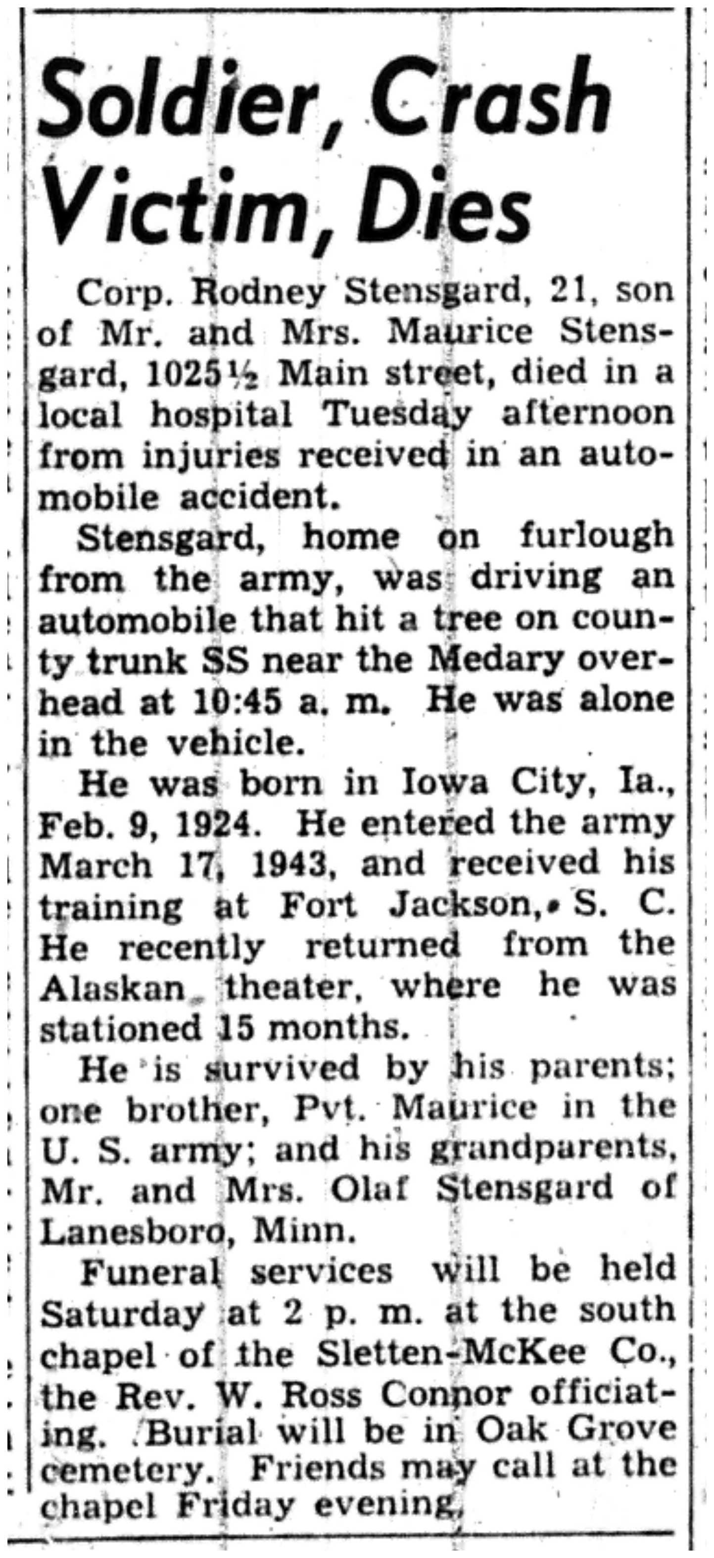 | 1945-10-25 | La Crosse Tribune p13 | |