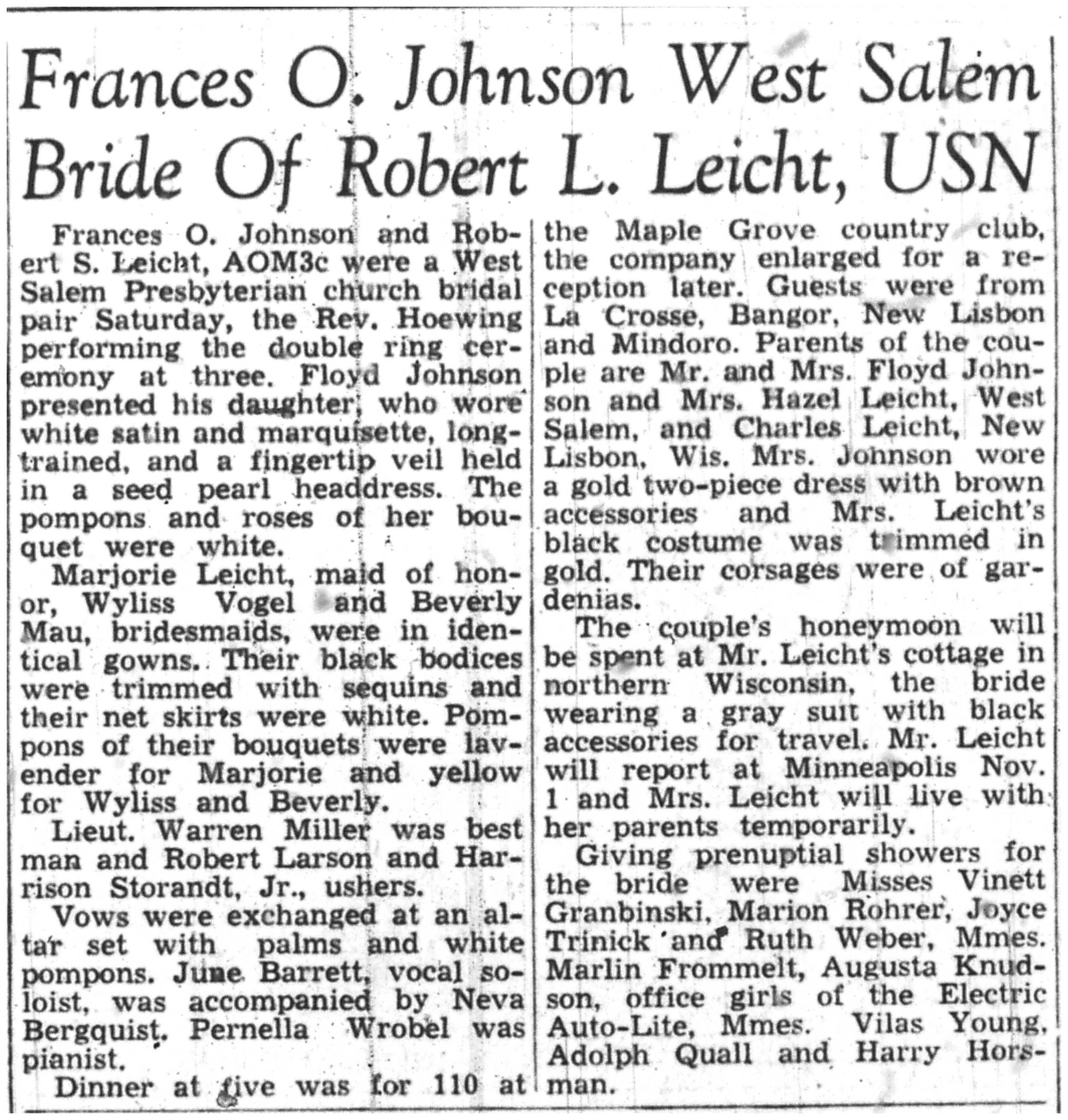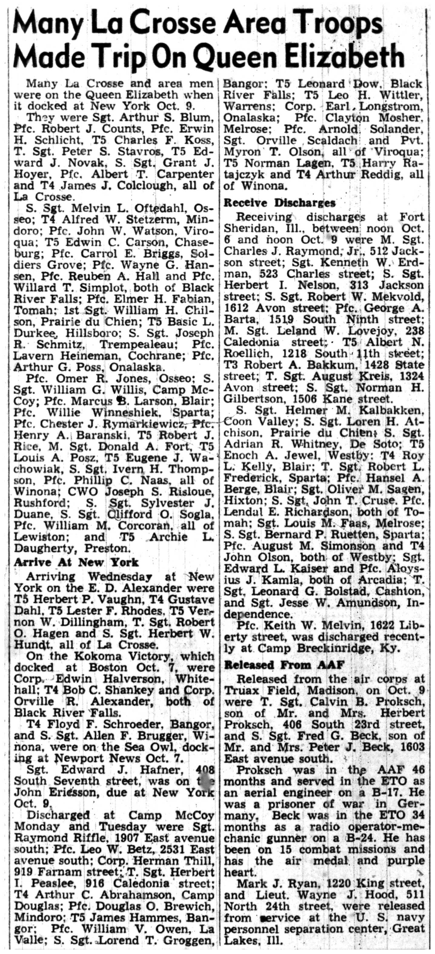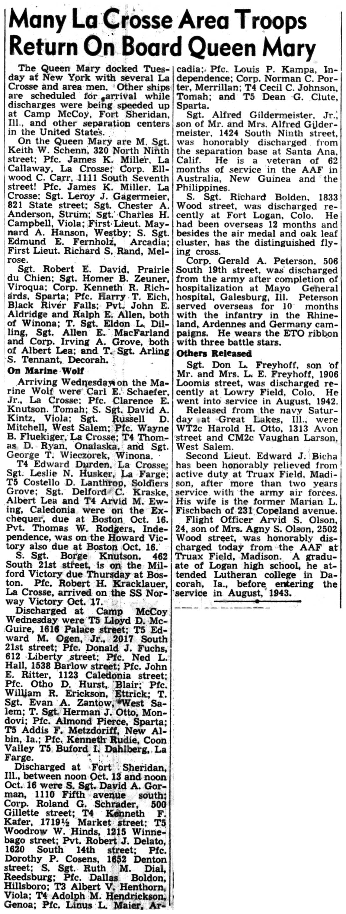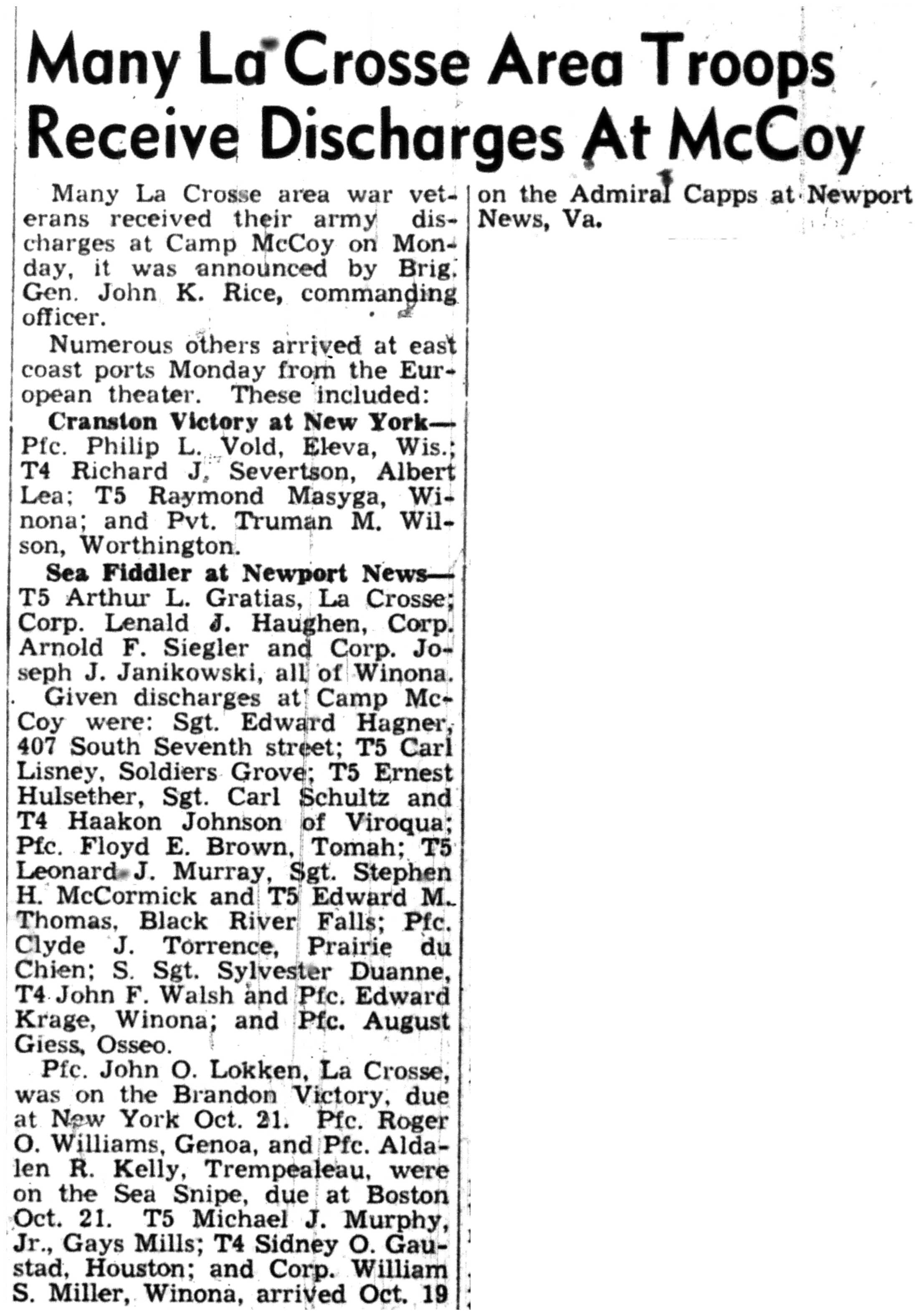 | 1945-10-17 | La Crosse Tribune p5 | |
