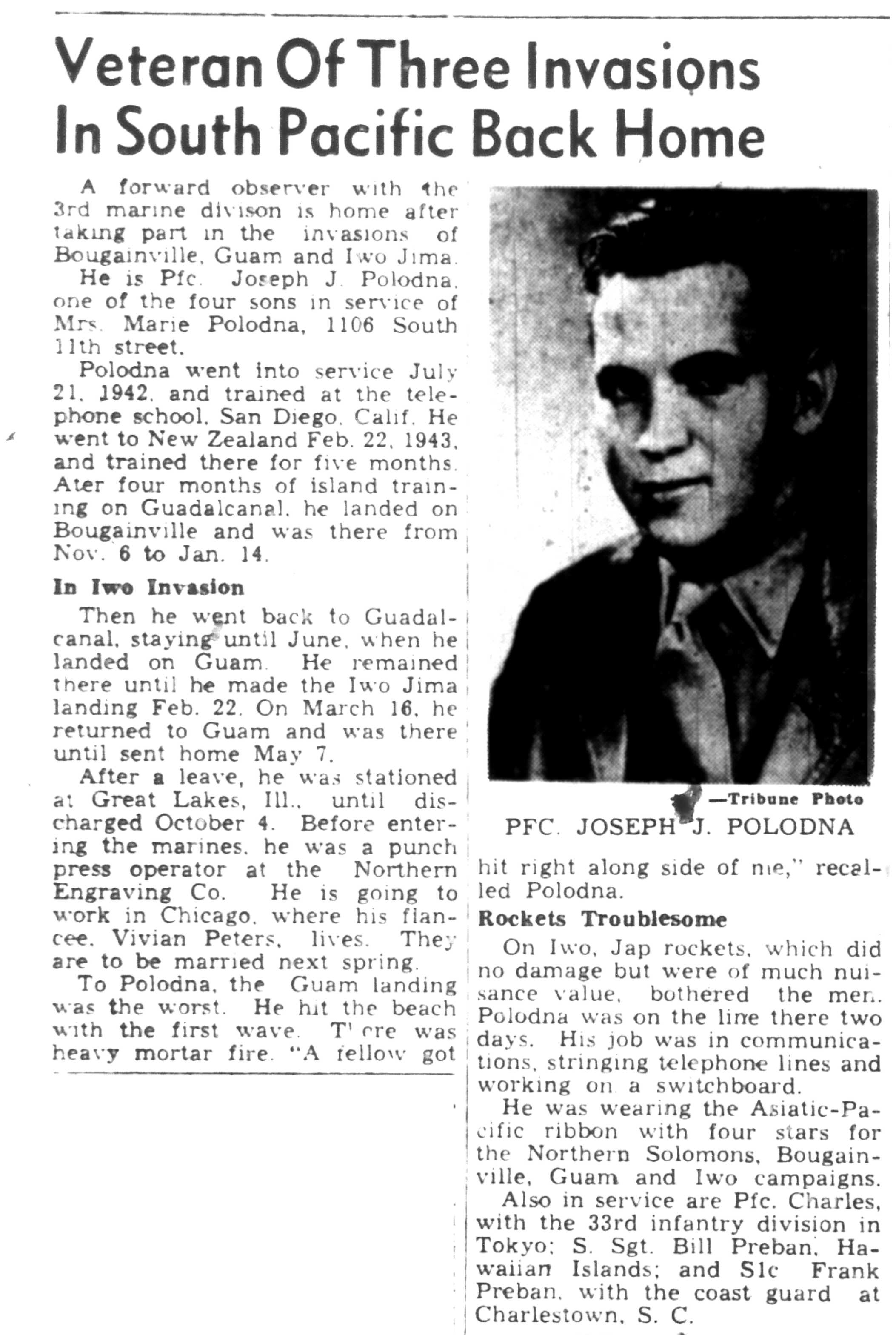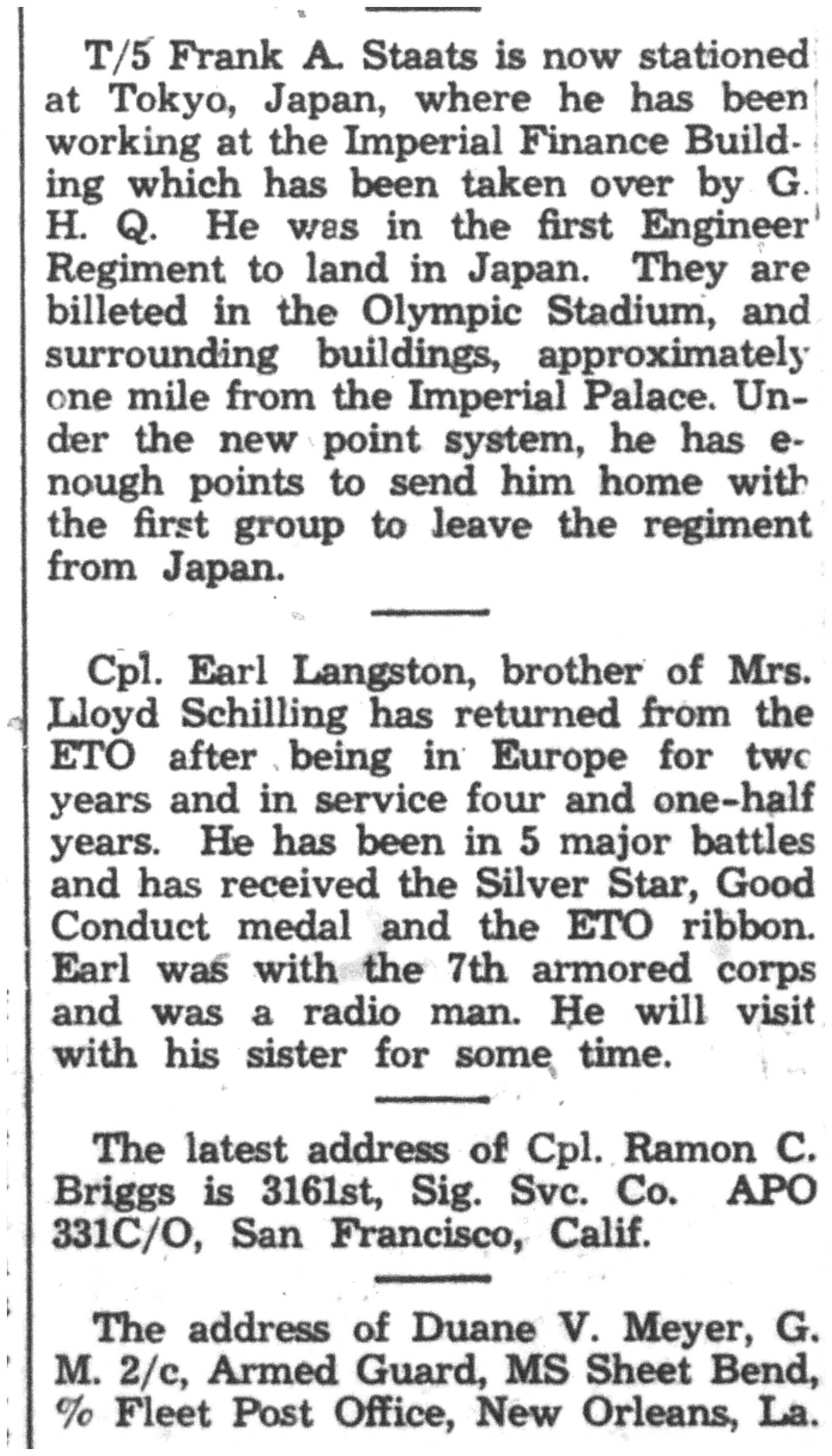 | 1945-10-25 | Non-Pareil Journal p4 | |