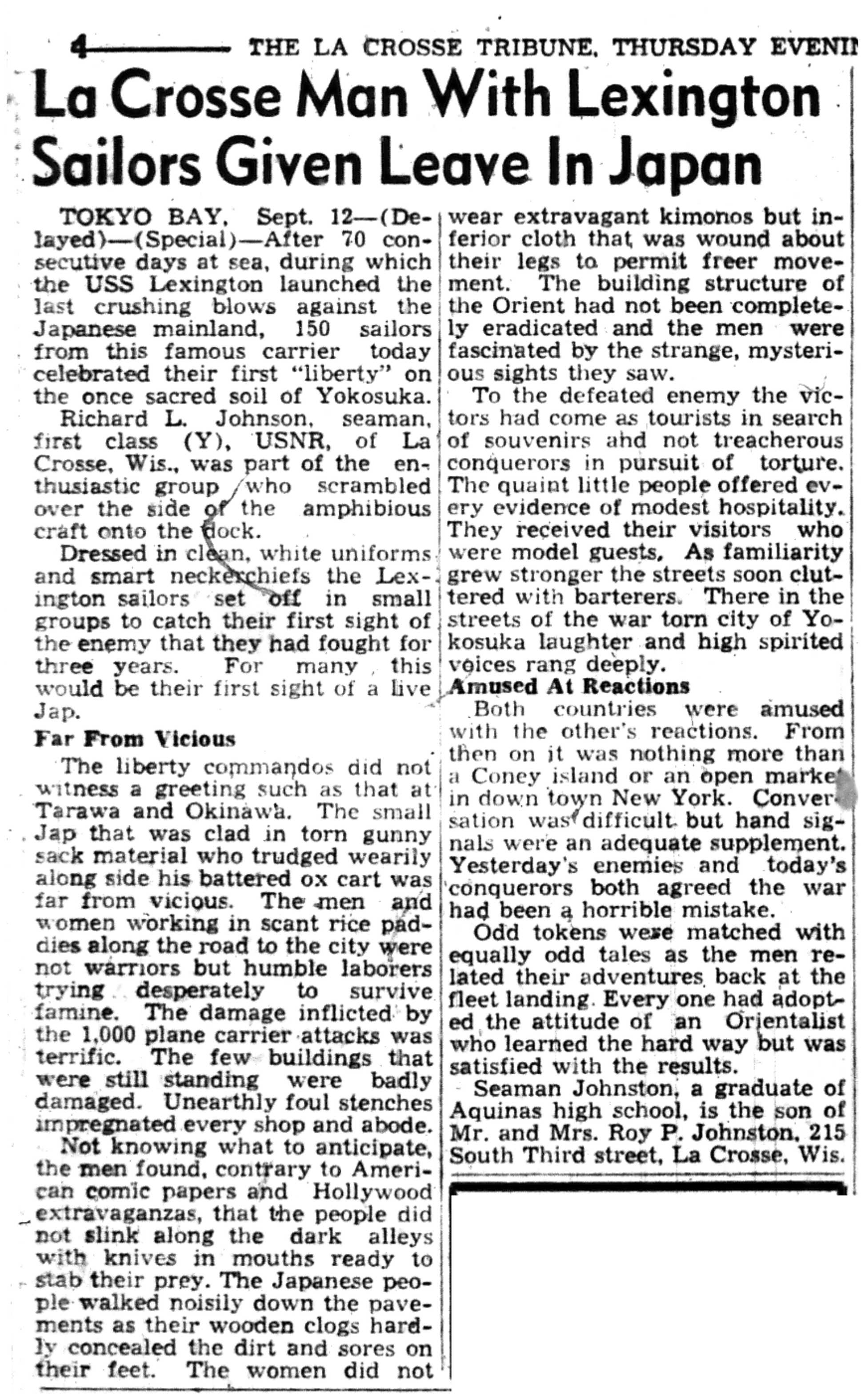 | 1945-10-1 | La Crosse Tribune p2 | |