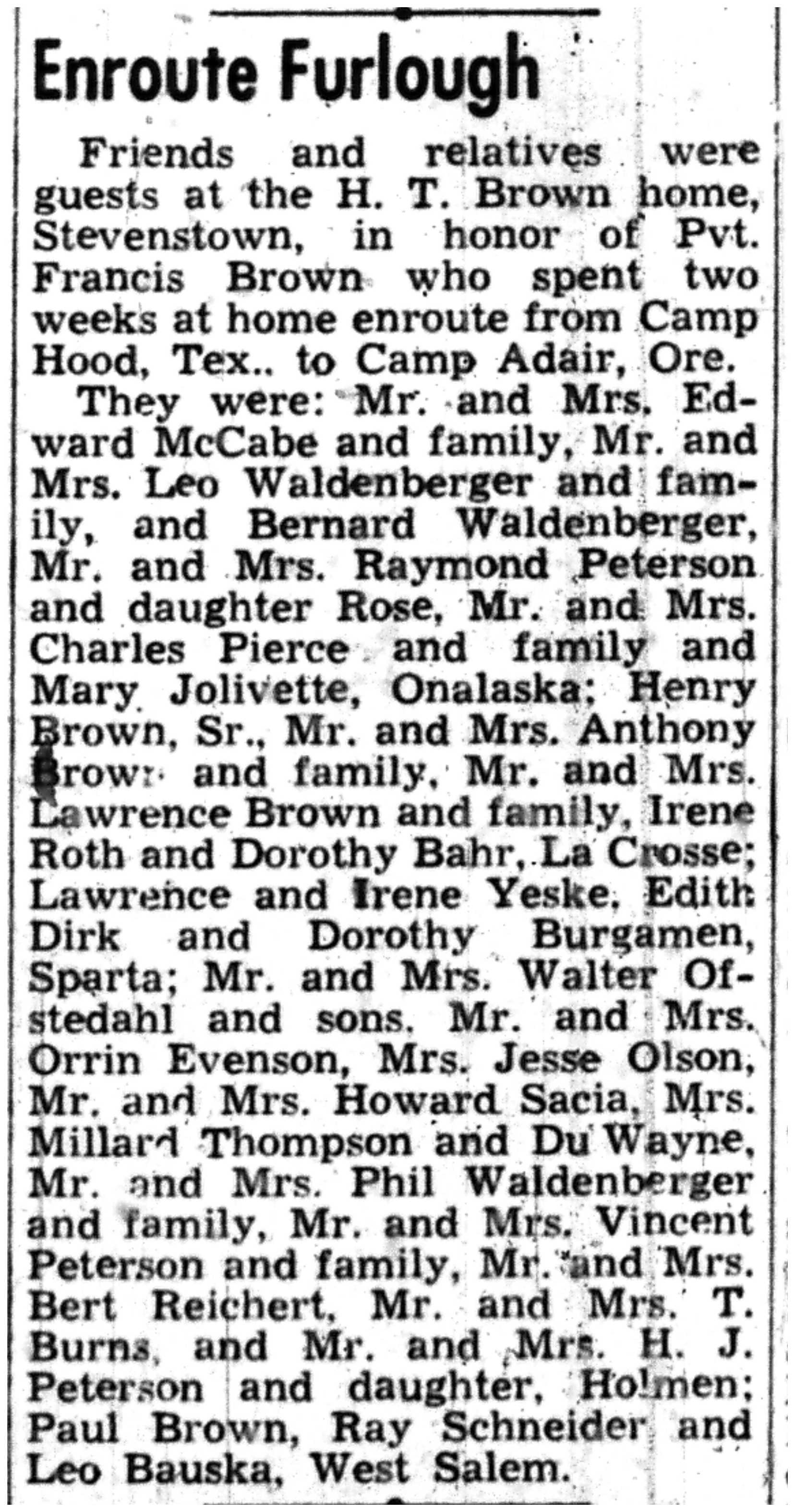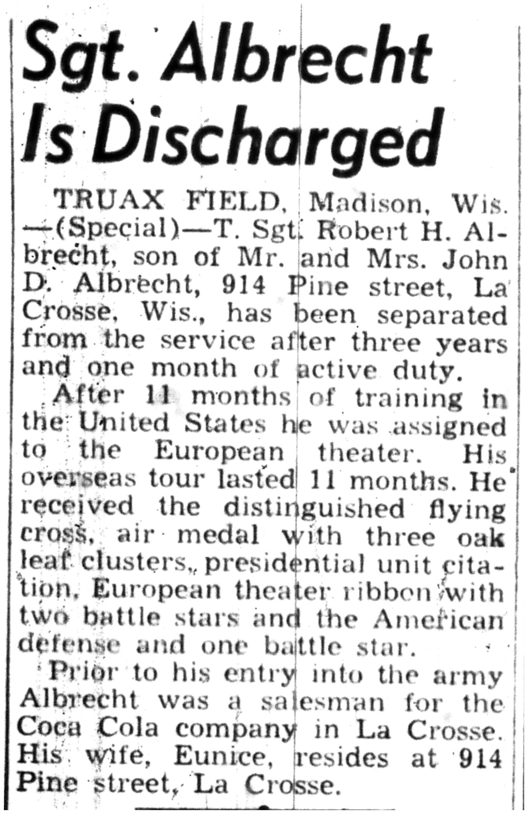 | 1945-10-10 | La Crosse Tribune p16 | |