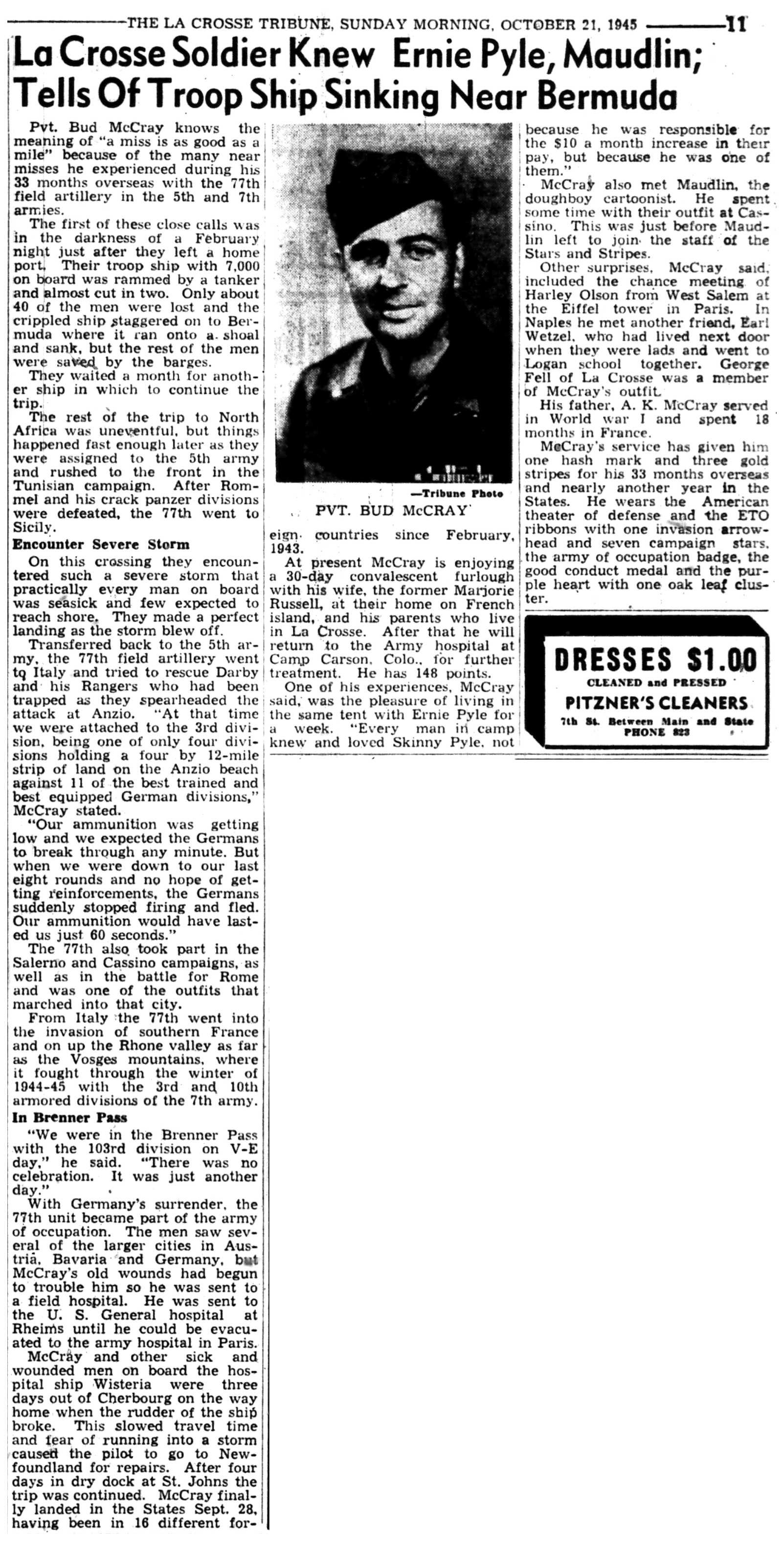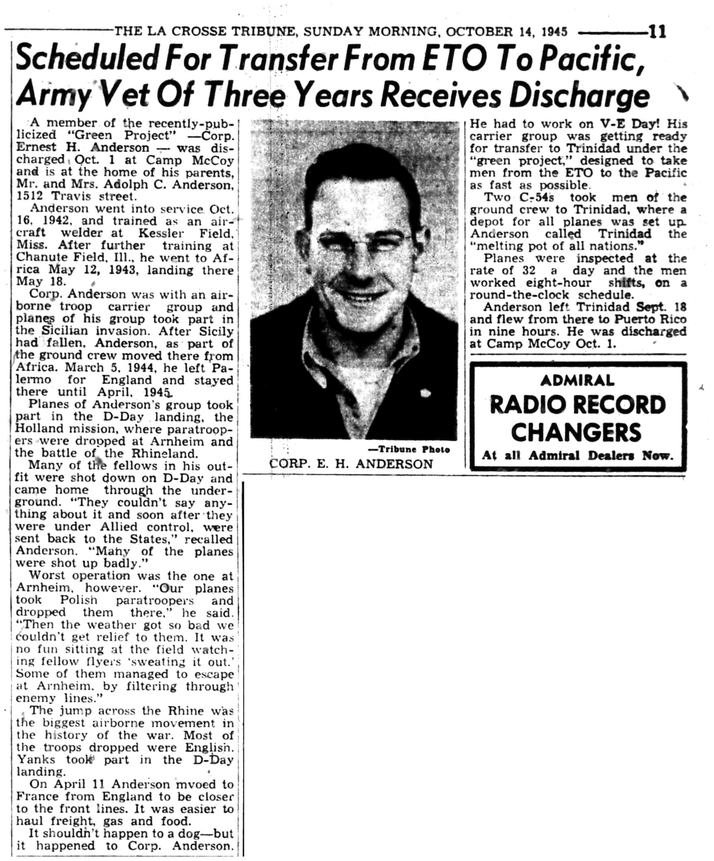 | 1945-10-3 | La Crosse Tribune p7 | |
