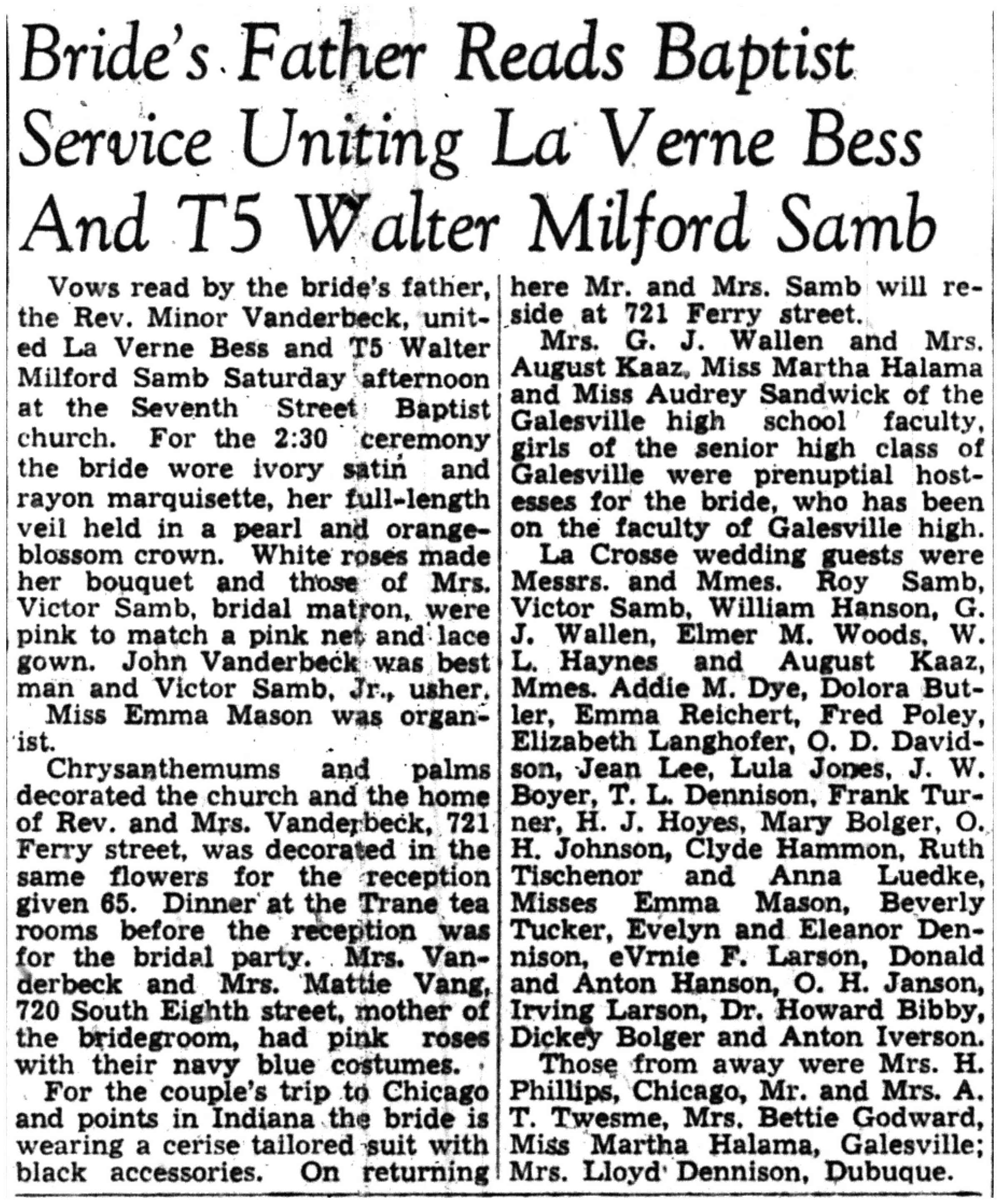 | 1945-10-21 | La Crosse Tribune p8 | |