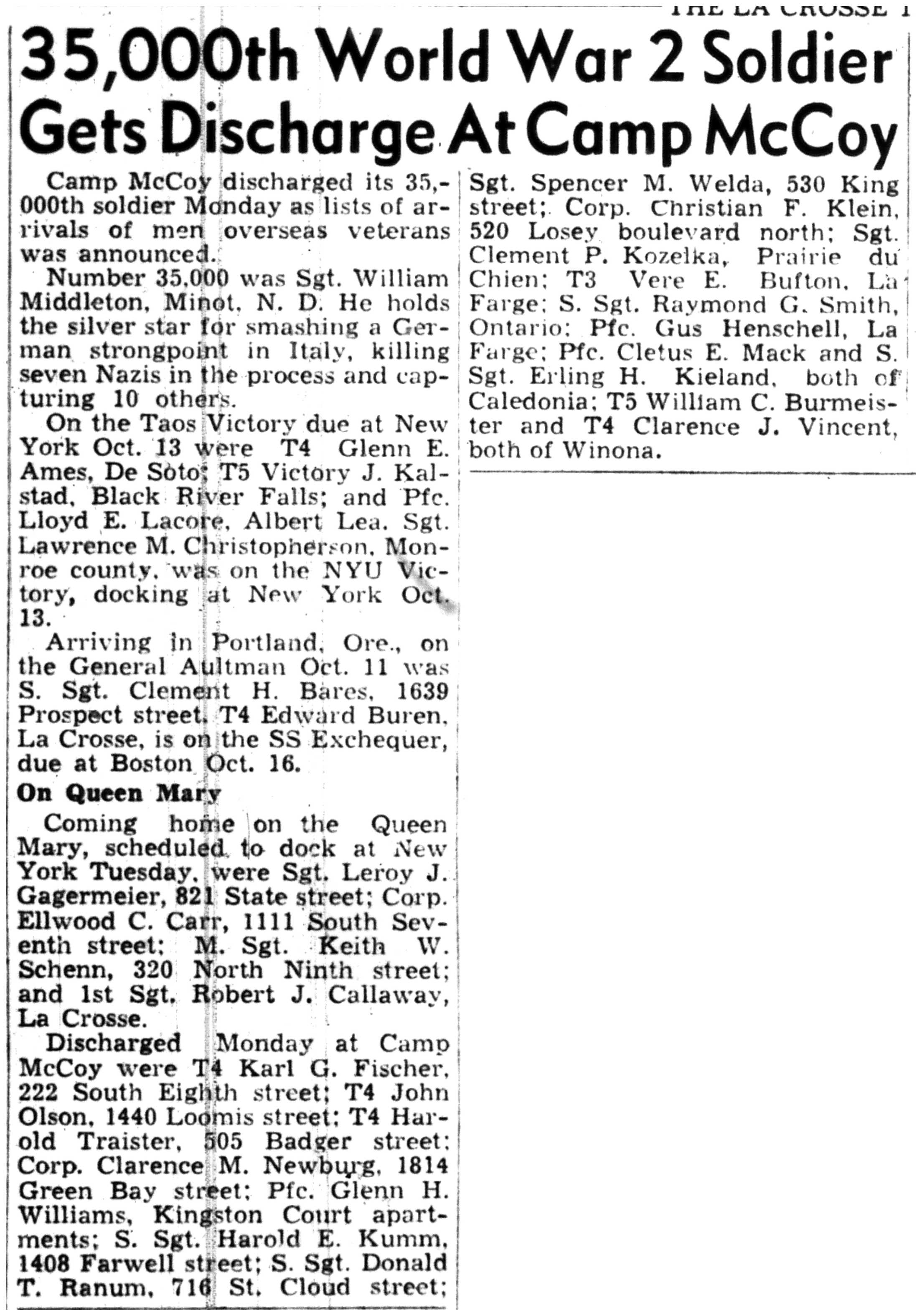 | 1945-10-10 | La Crosse Tribune p1 | |