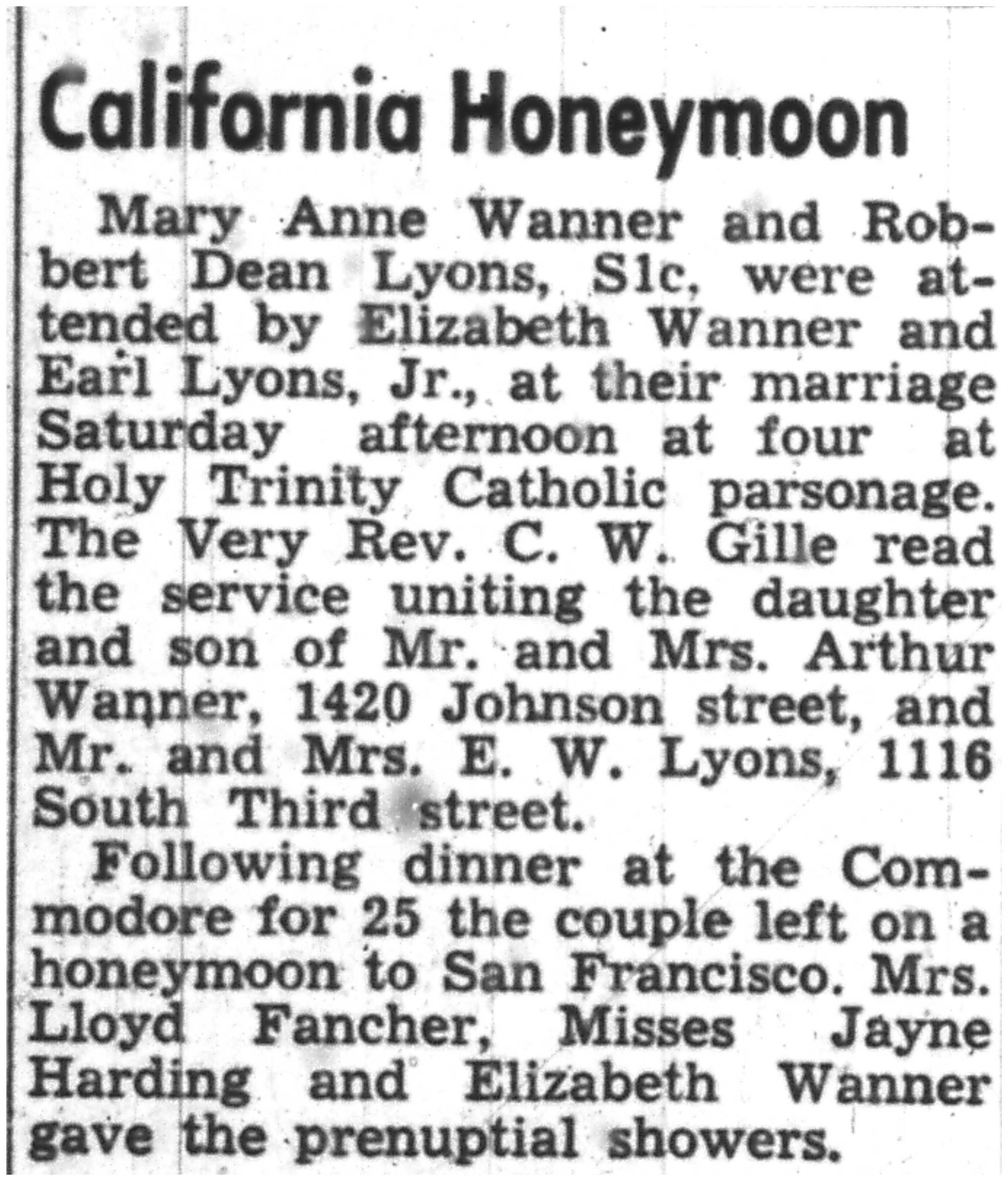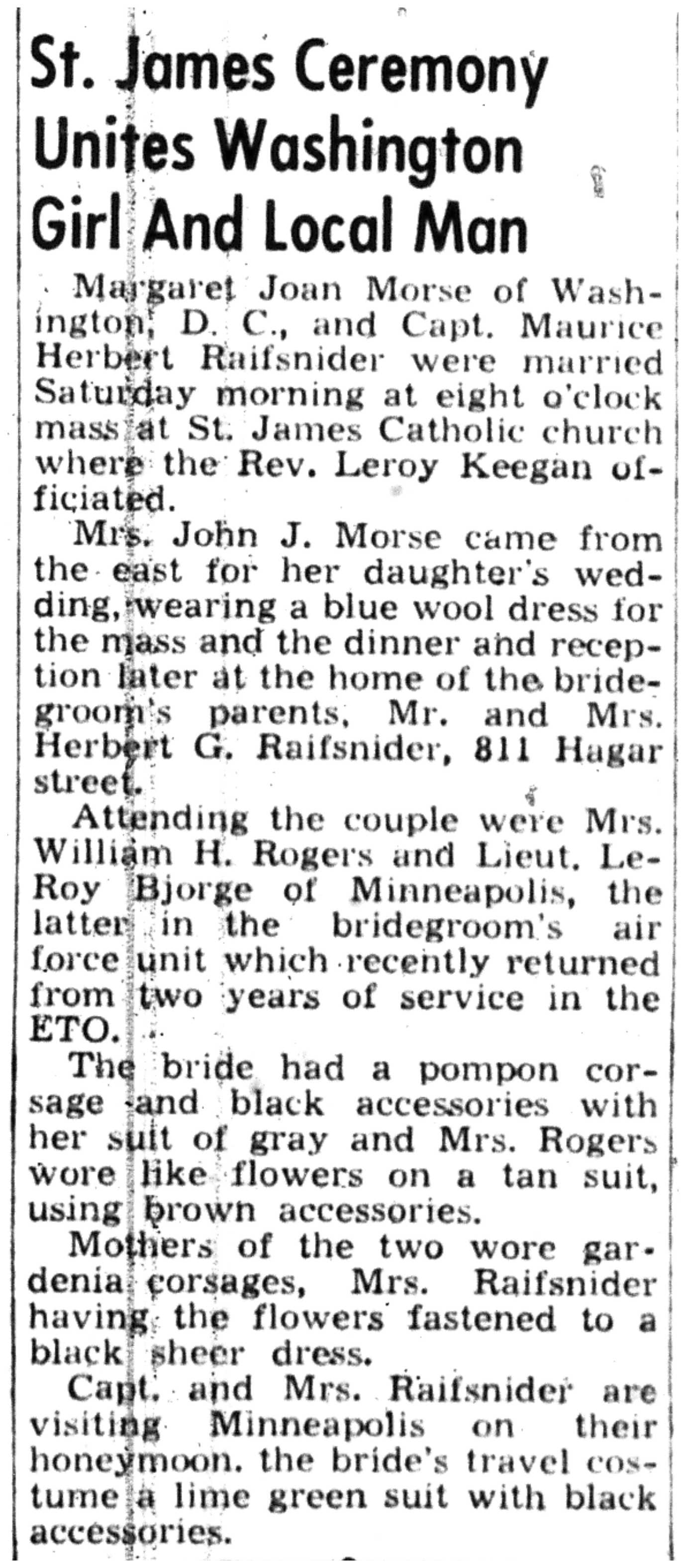 | 1945-10-17 | La Crosse Tribune p12 | |