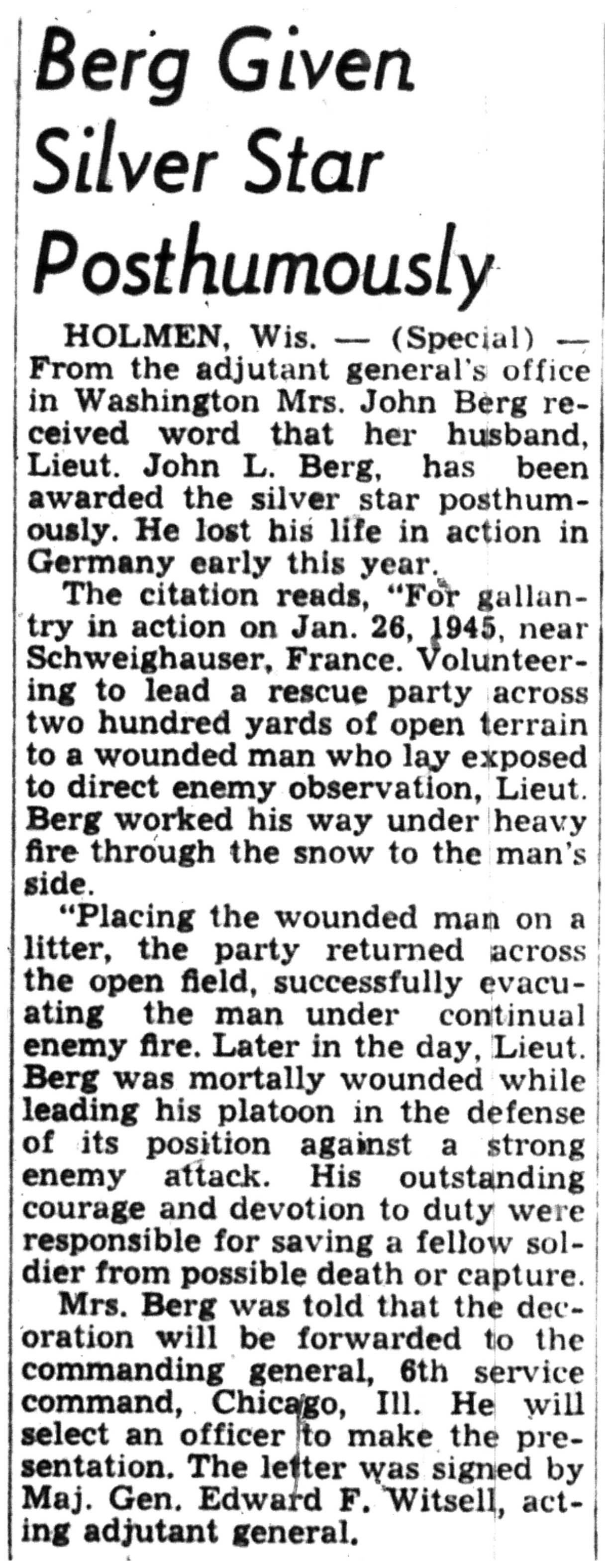 | 1945-10-24 | La Crosse Tribune p5 | |