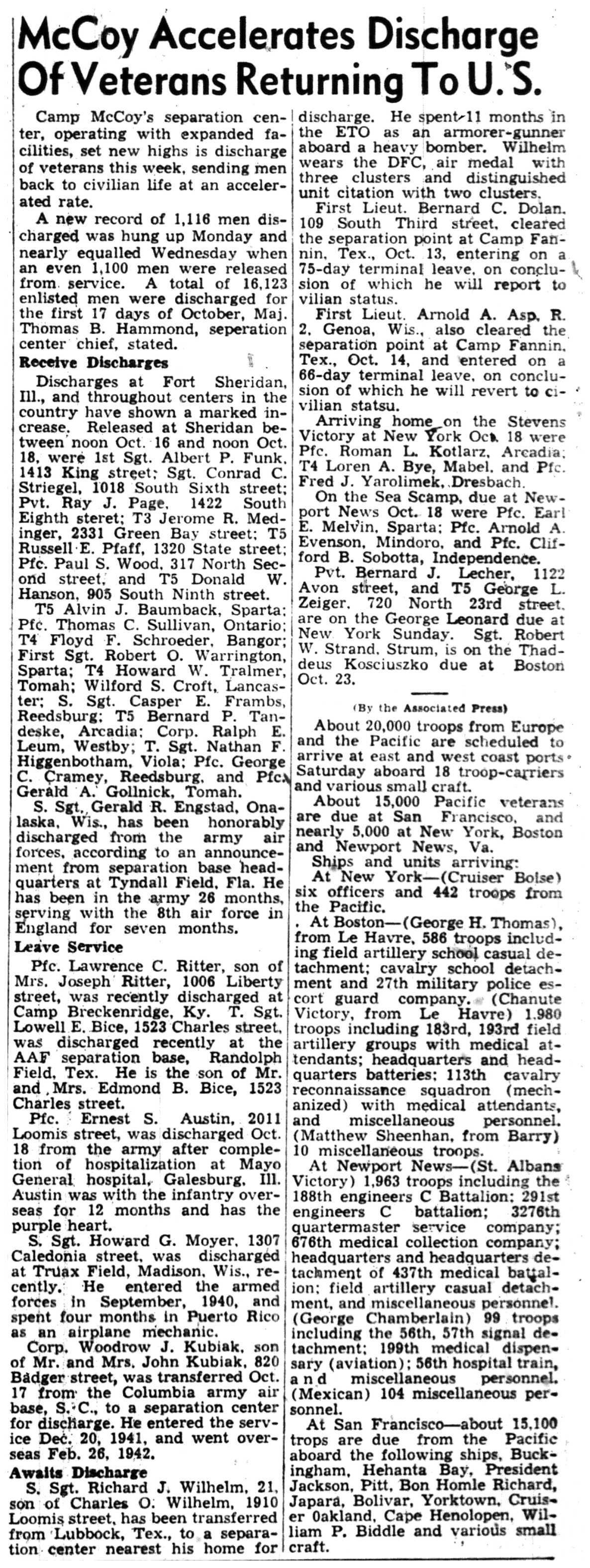 | 1945-10-22 | La Crosse Tribune p5 | |