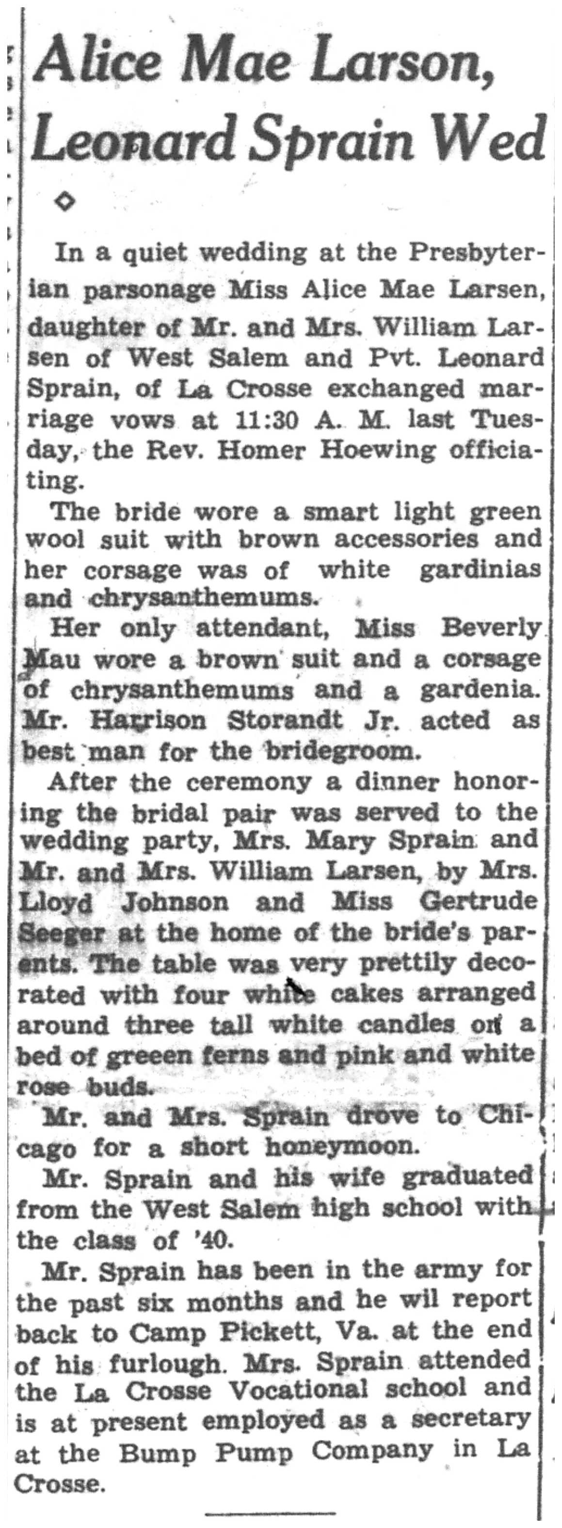 | 1945-10-21 | La Crosse Tribune p10 | |