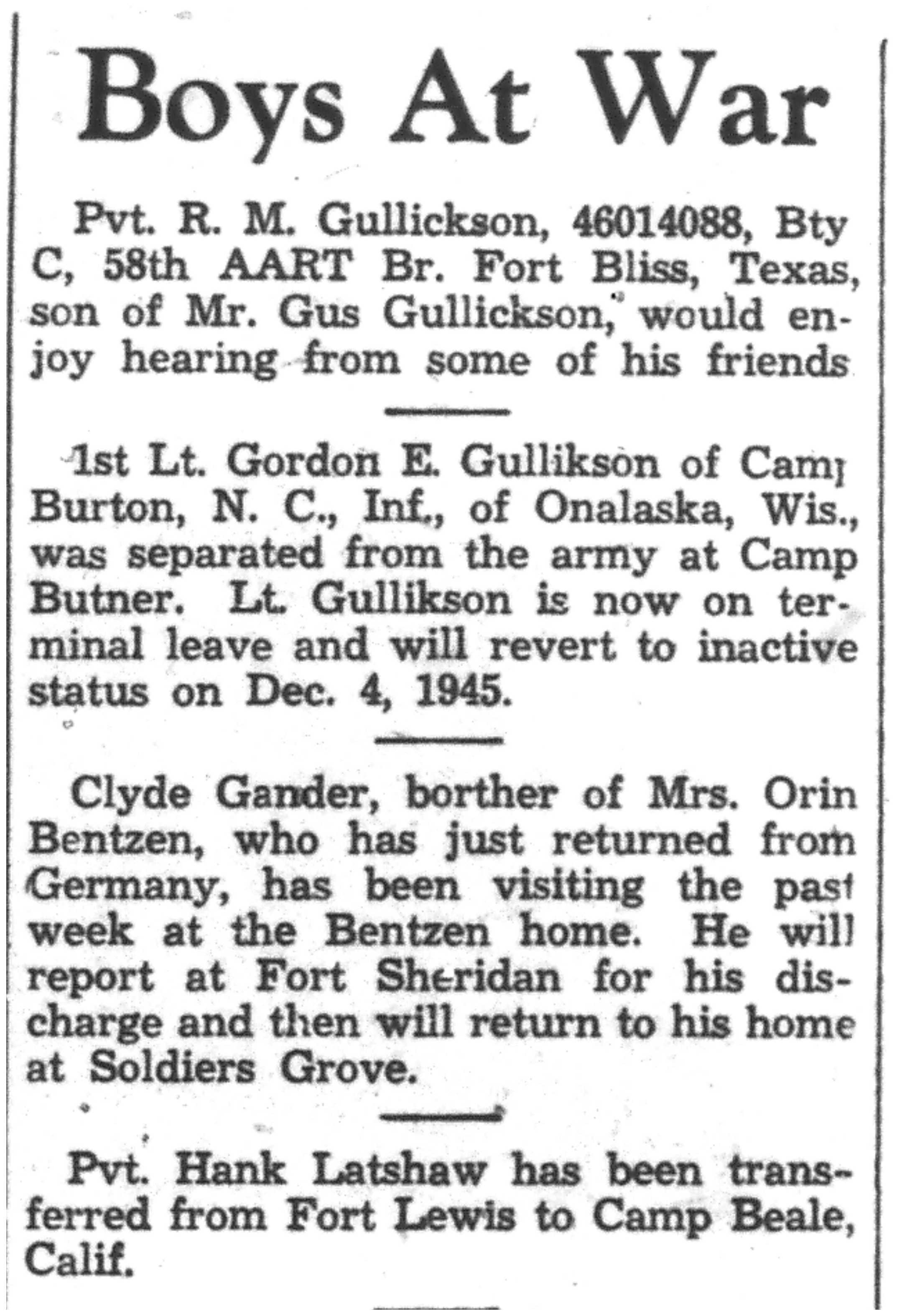 | 1945-10-25 | La Crosse Tribune p12 | |