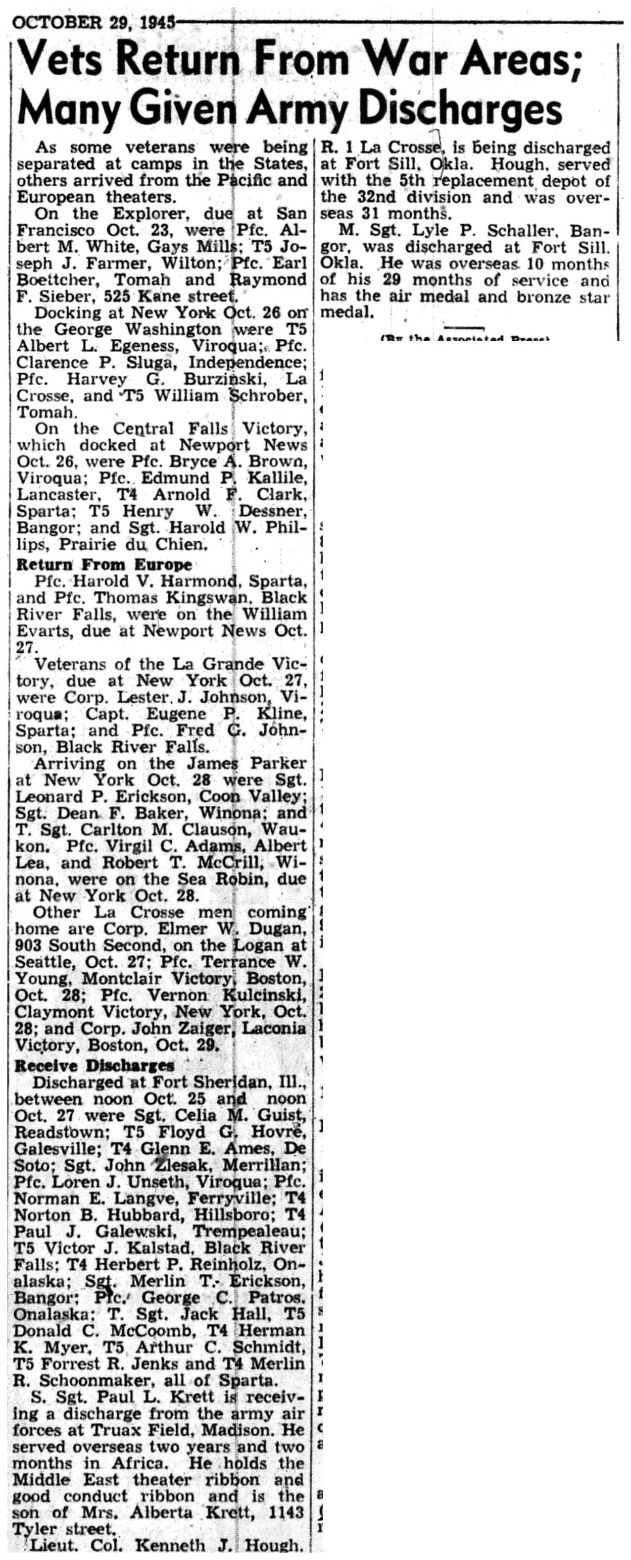 | 1945-10-29 | La Crosse Tribune p5 | |
