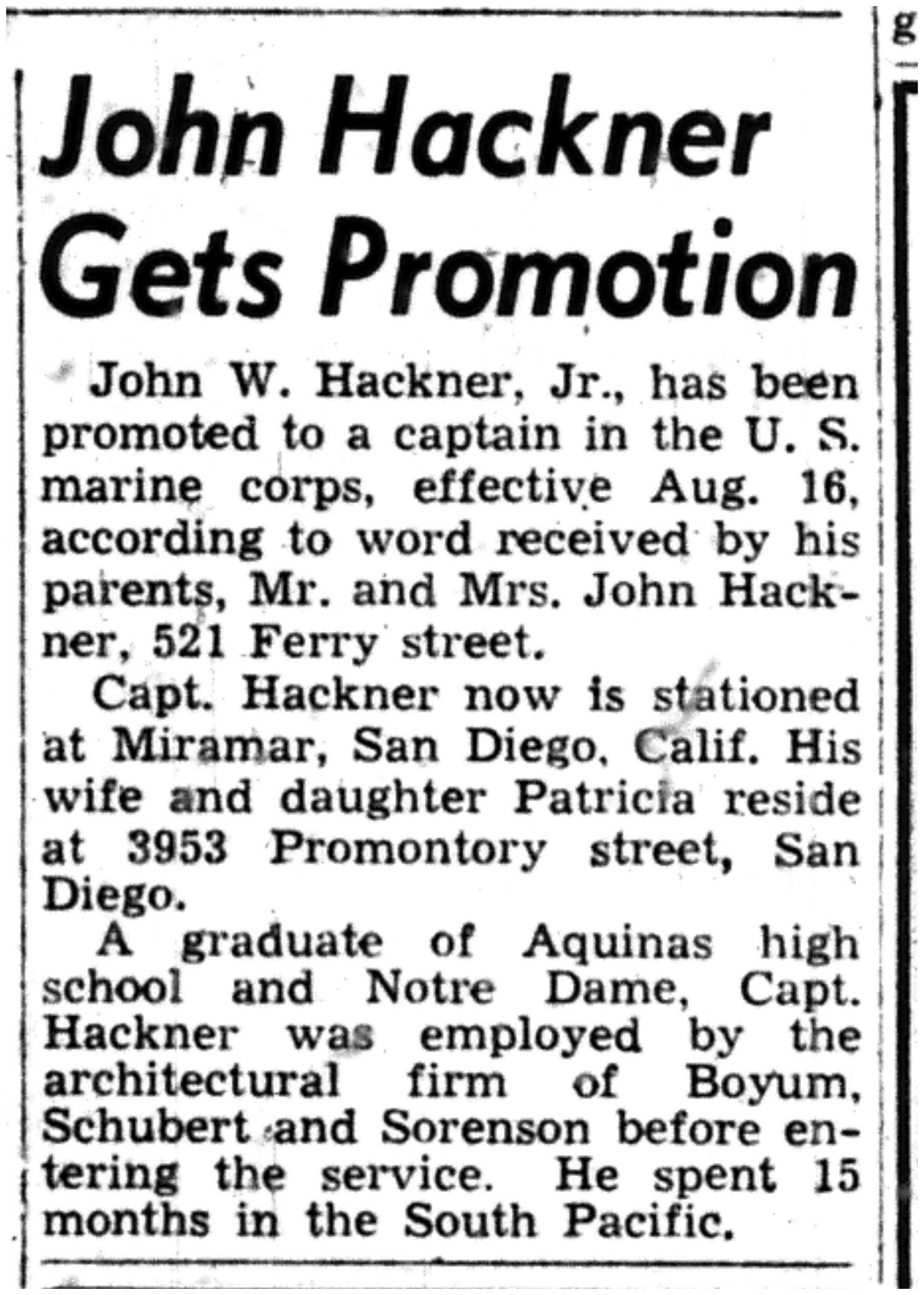| 1945-9-9 | La Crosse Tribune p11 | |