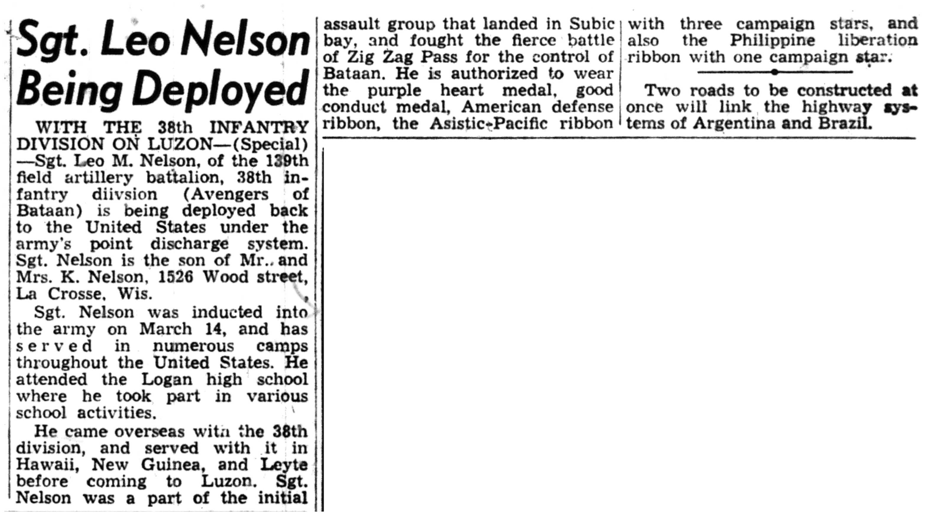 | 1945-9-2 | La Crosse Tribune p10 | |