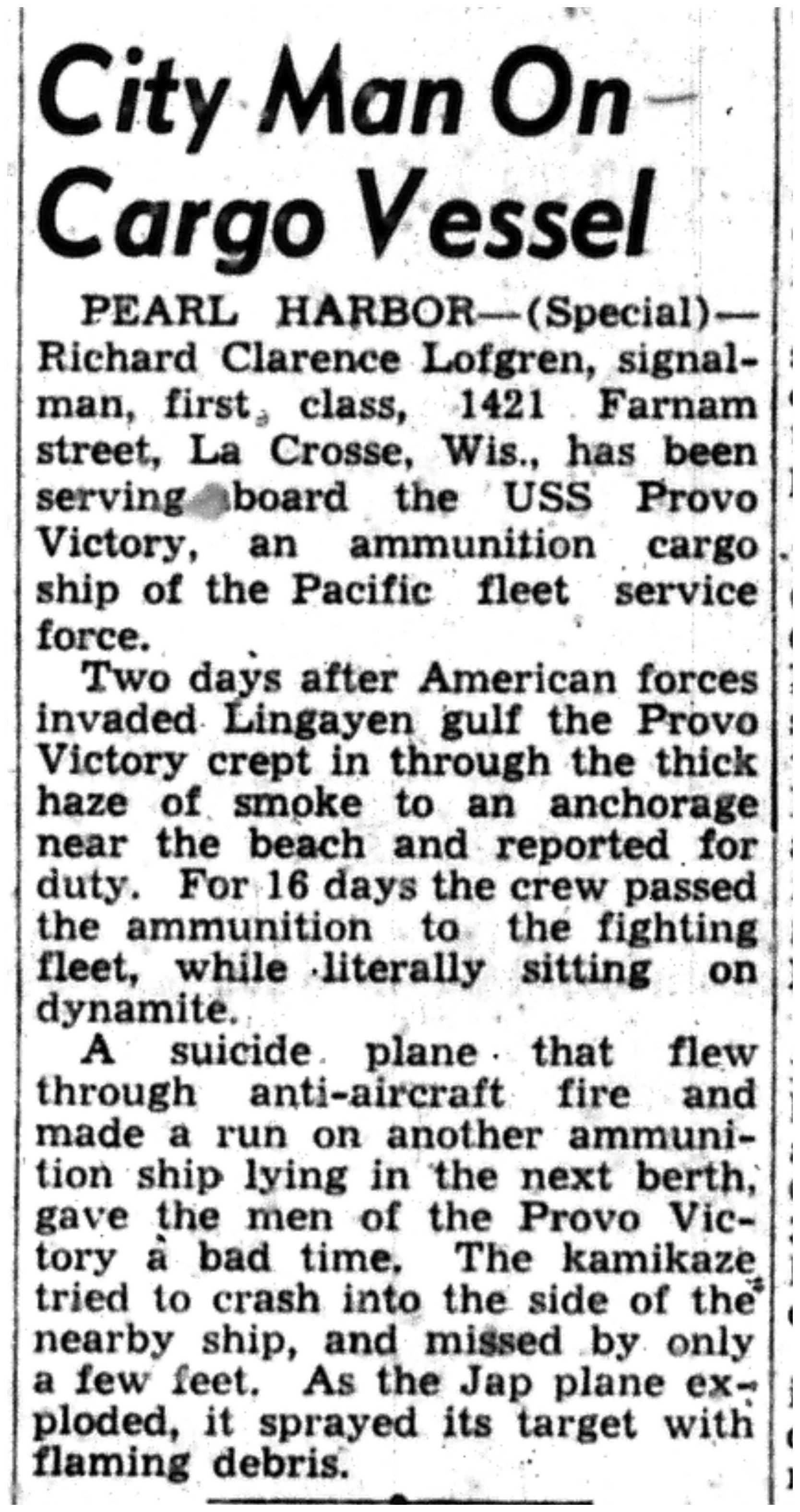 | 1945-9-7 | La Crosse Tribune p8 | |
