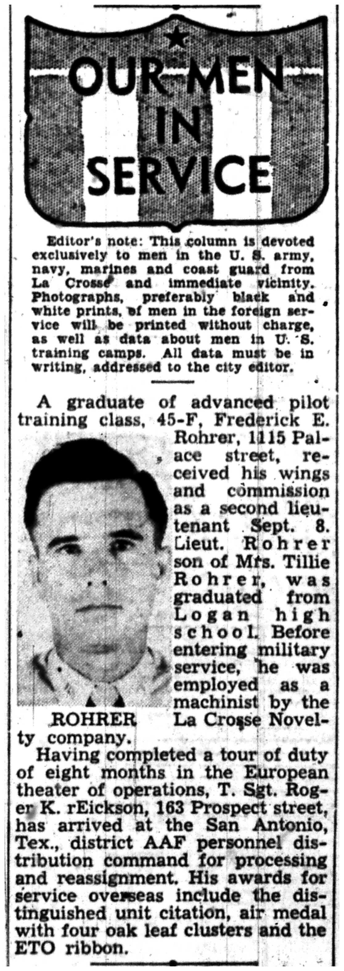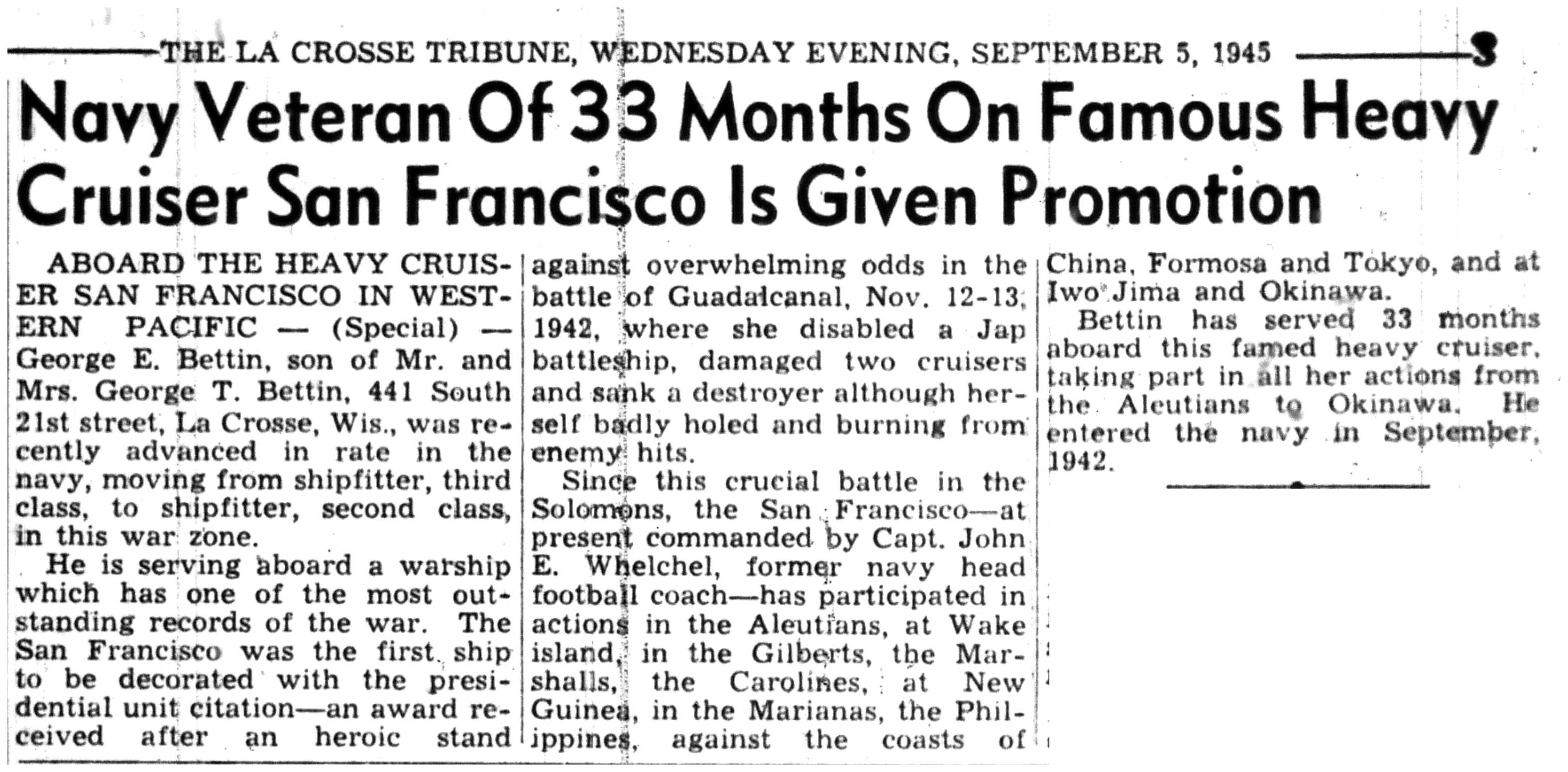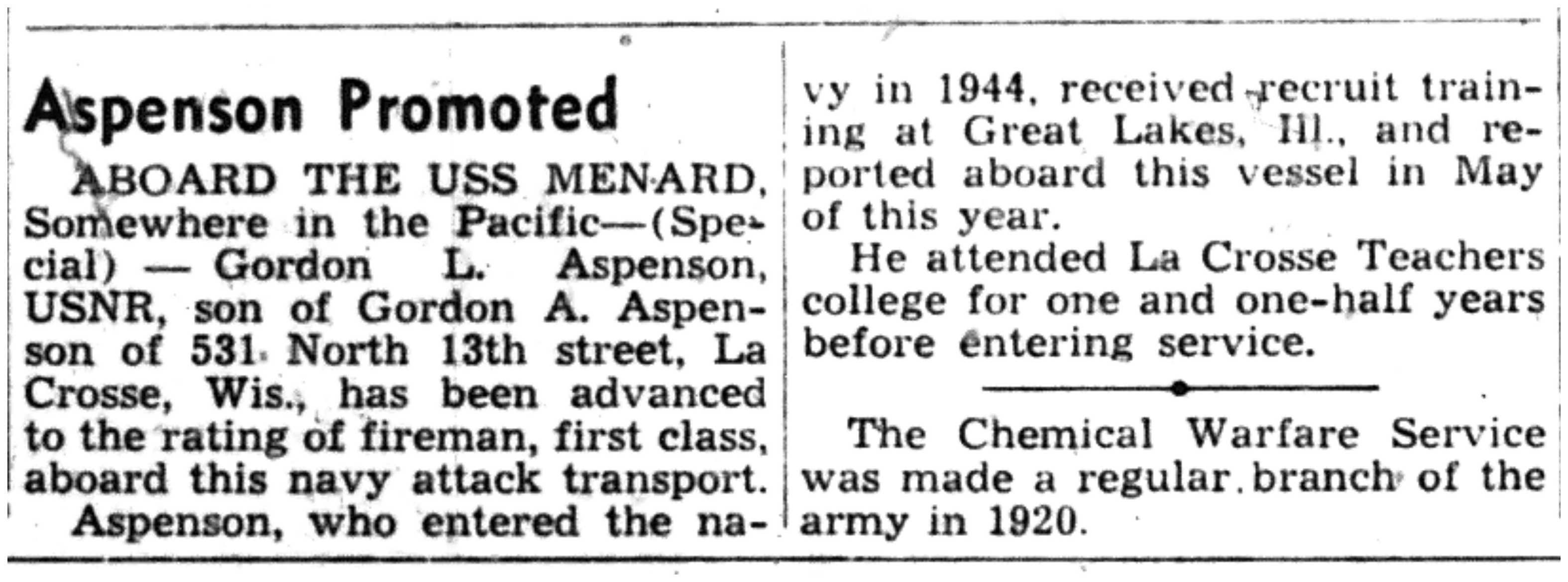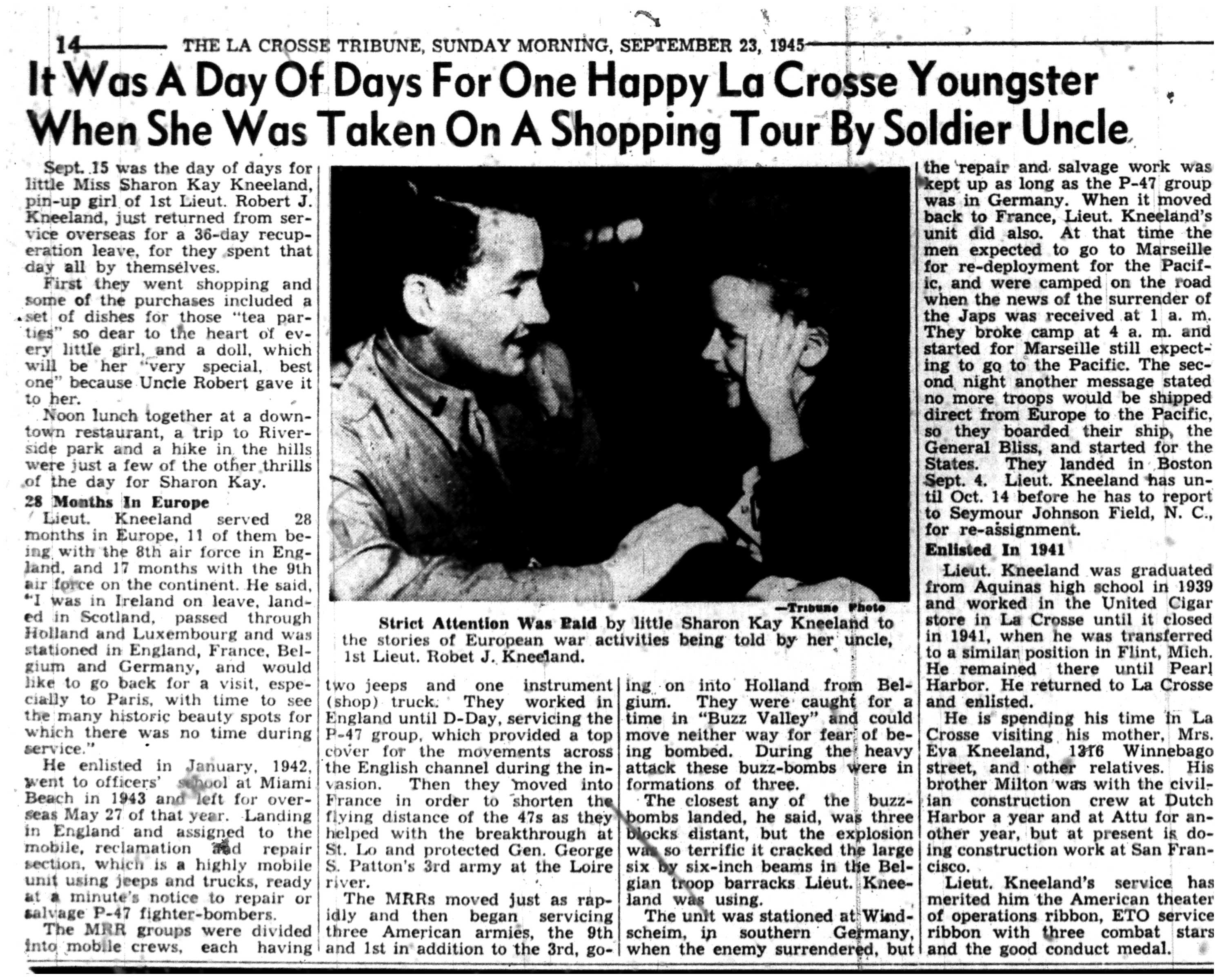 | 1945-9-2 | La Crosse Tribune p7 | |