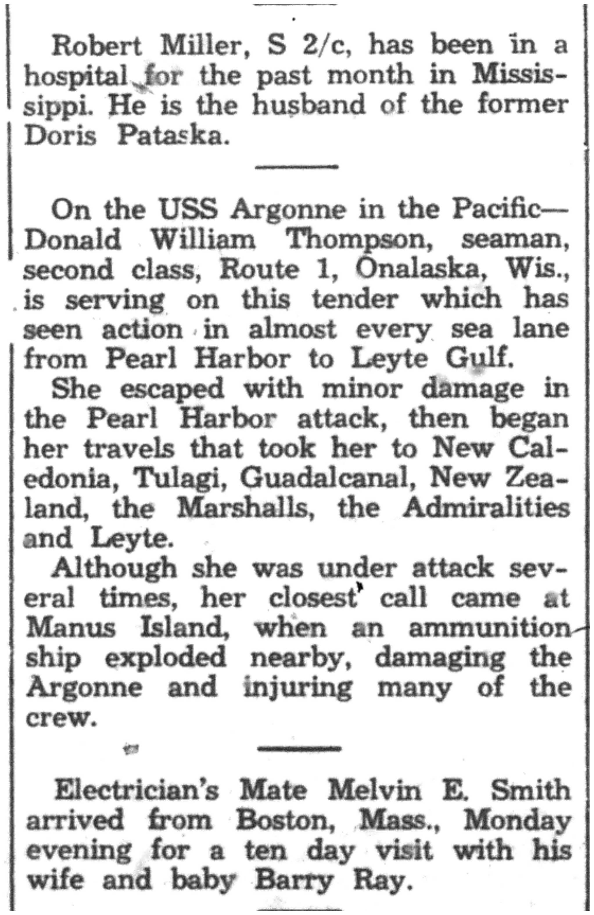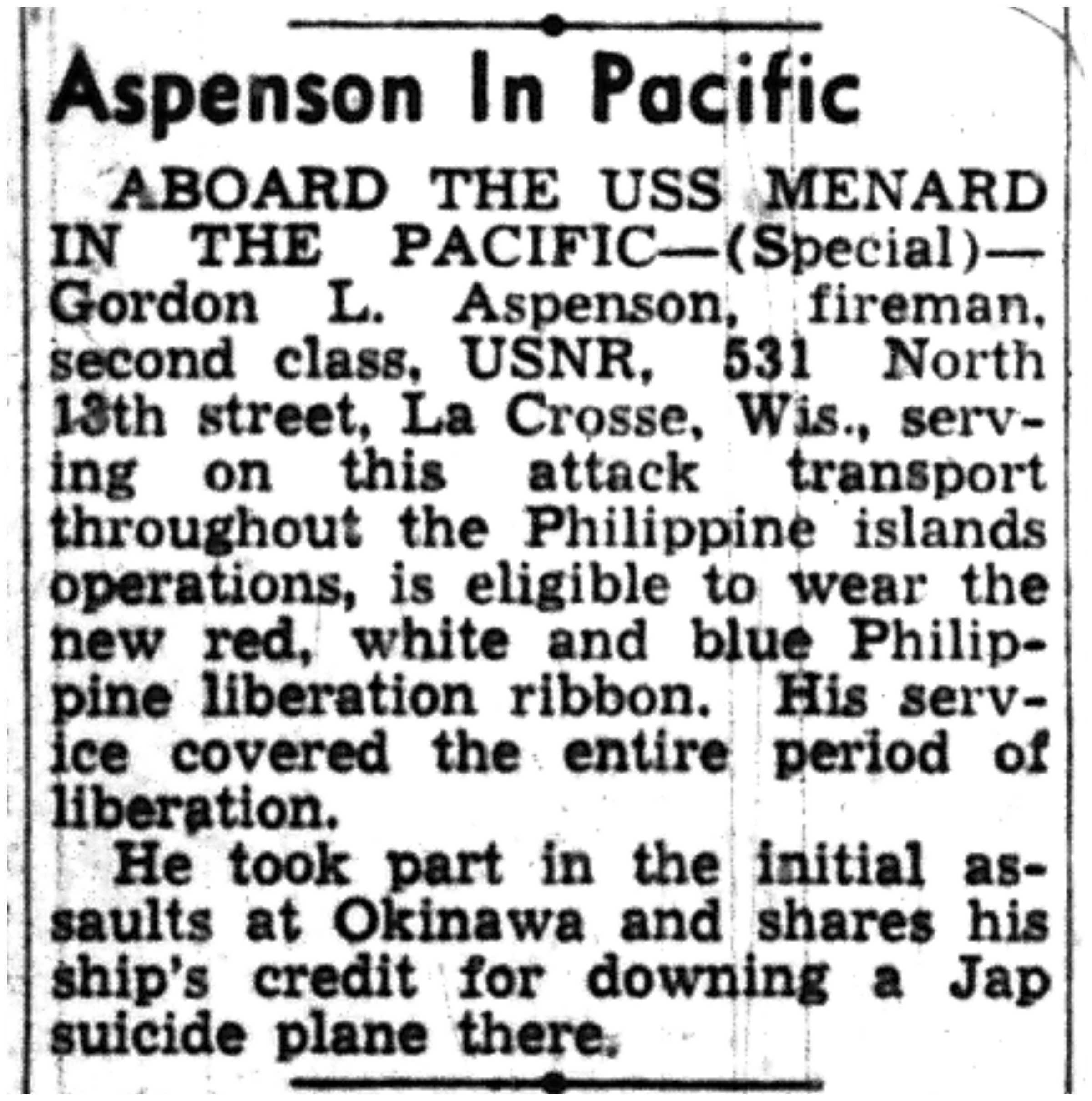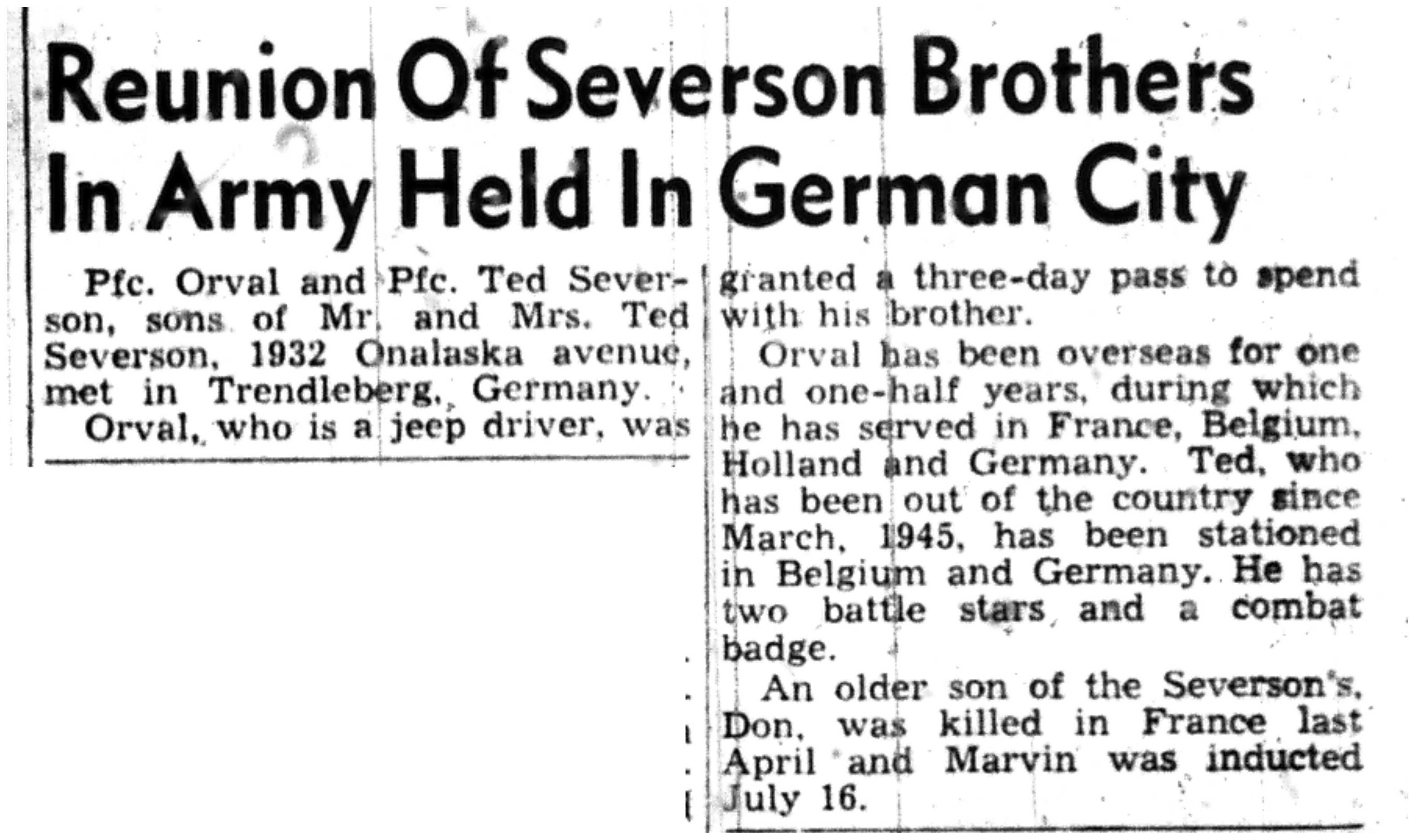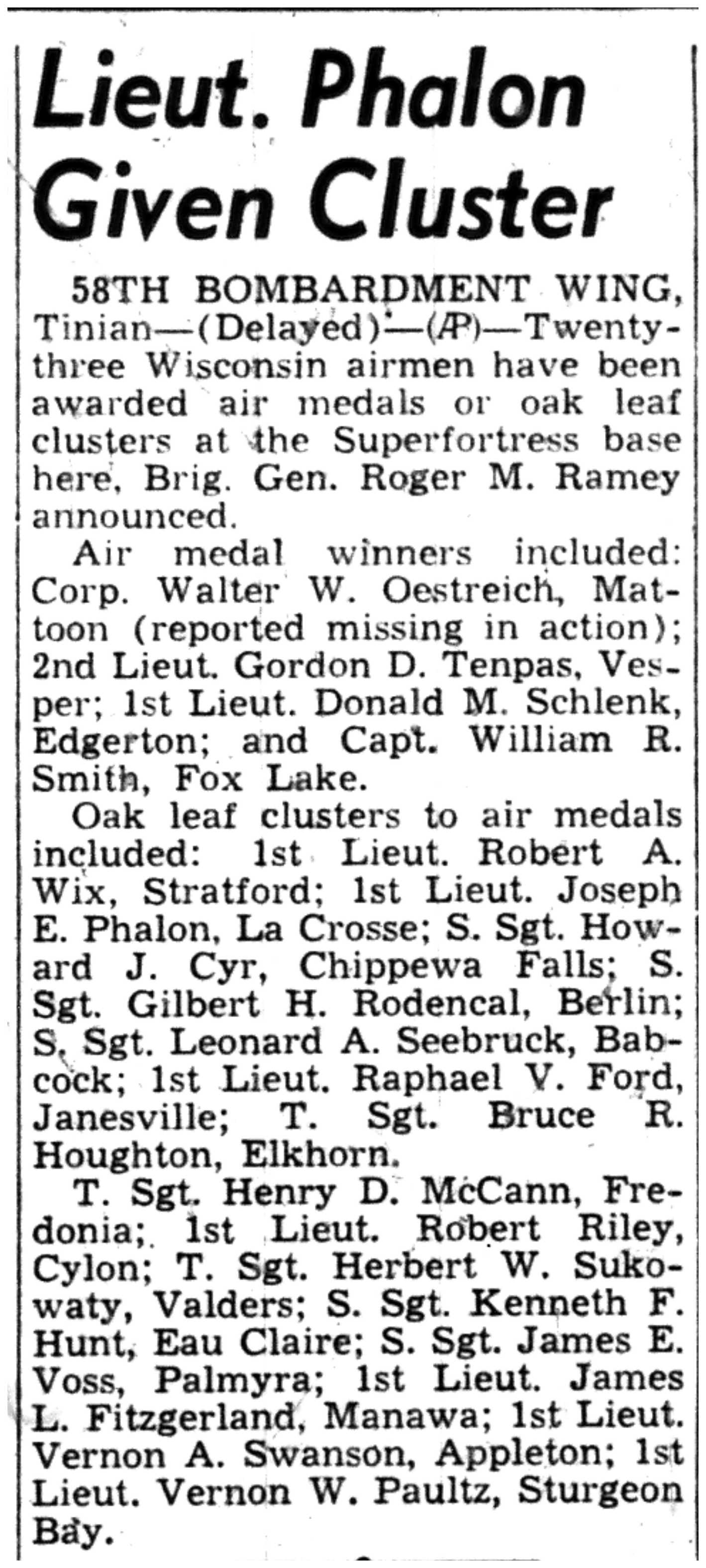 | 1945-9-2 | La Crosse Tribune p7 | |