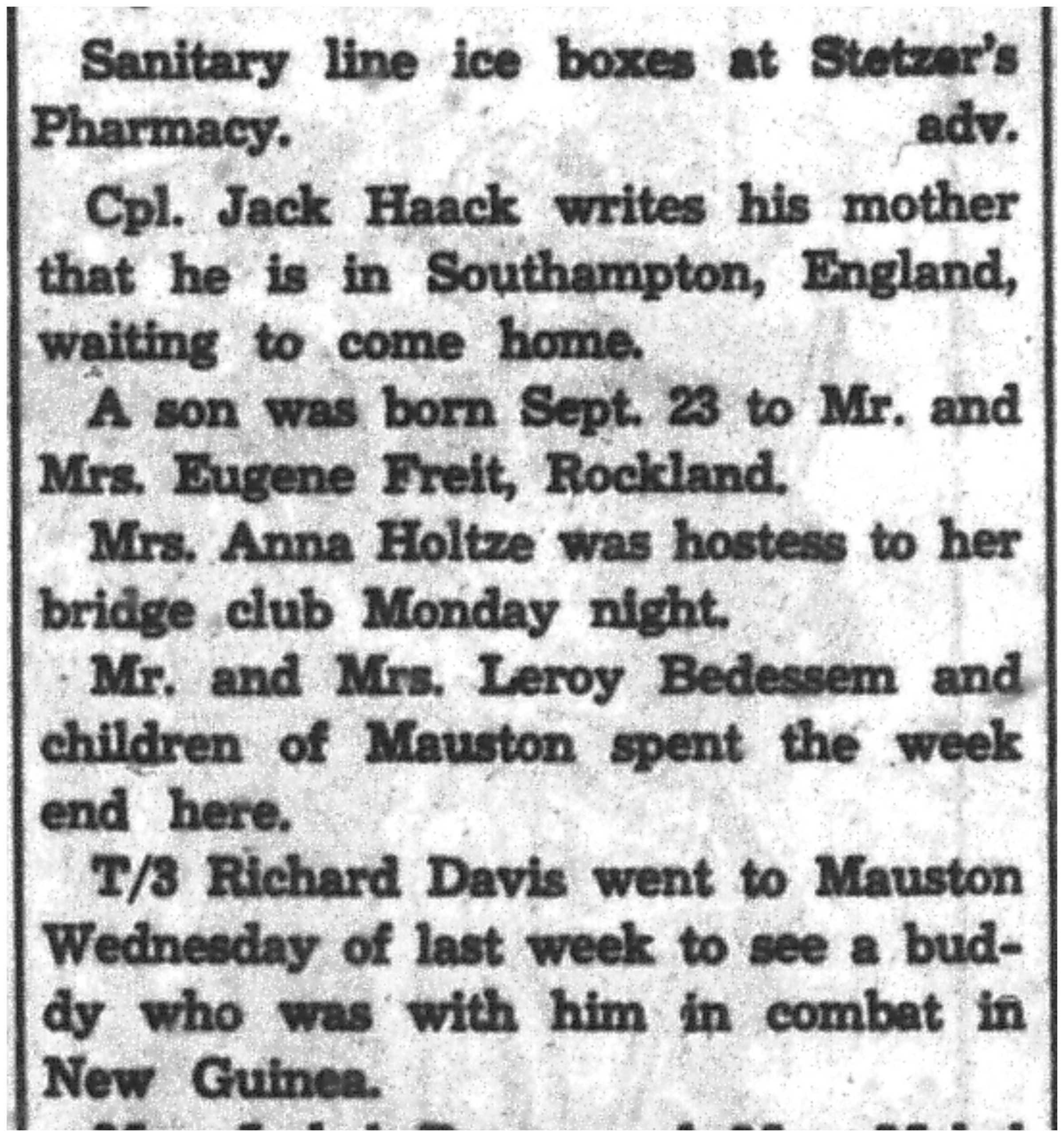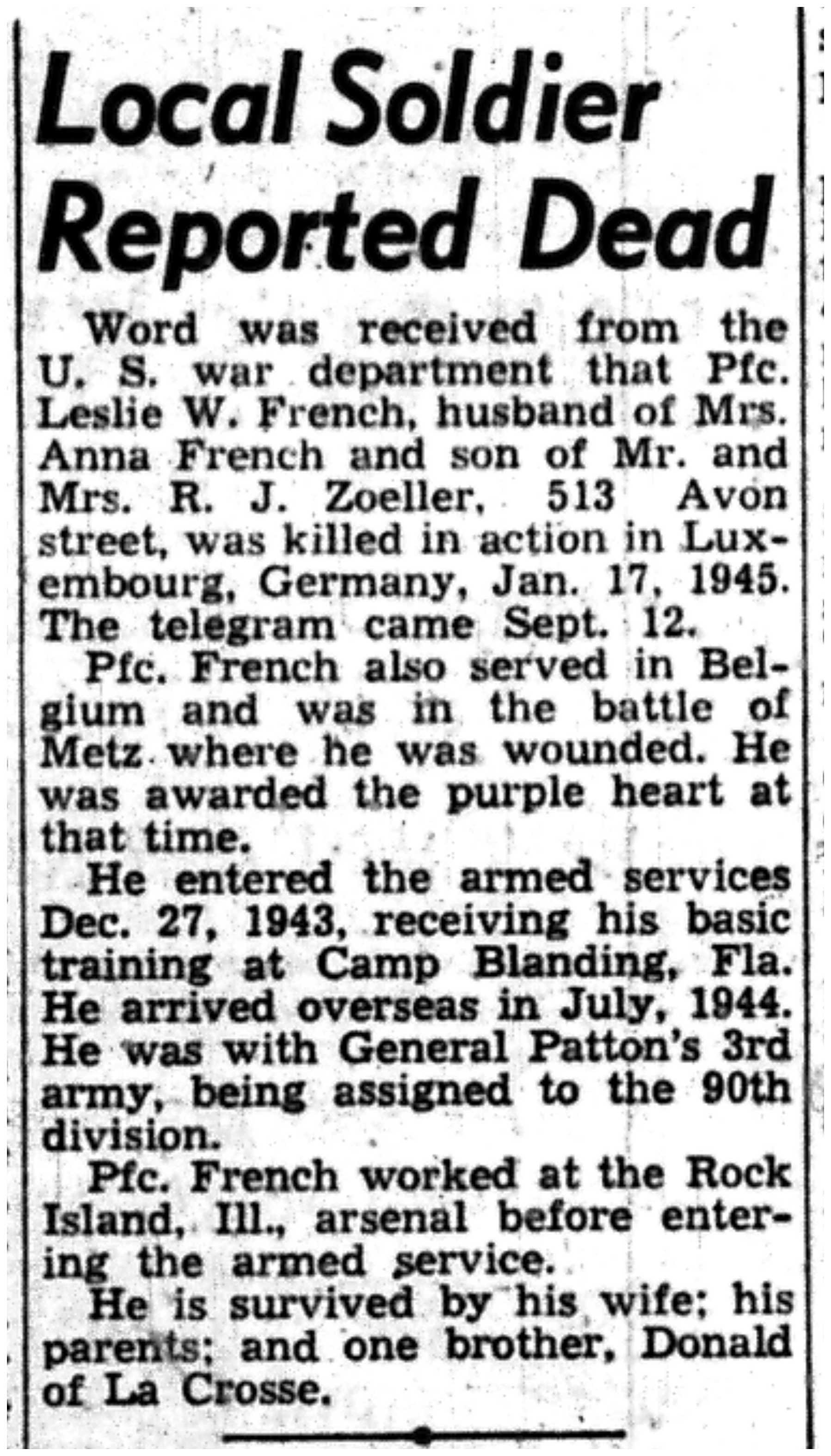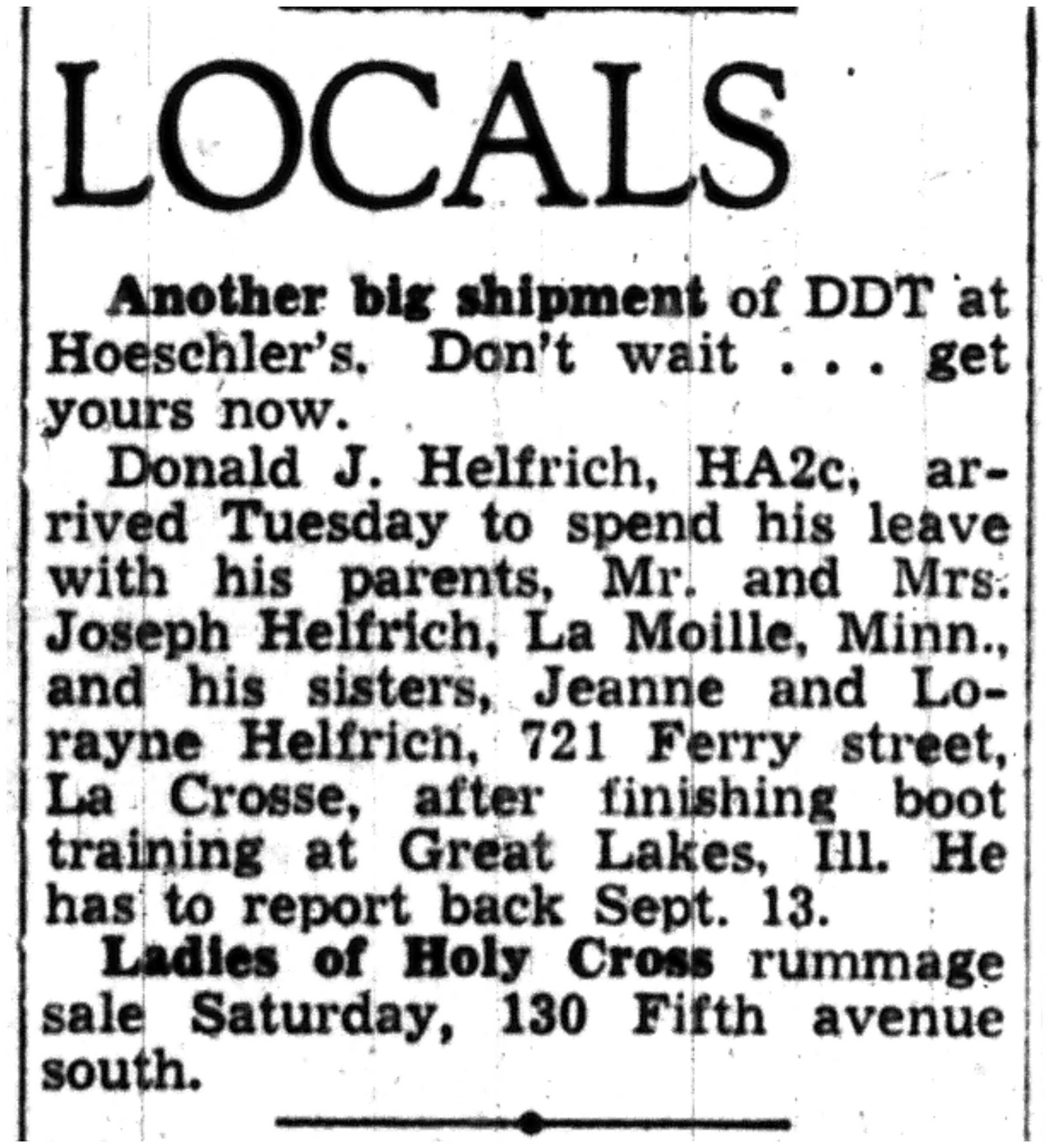 | 1945-9-9 | La Crosse Tribune p10 | |