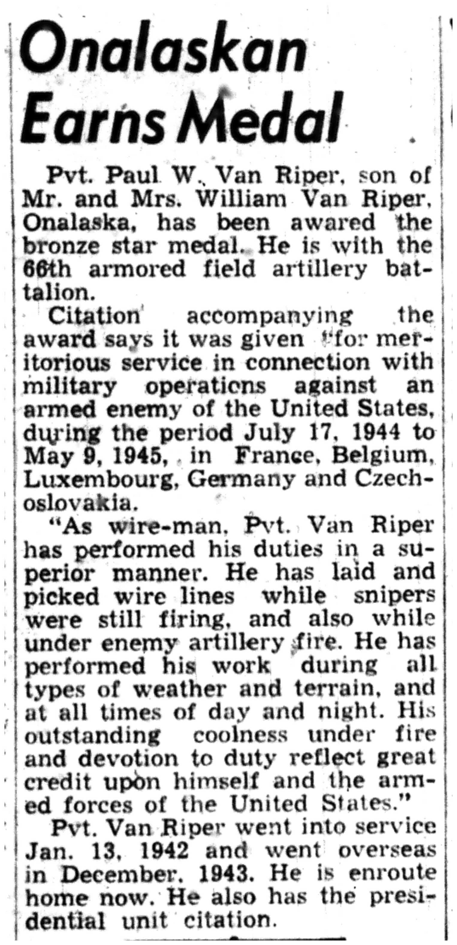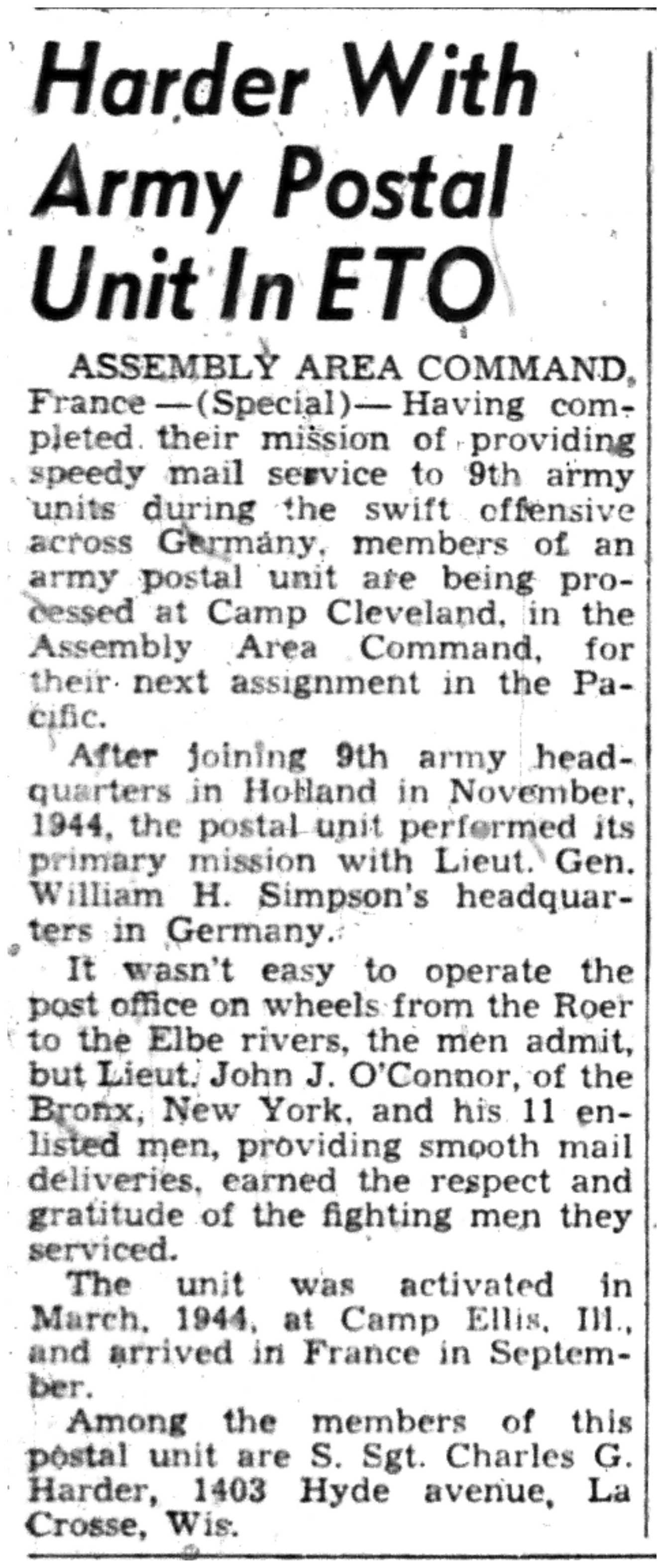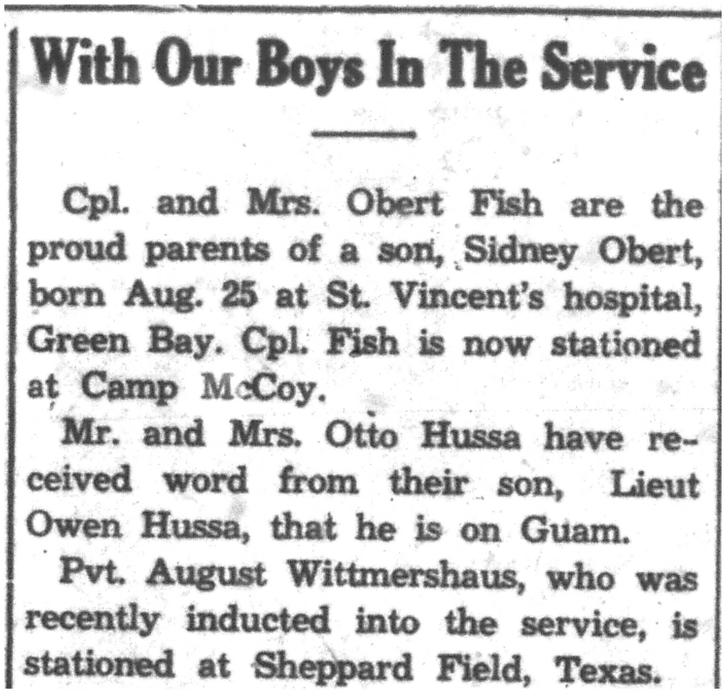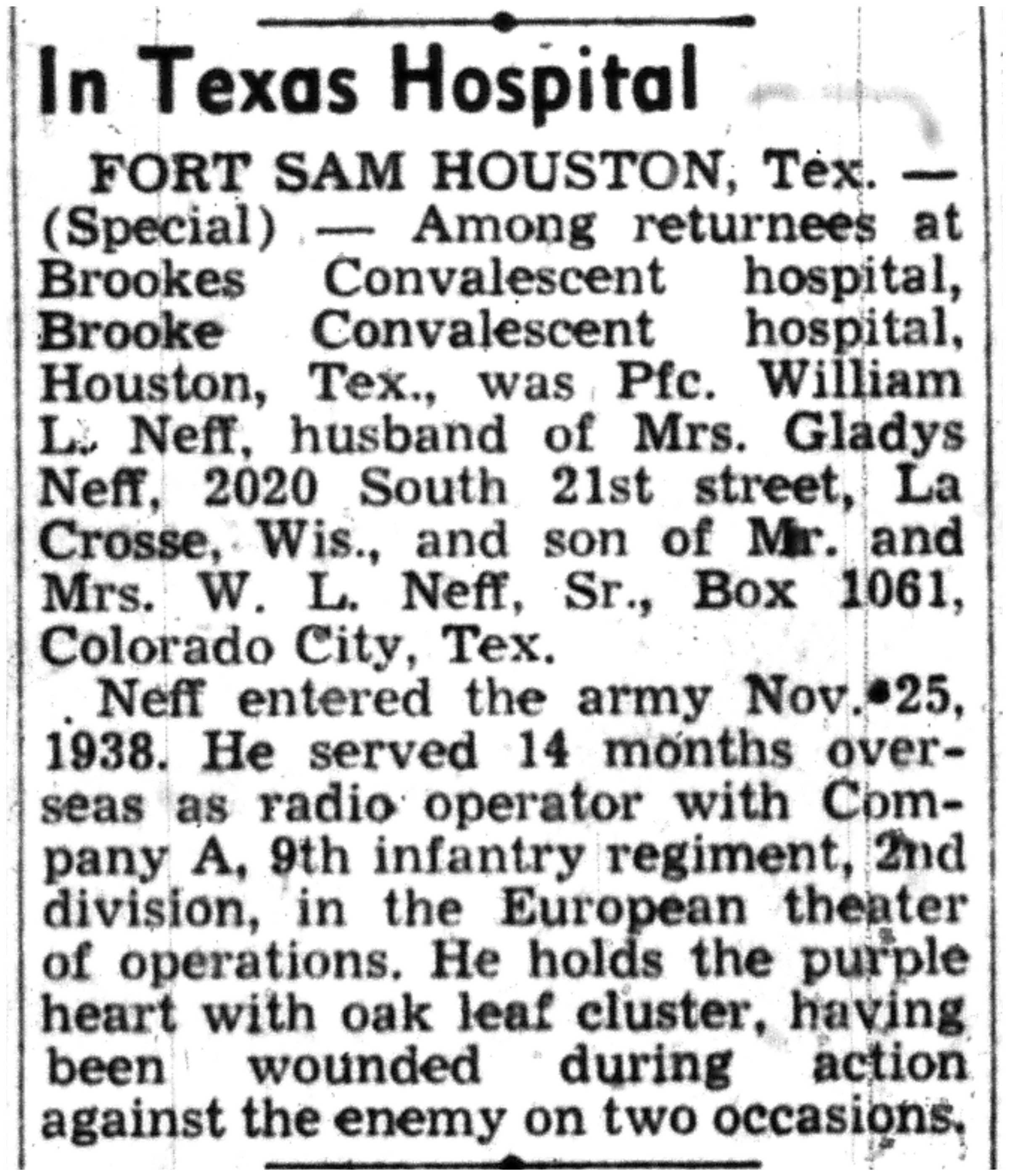 | 1945-9-9 | La Crosse Tribune p10 | |