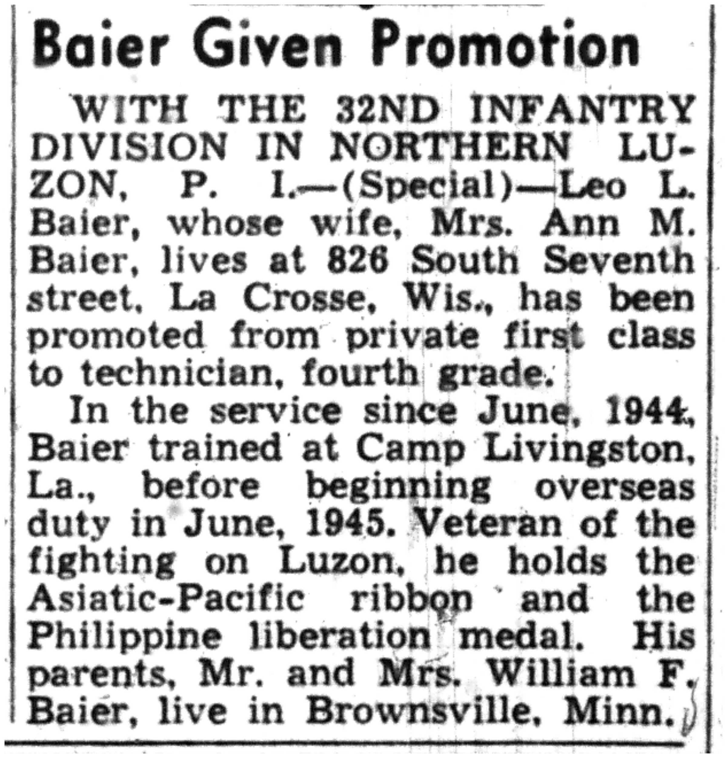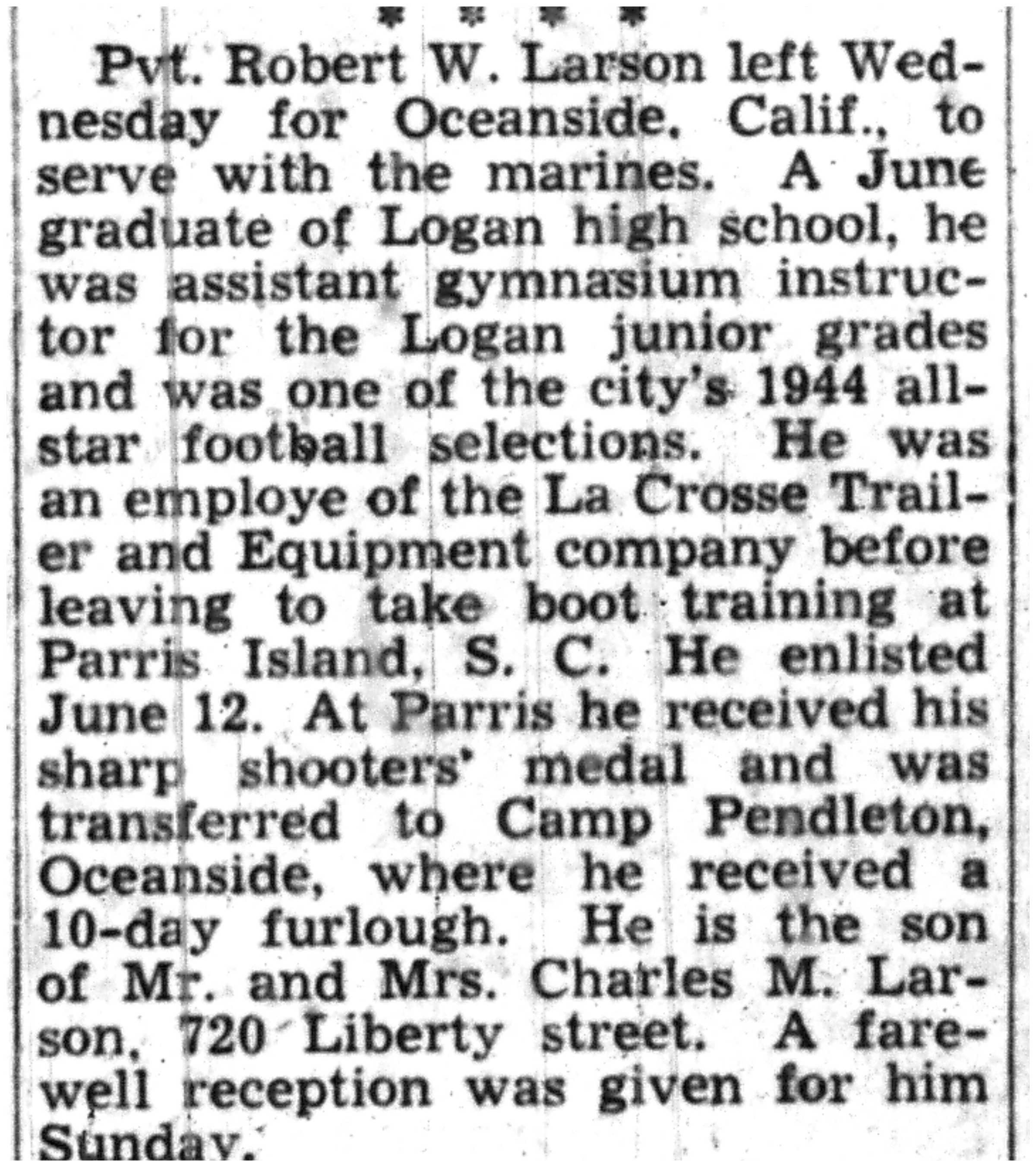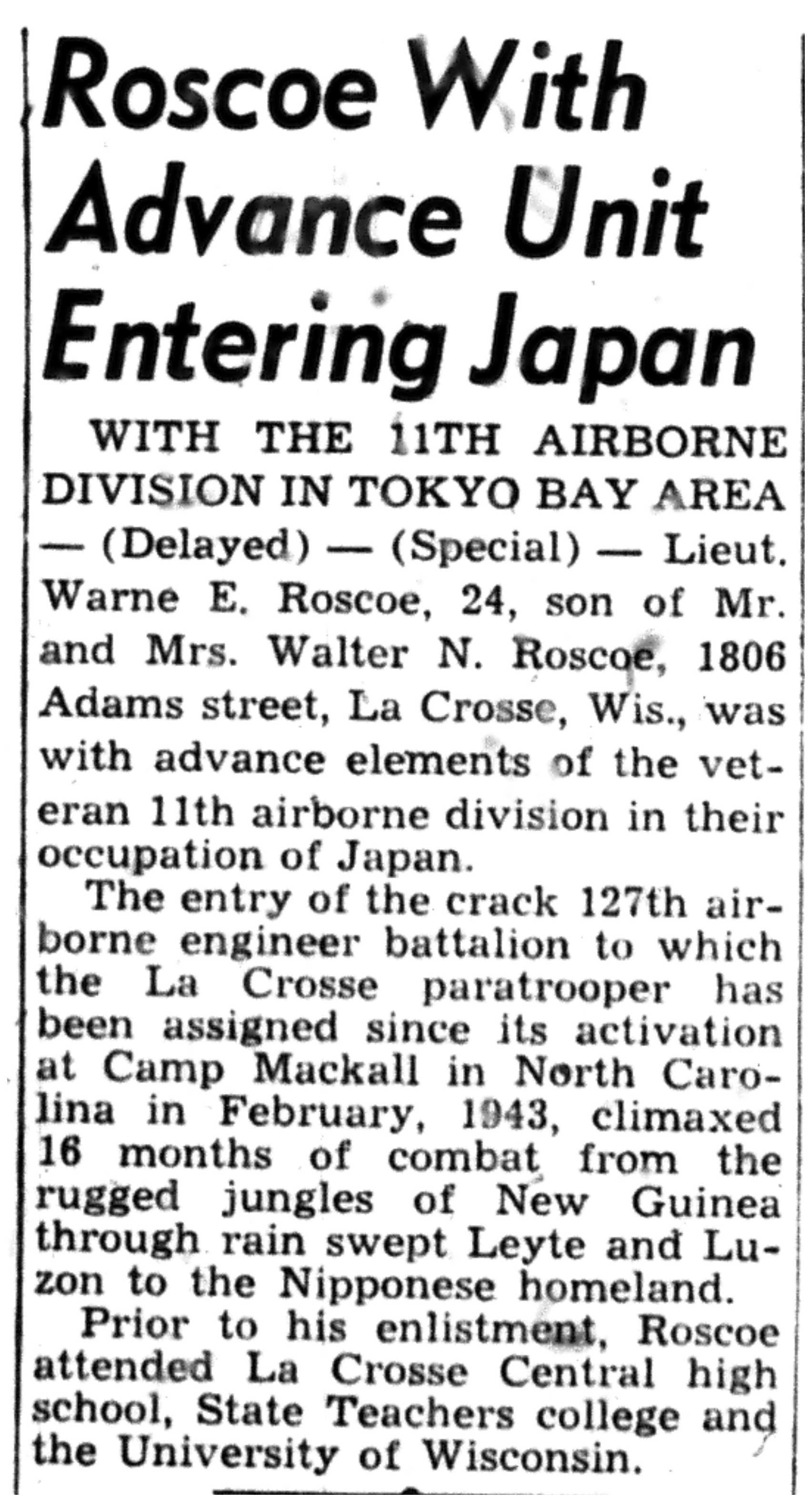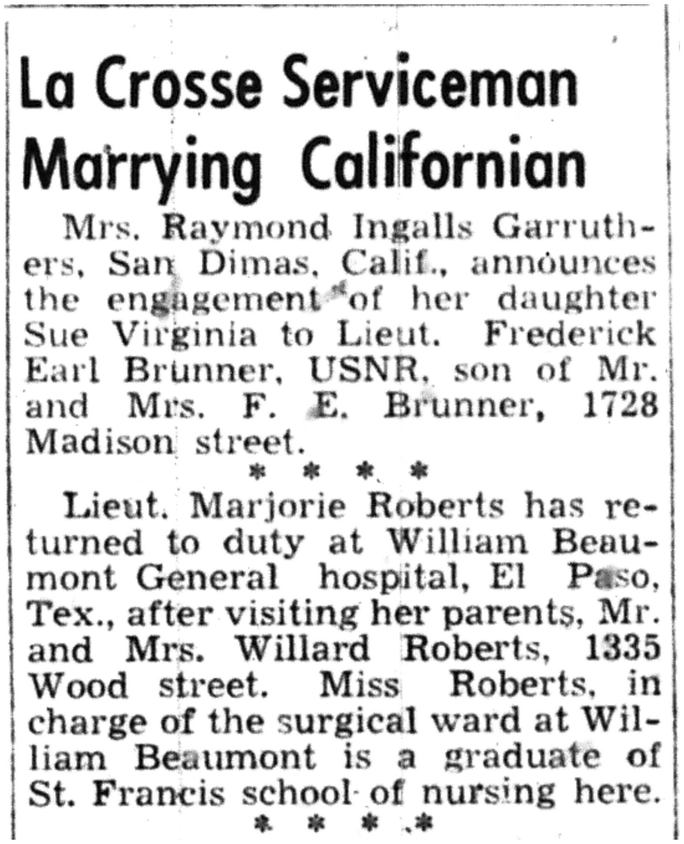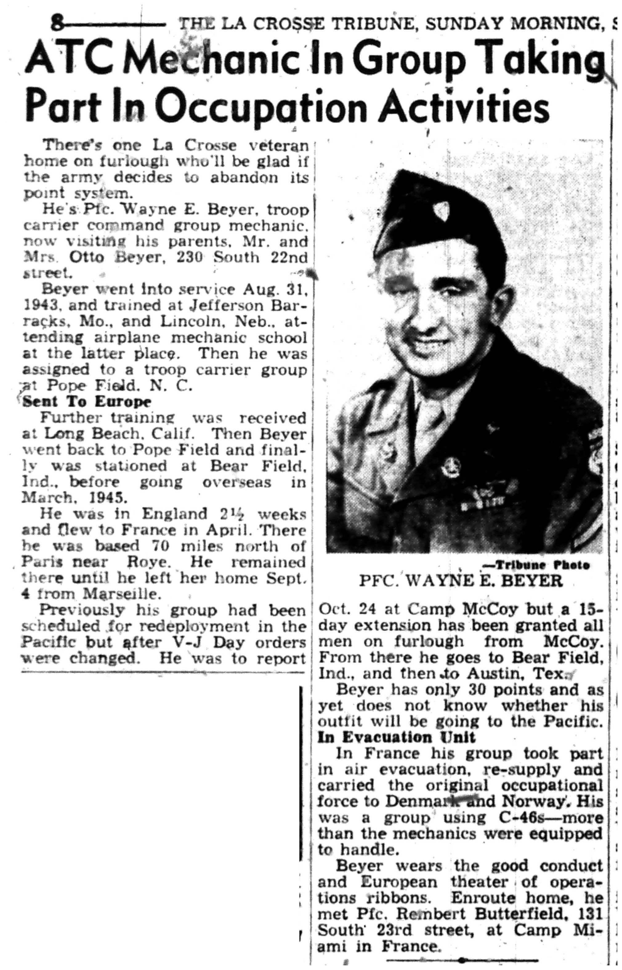 | 1945-9-2 | La Crosse Tribune p10 | |