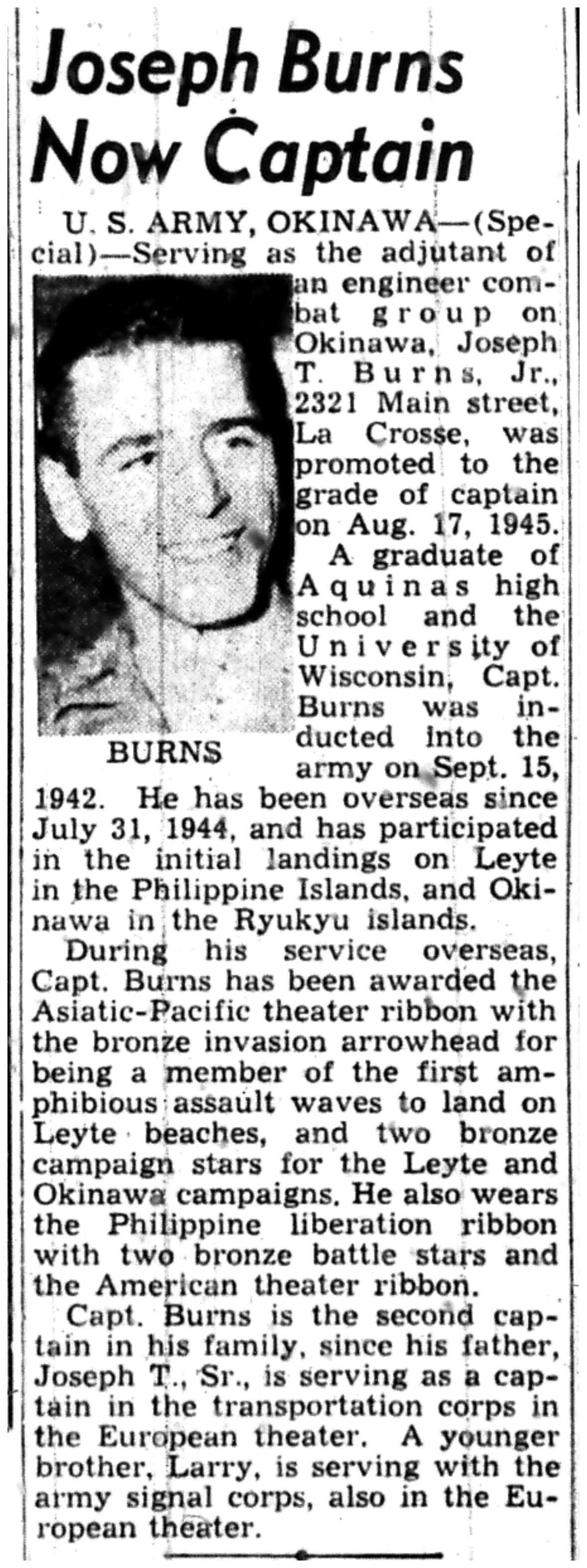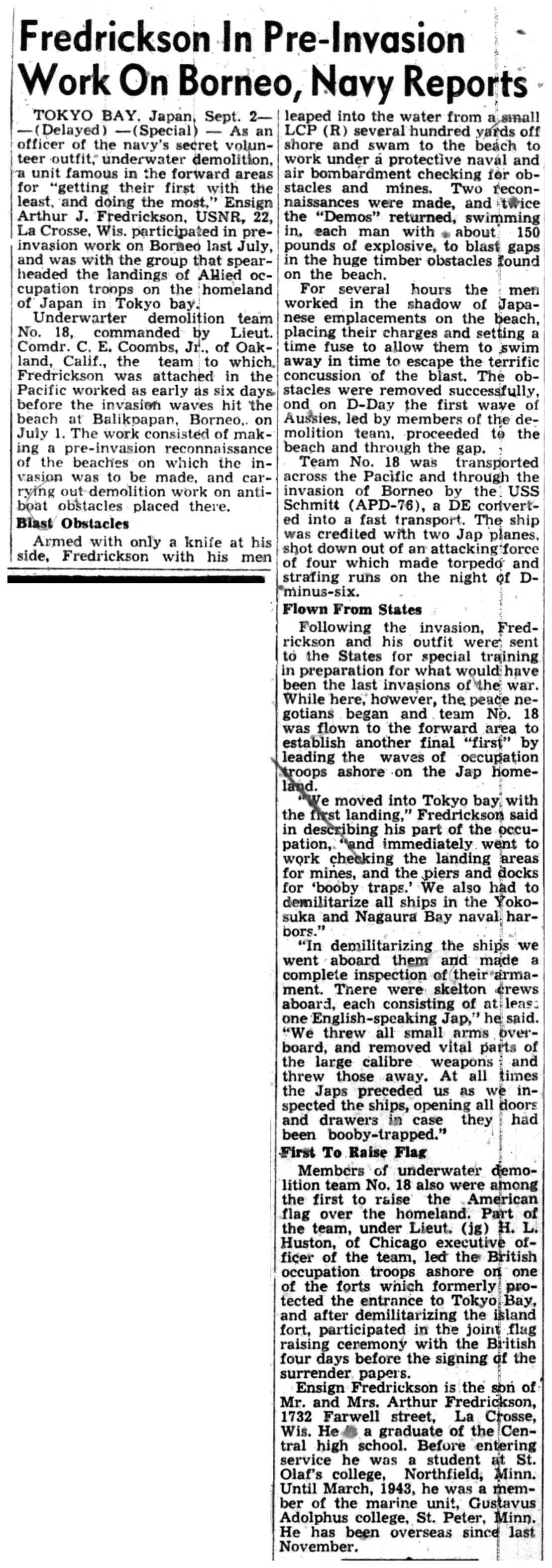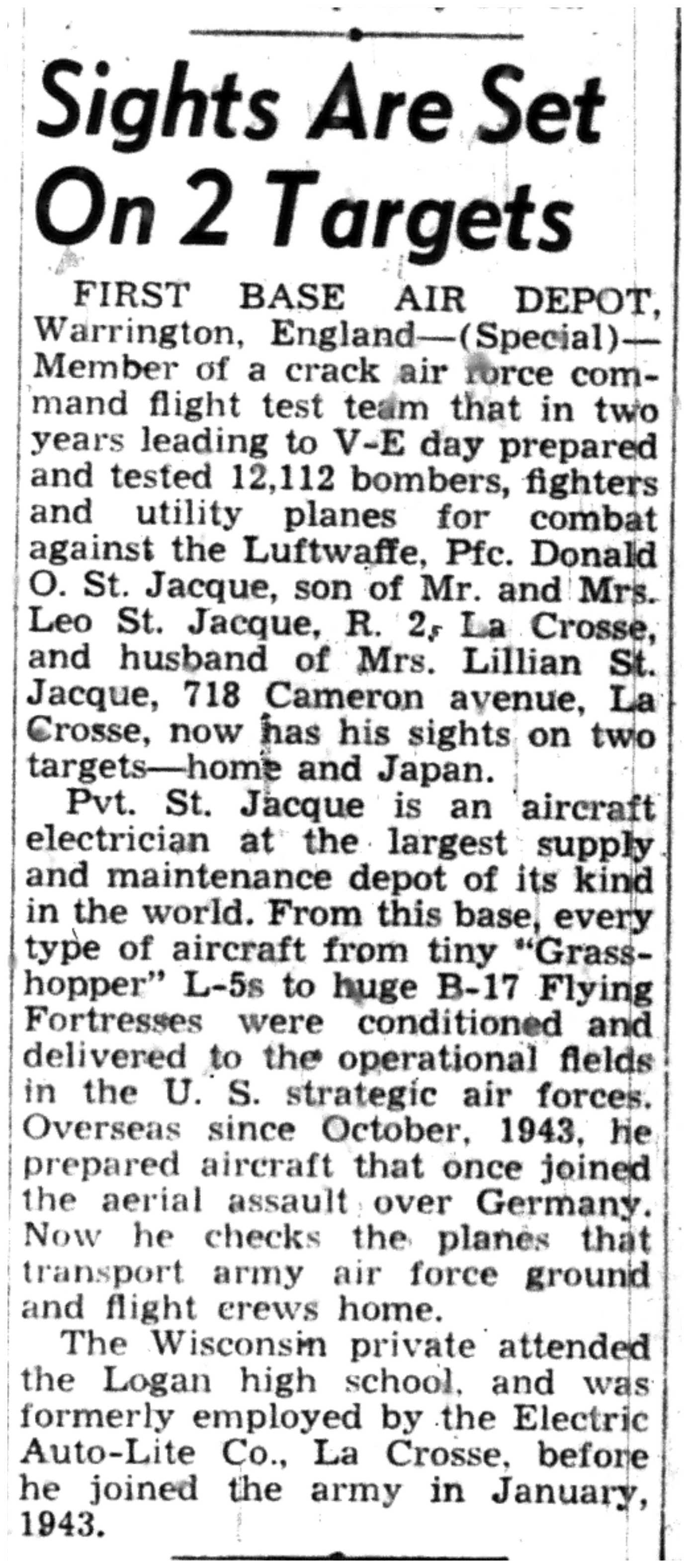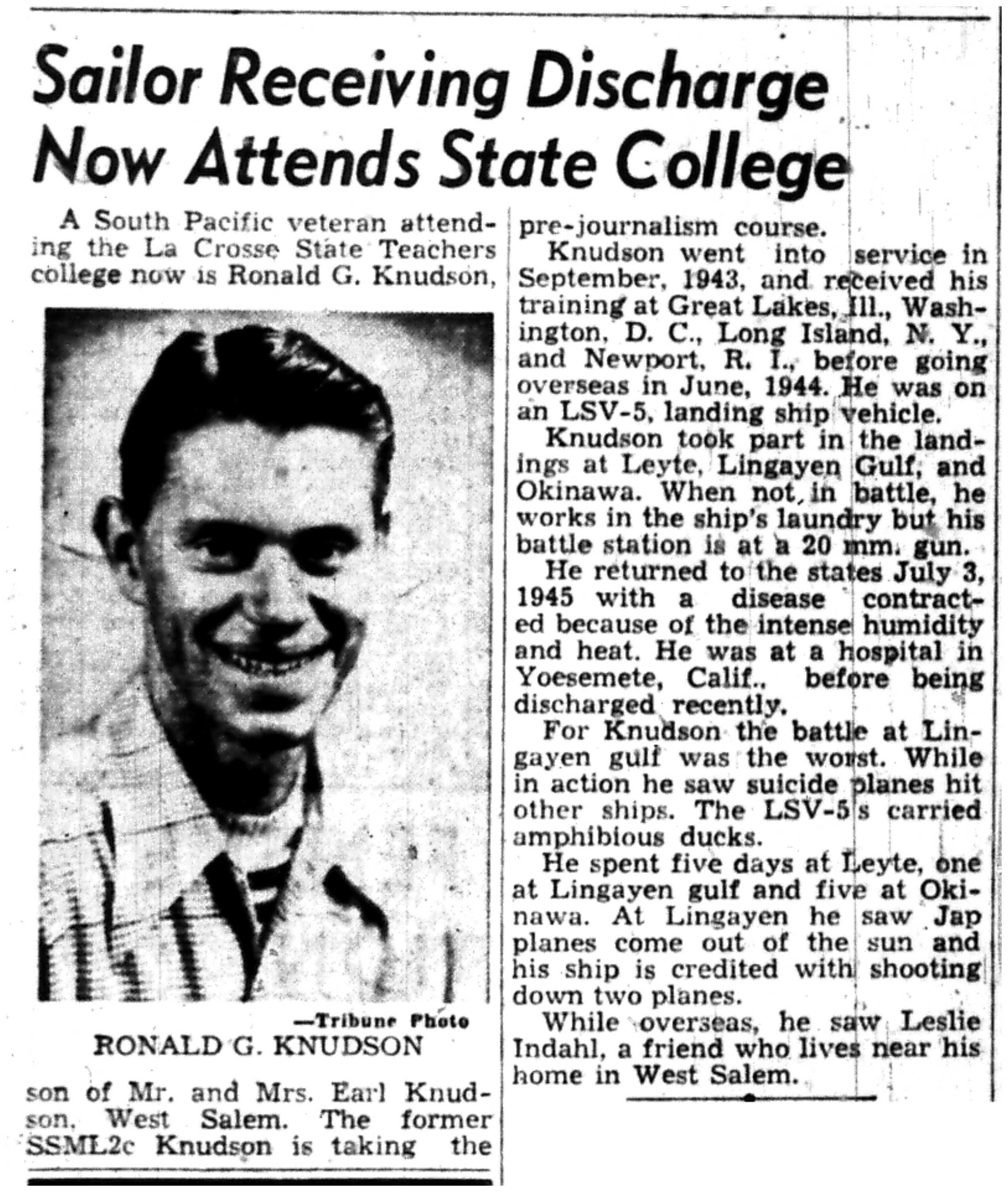 | 1945-9-2 | La Crosse Tribune p10 | |