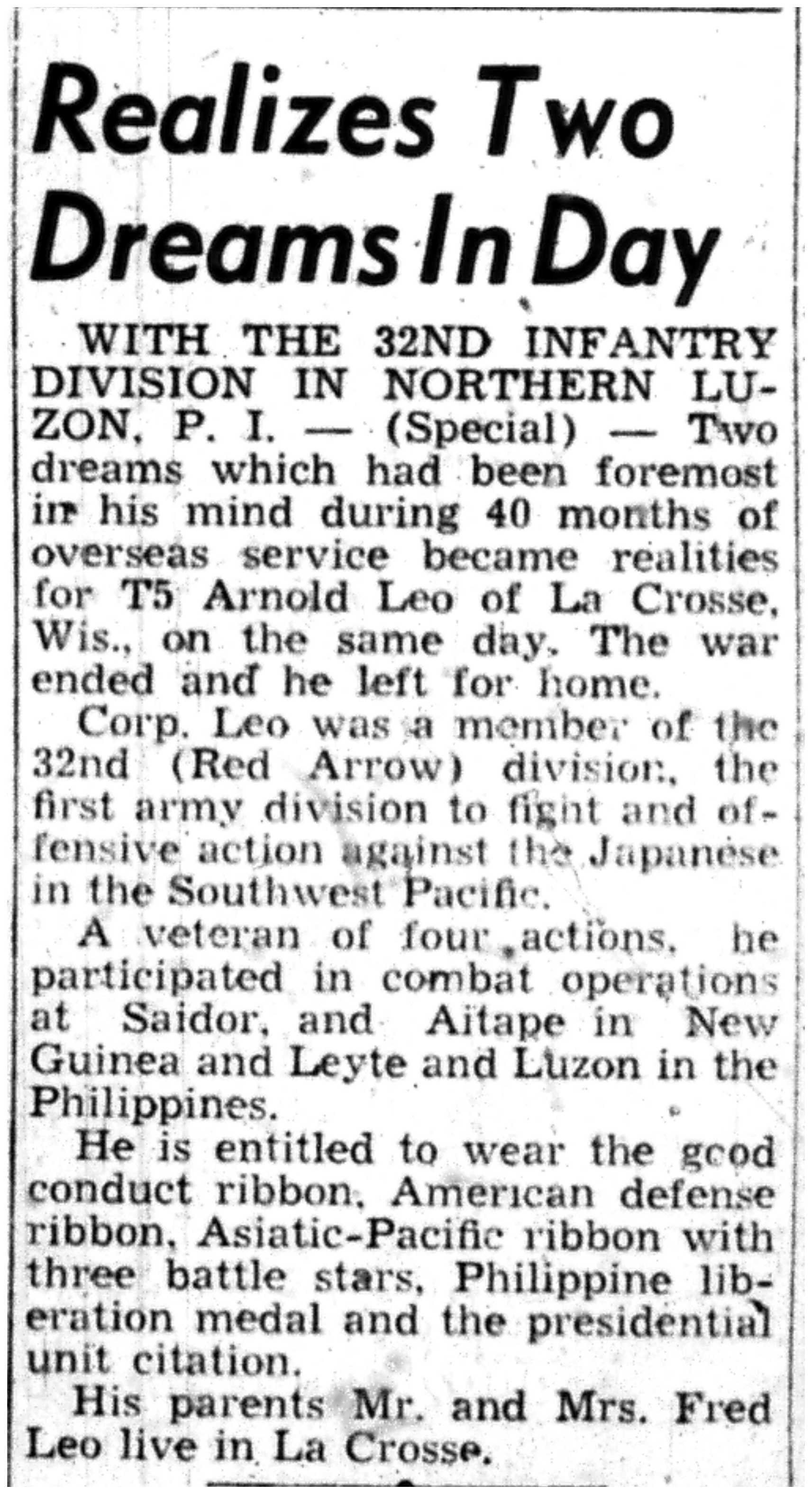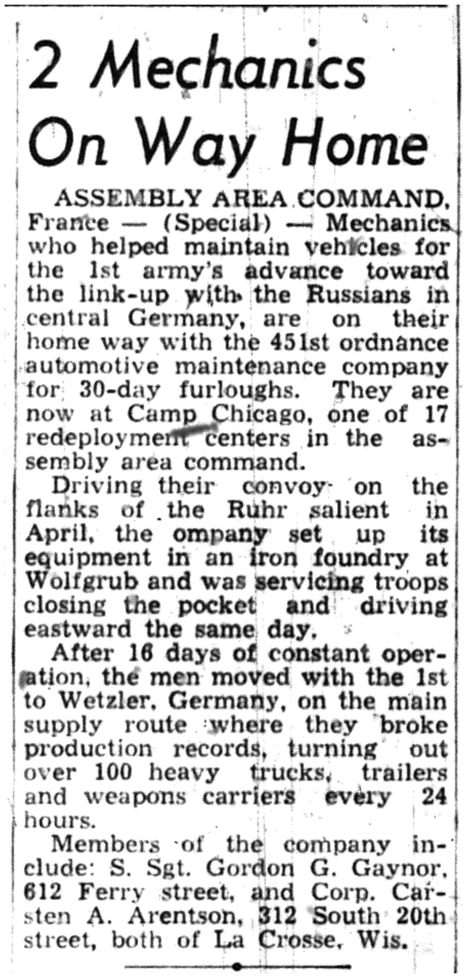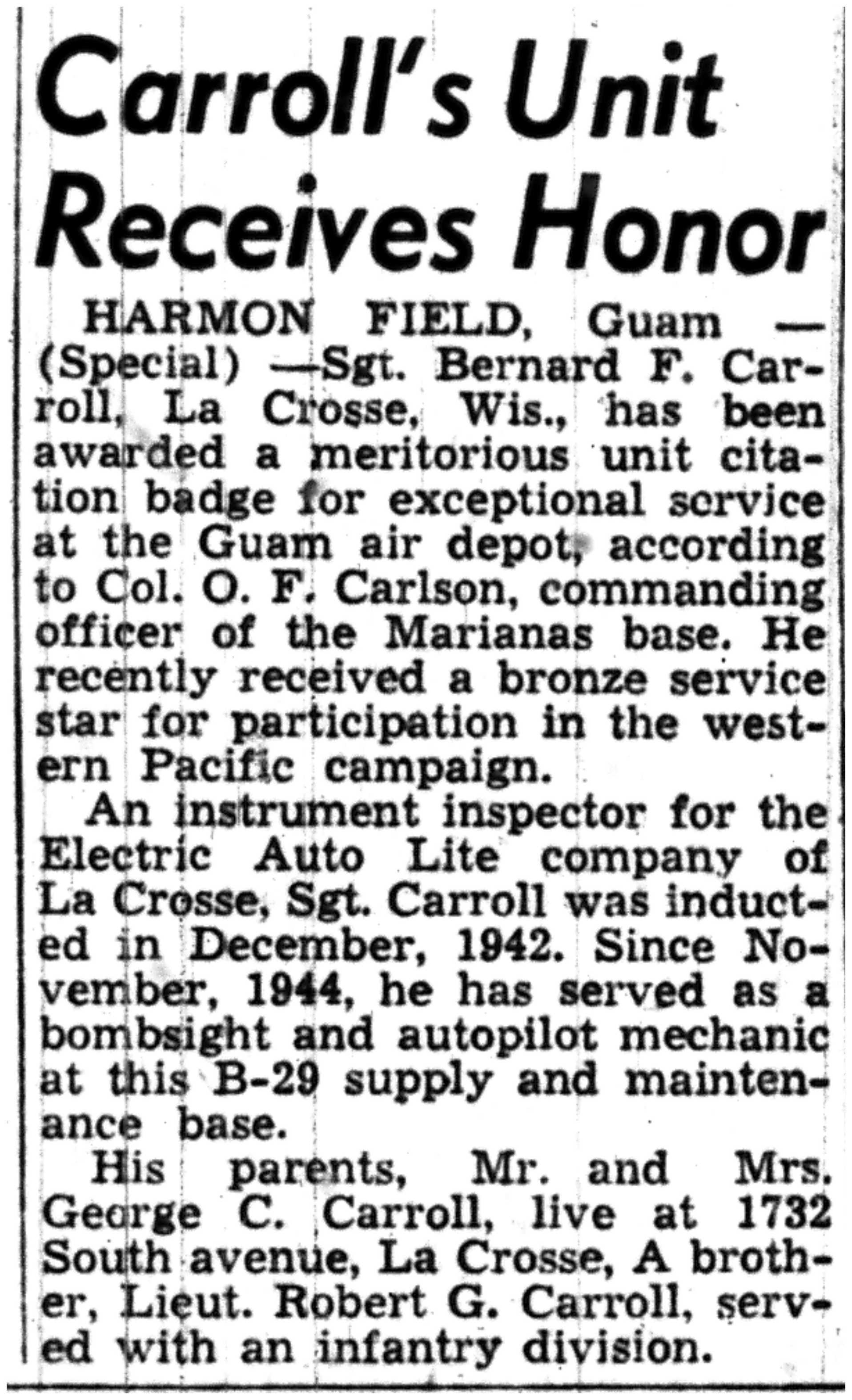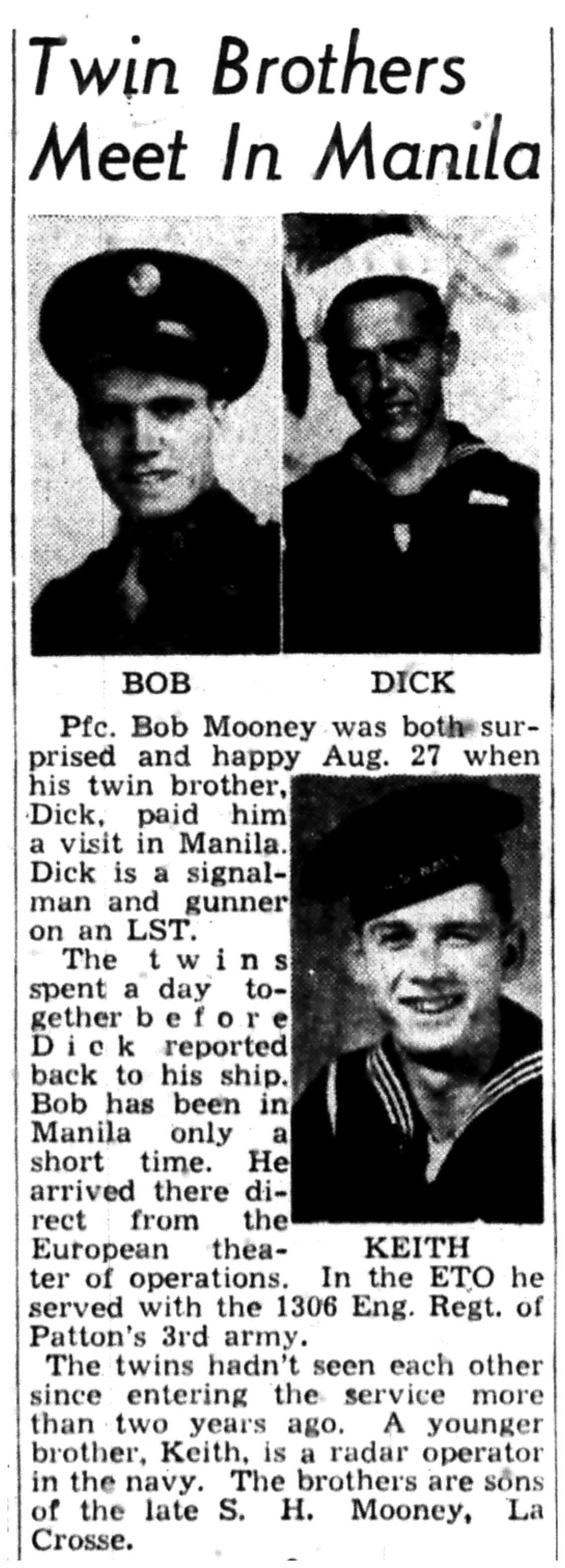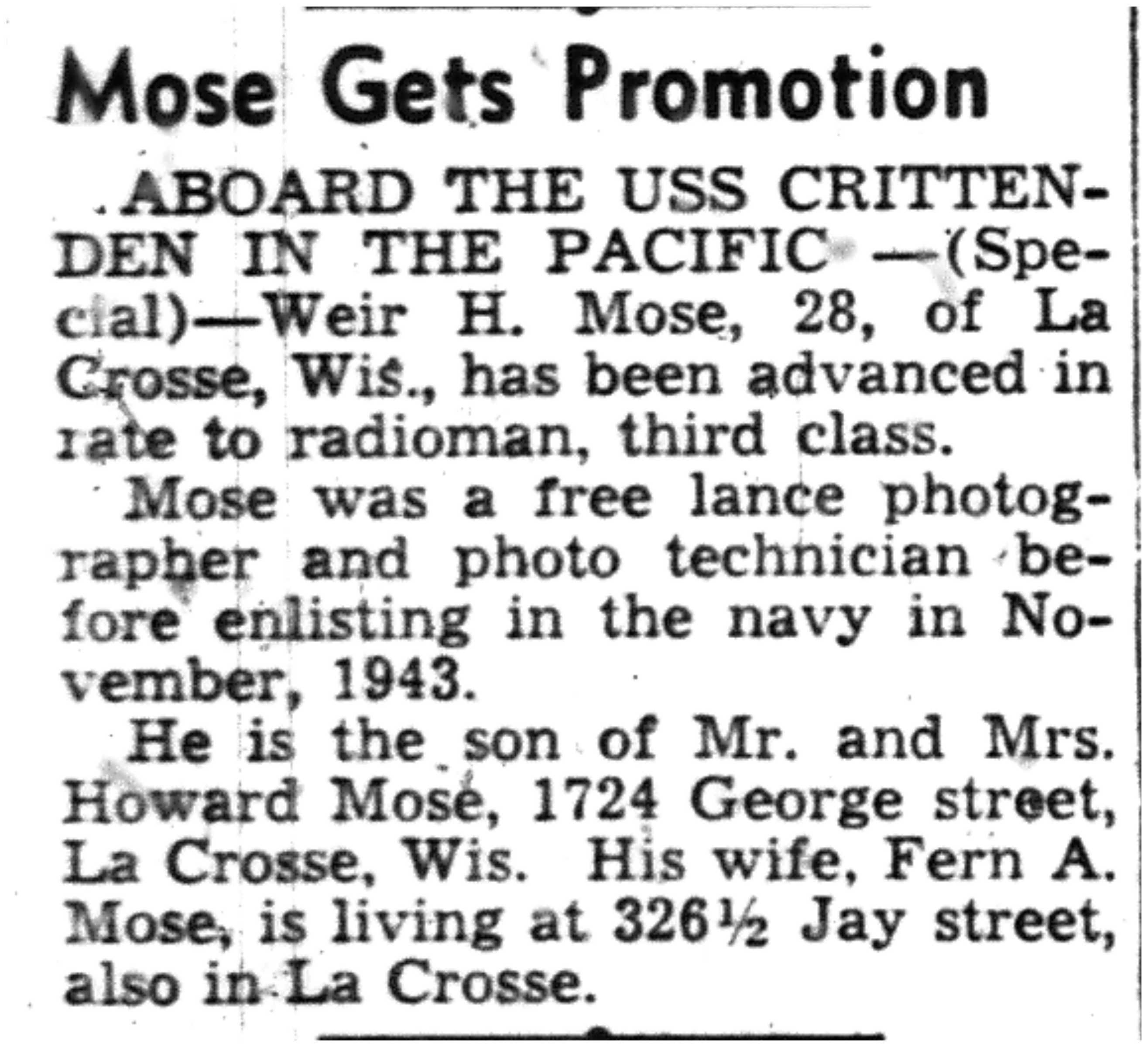 | 1945-9-2 | La Crosse Tribune p10 | |