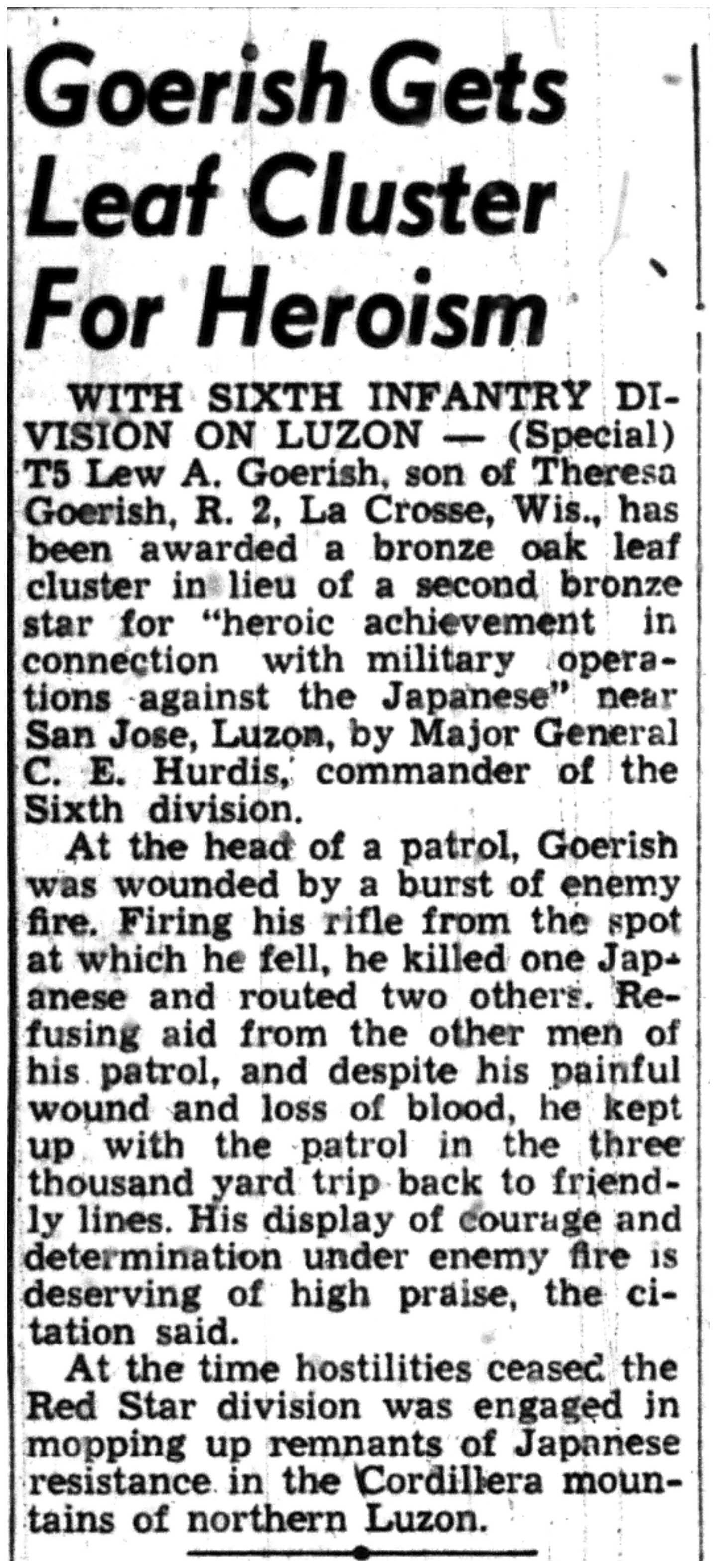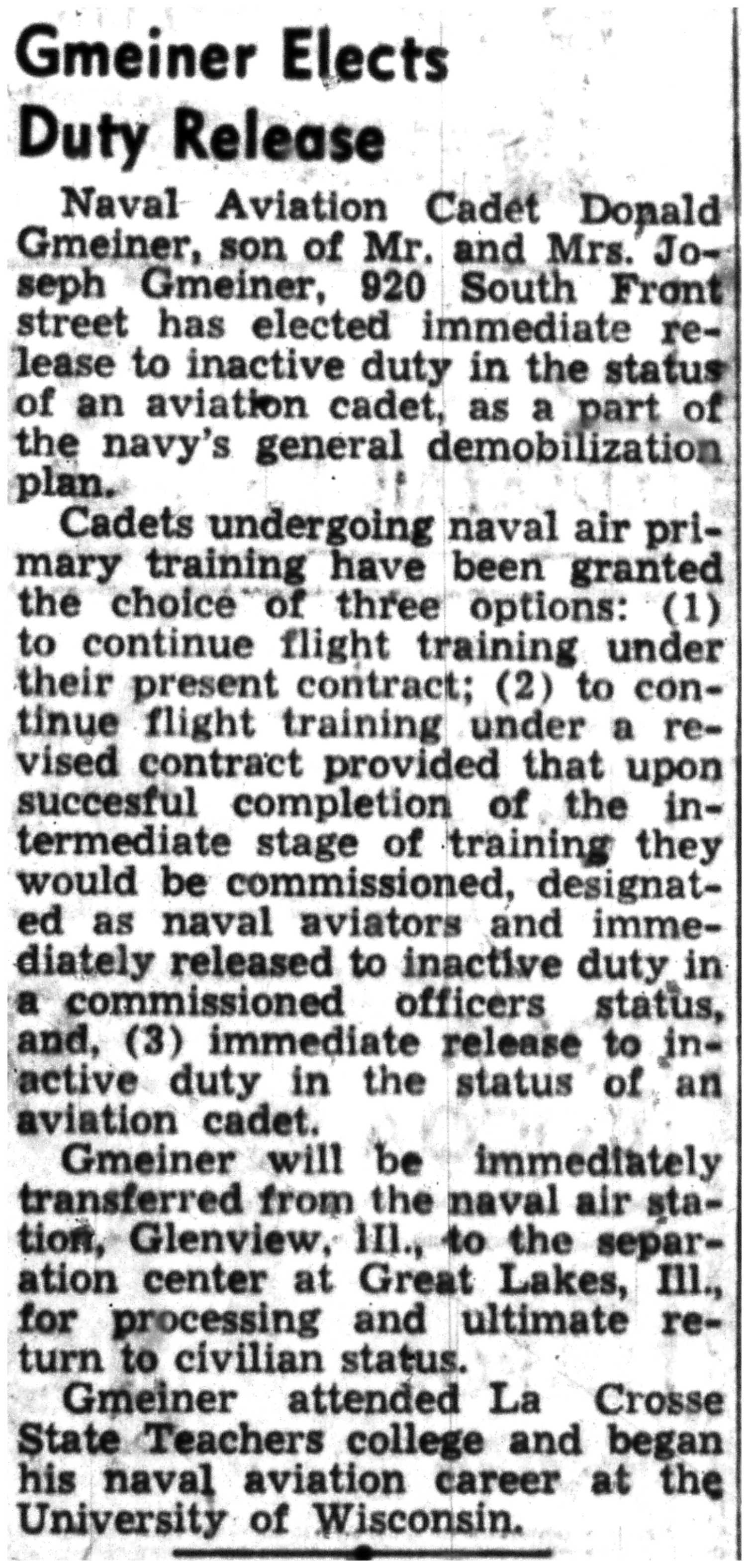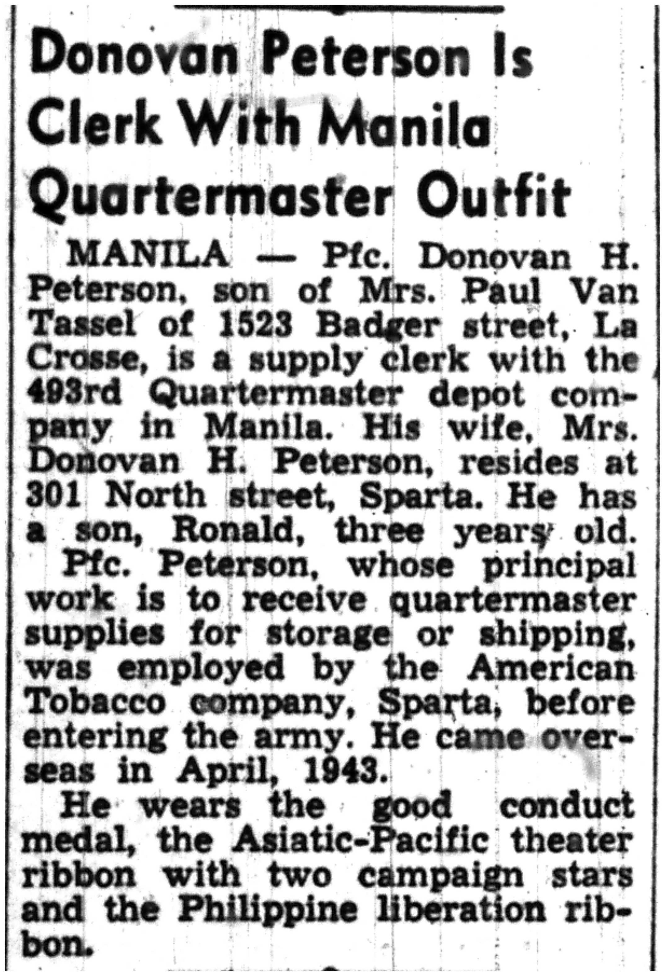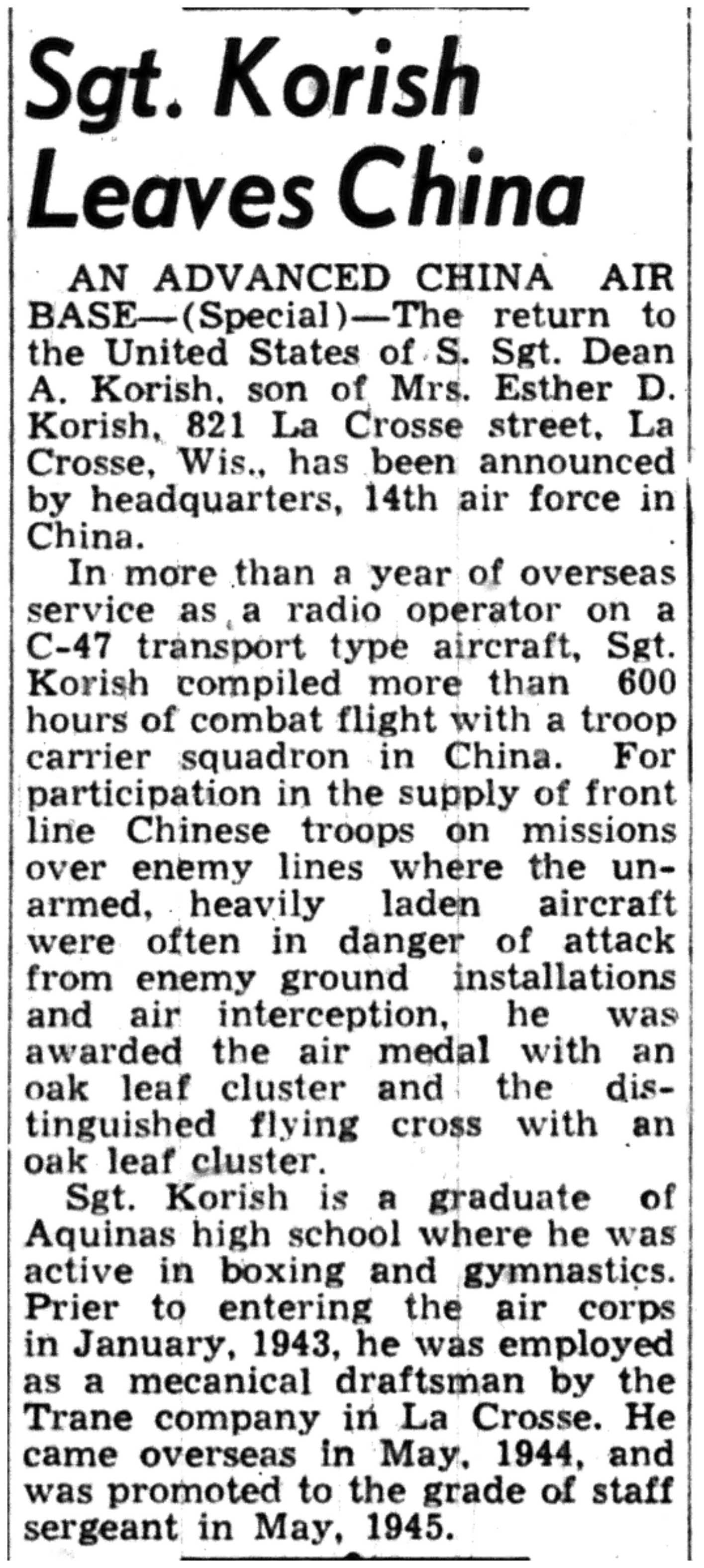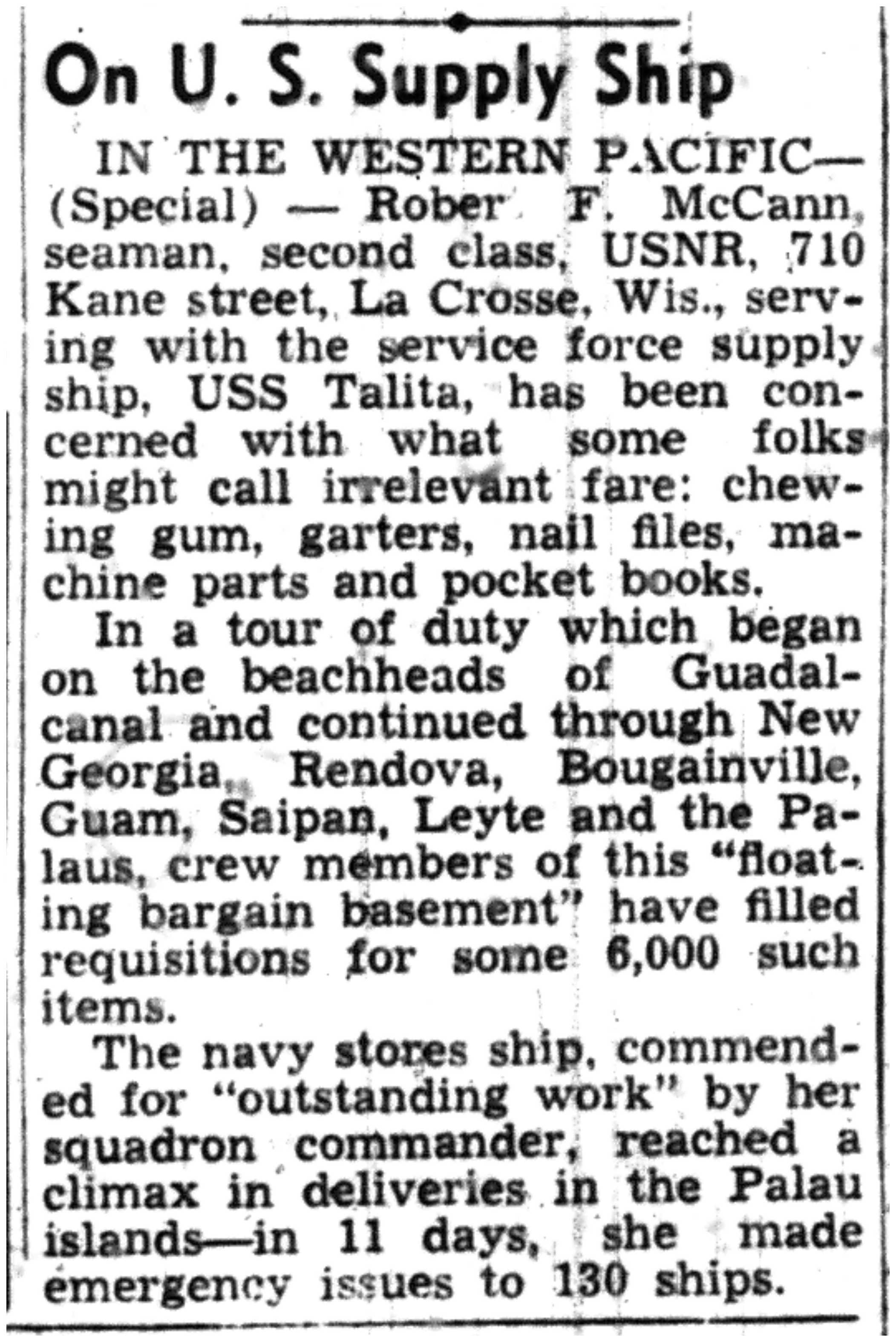 | 1945-9-2 | La Crosse Tribune p10 | |