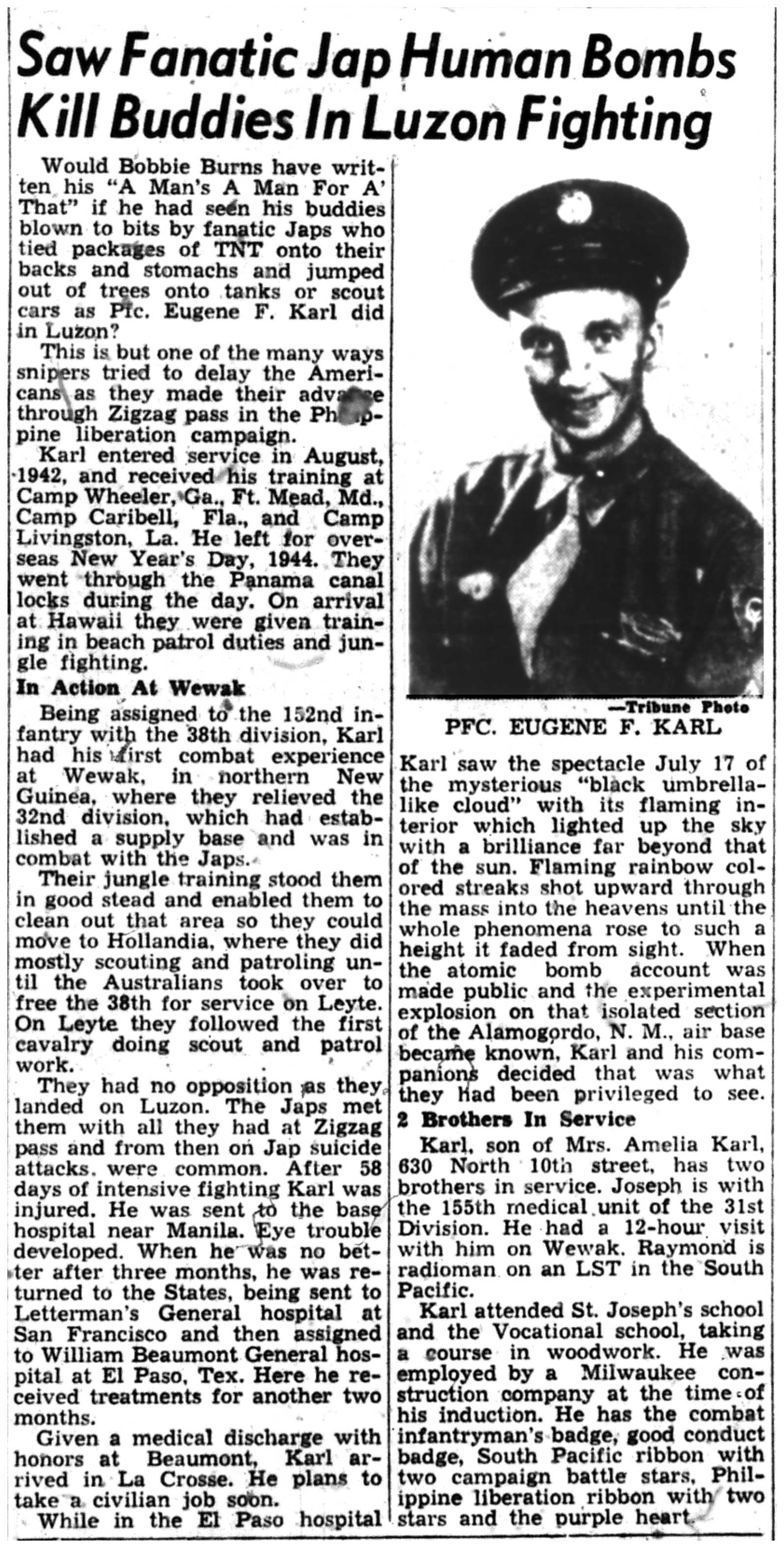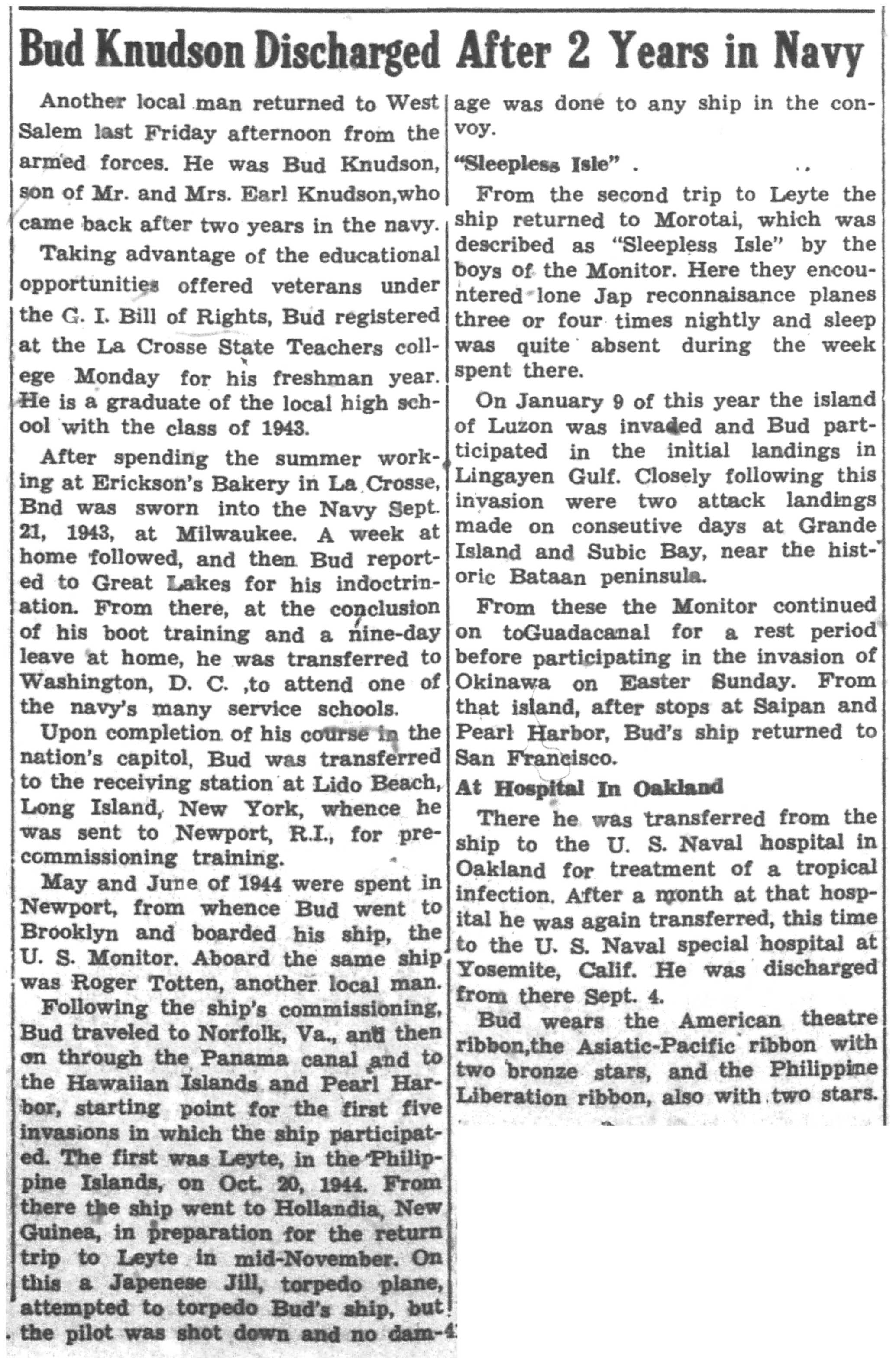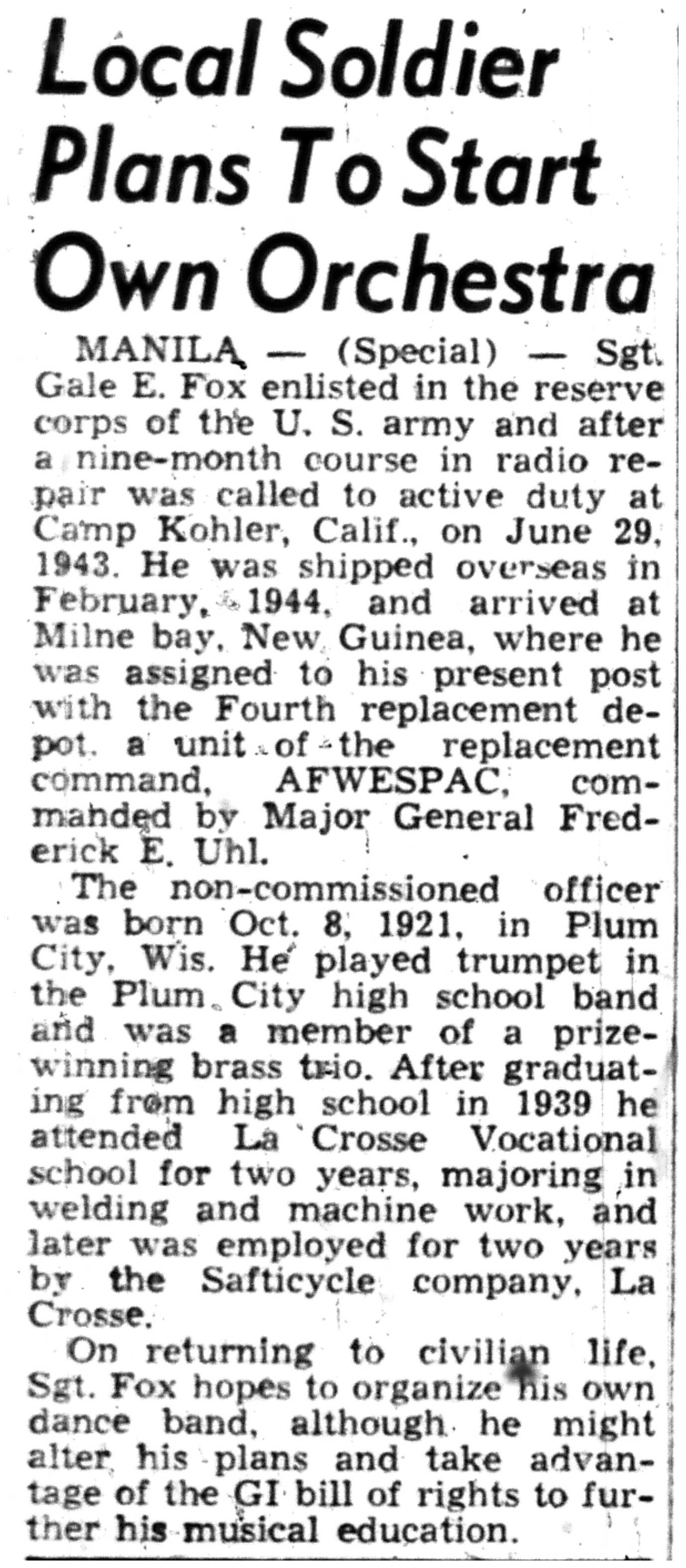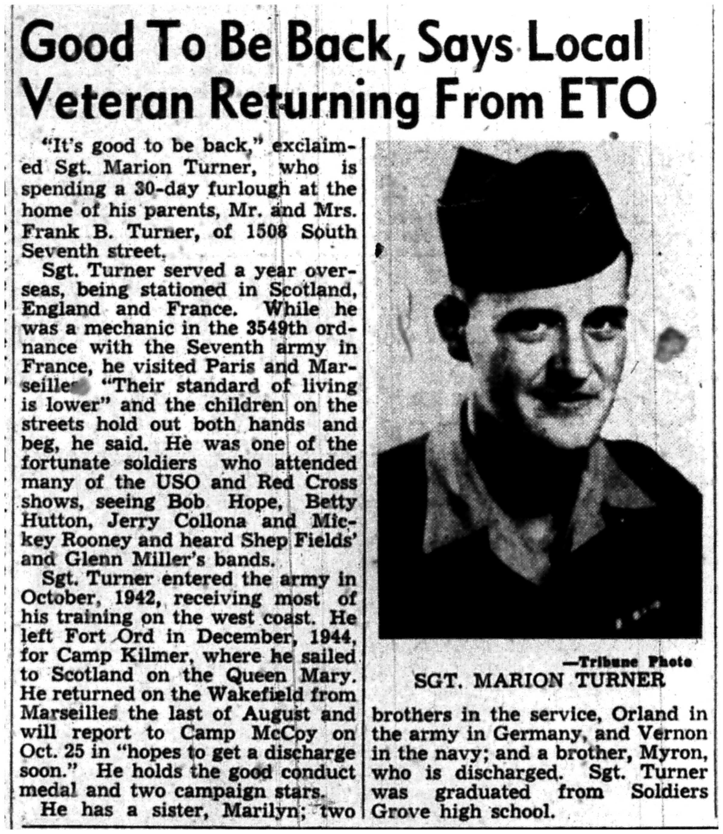 | 1945-9-2 | La Crosse Tribune p10 | |