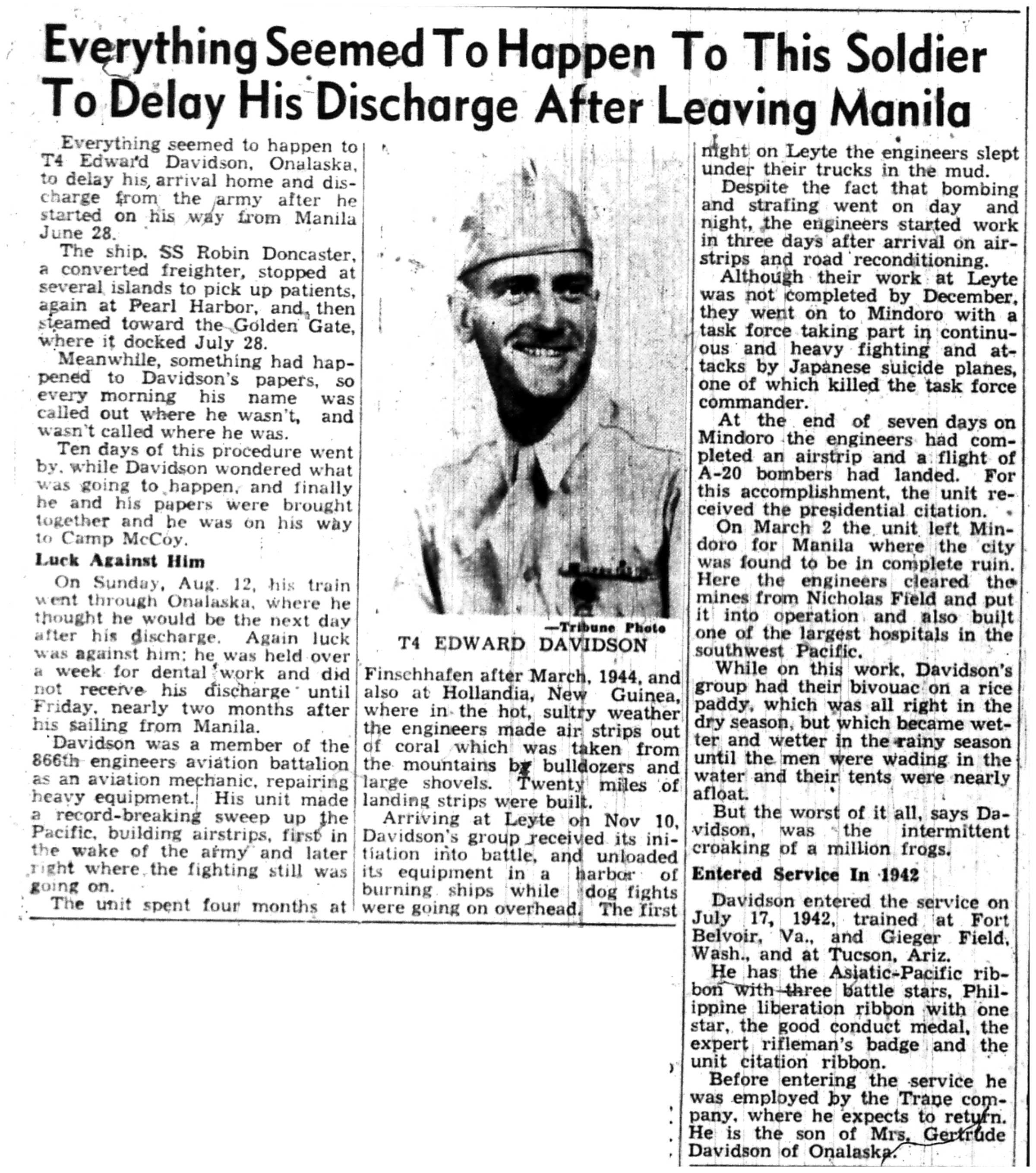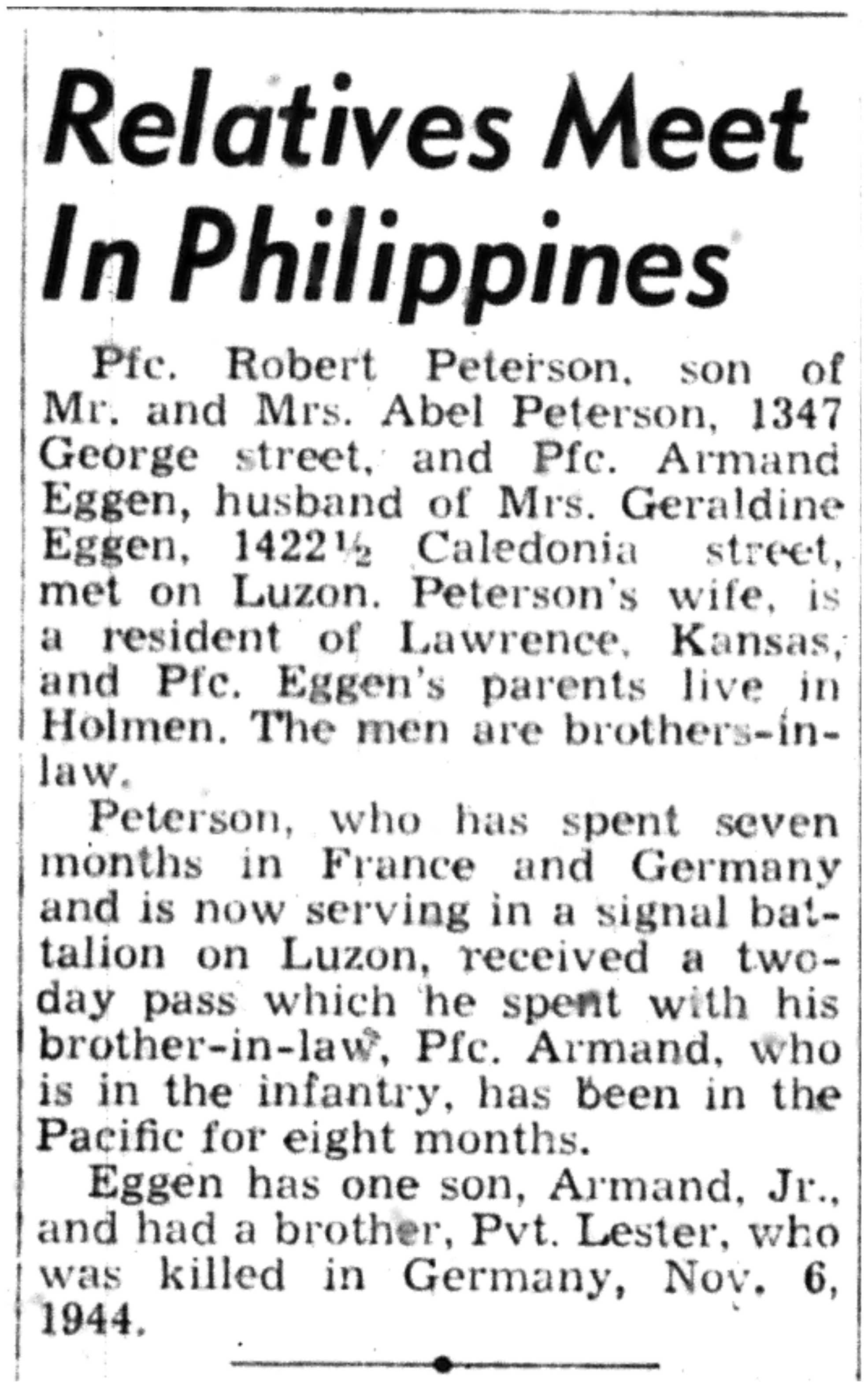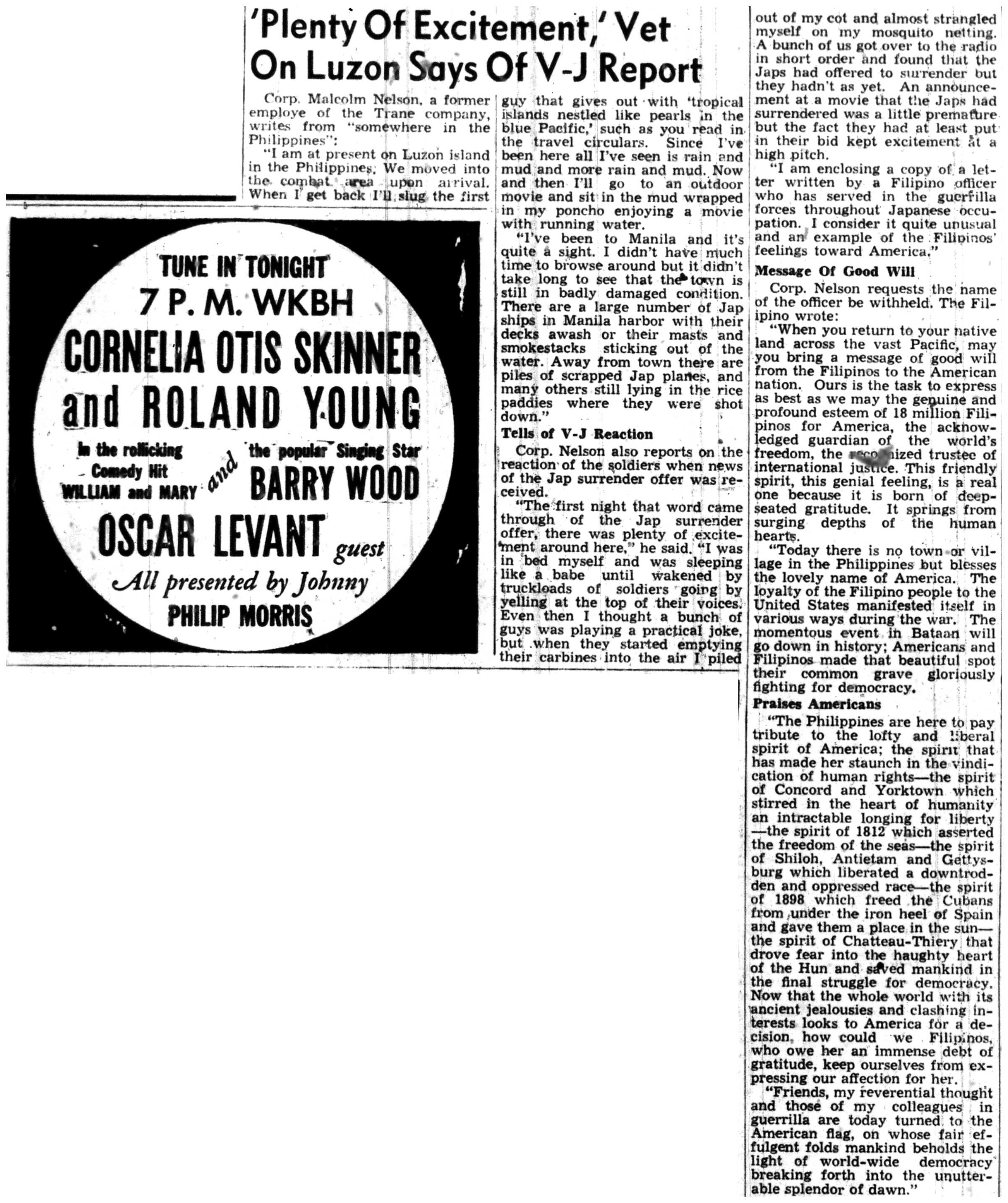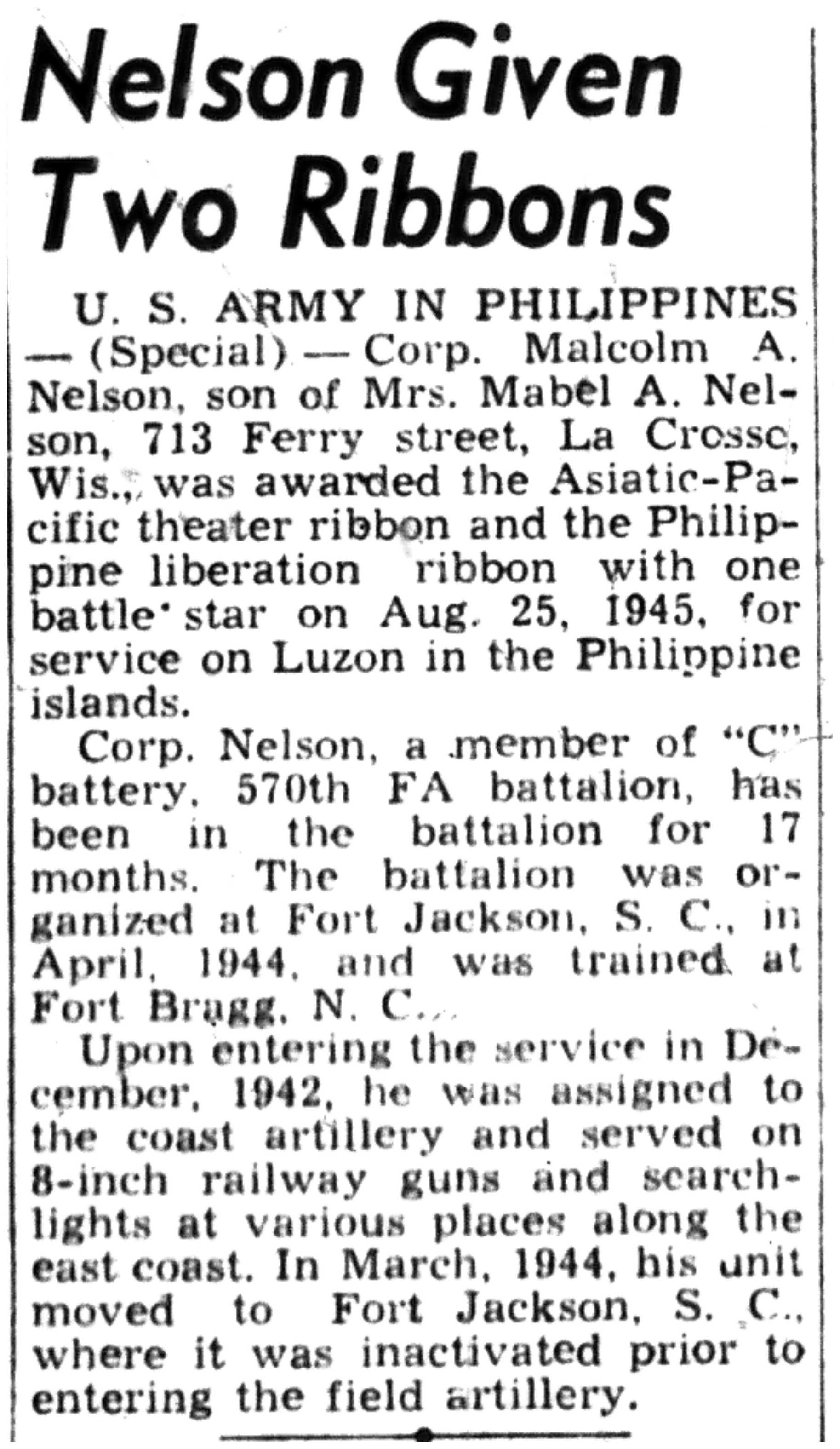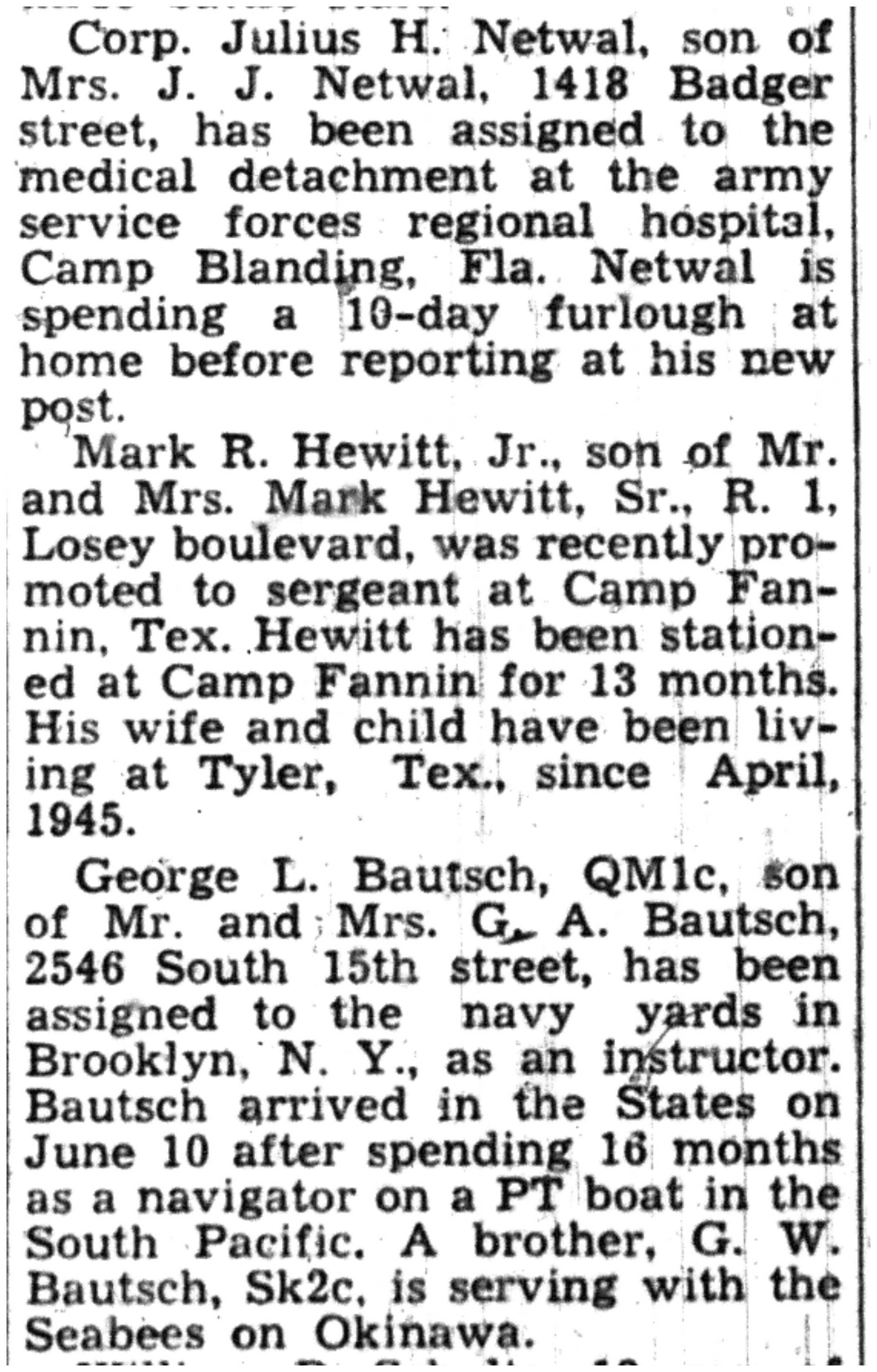 | 1945-9-2 | La Crosse Tribune p10 | |
