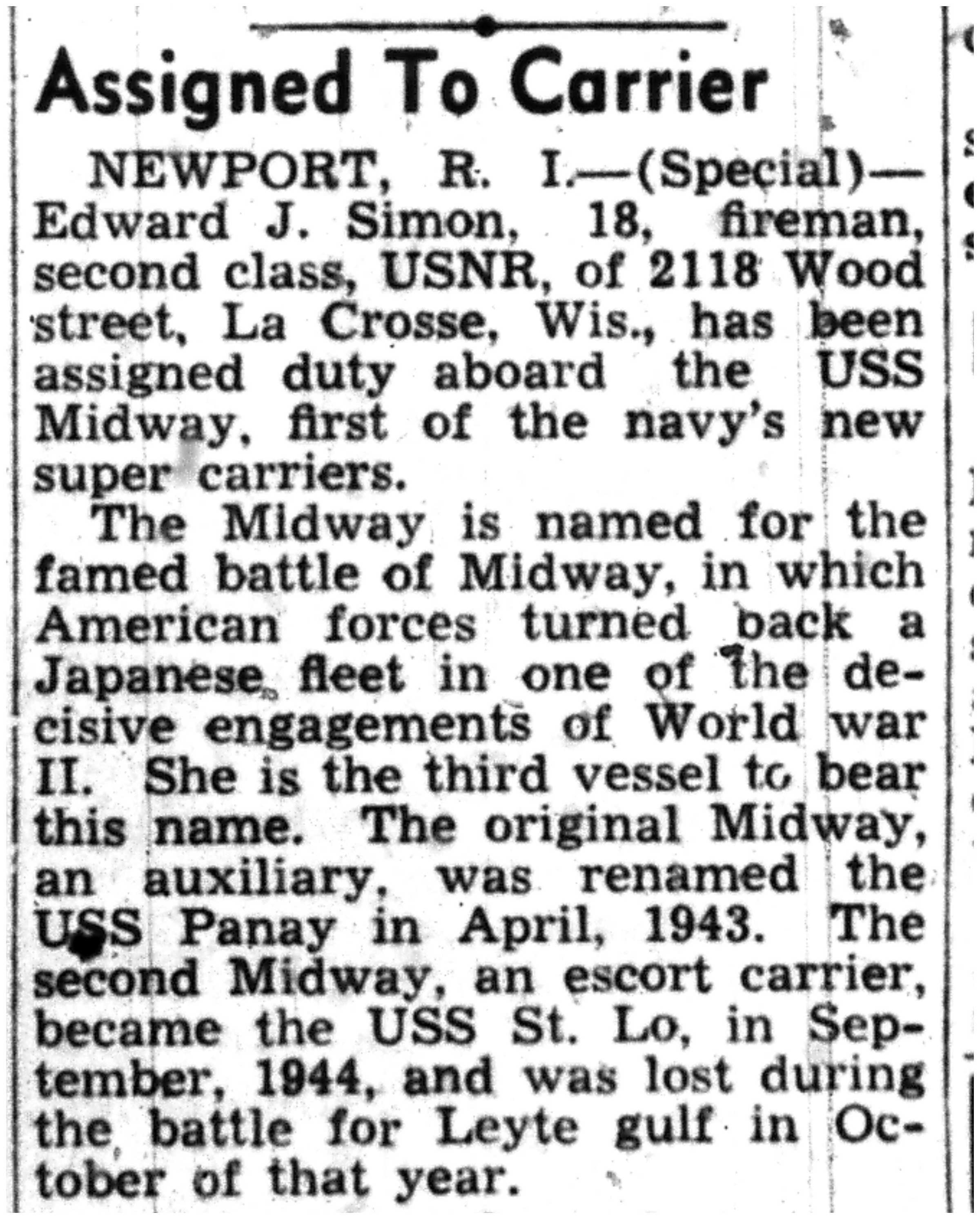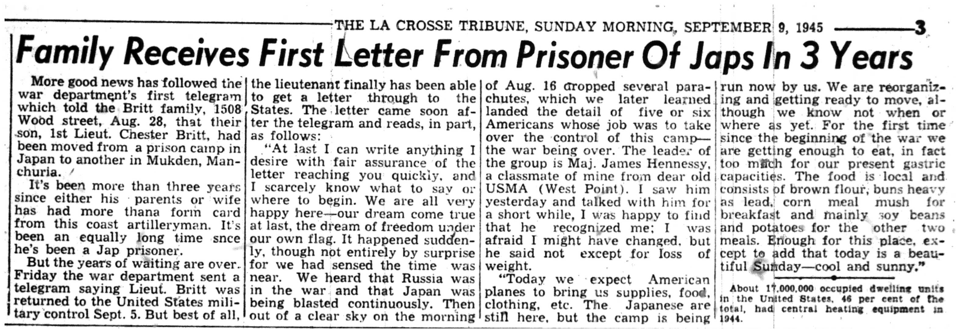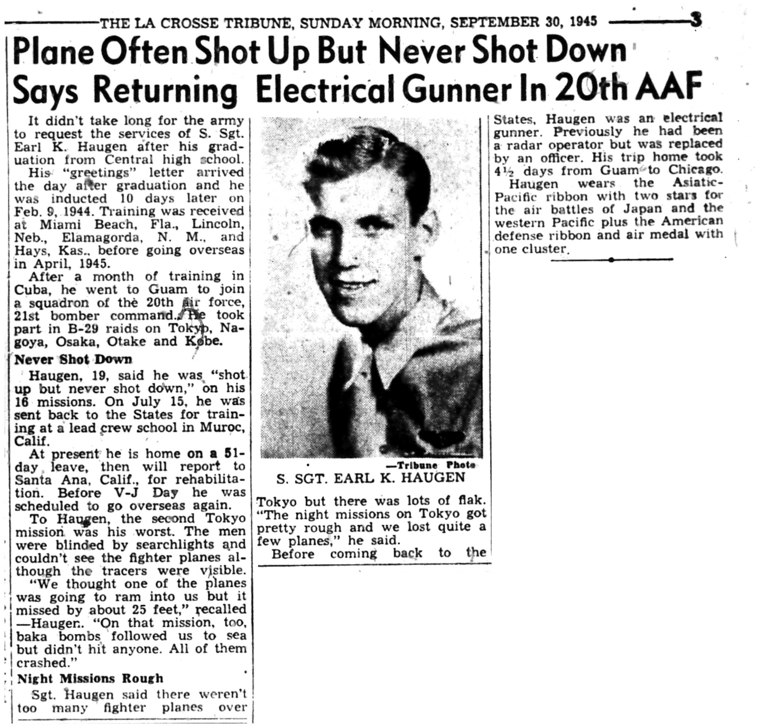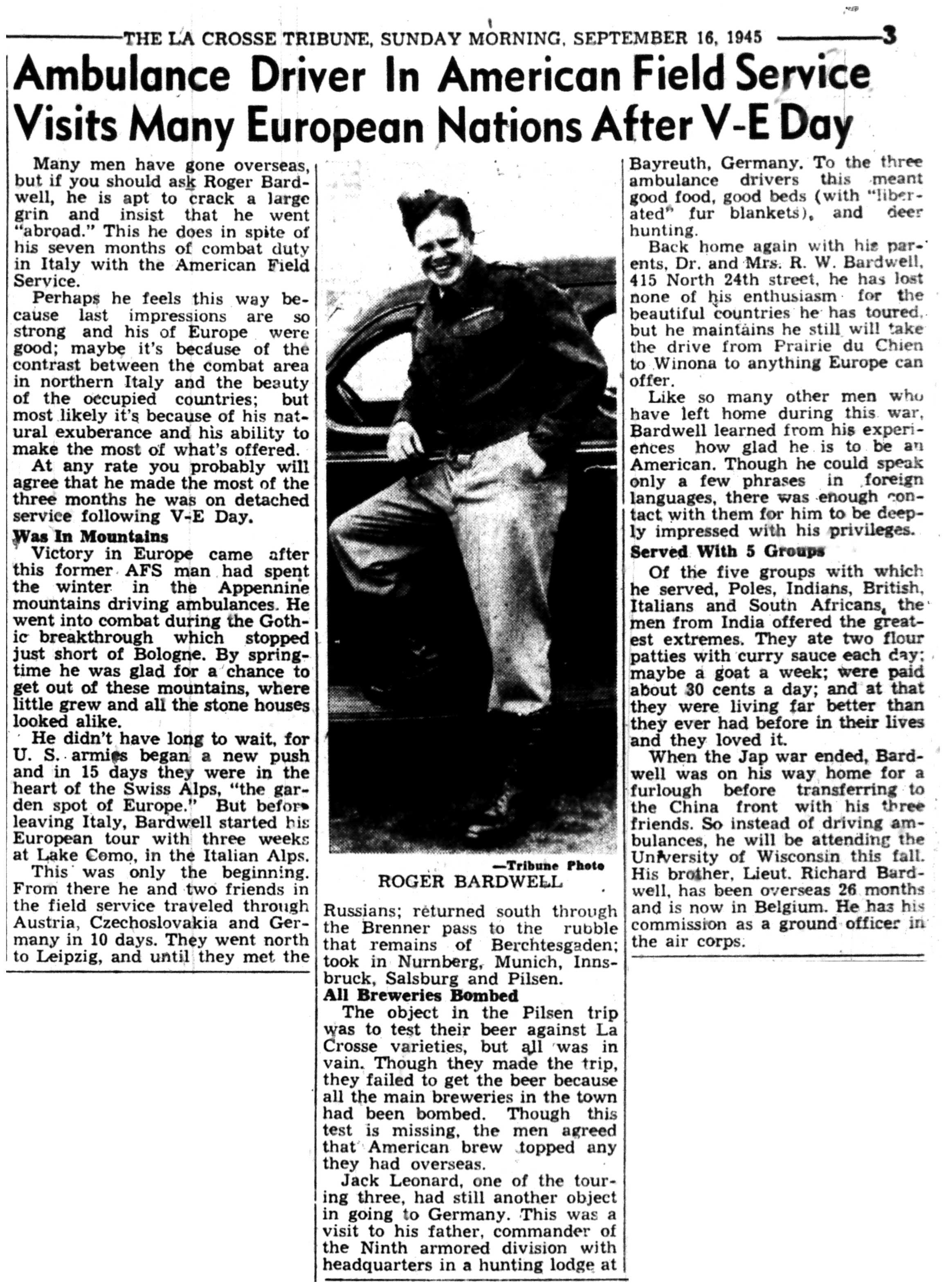 | 1945-9-2 | La Crosse Tribune p3 | |