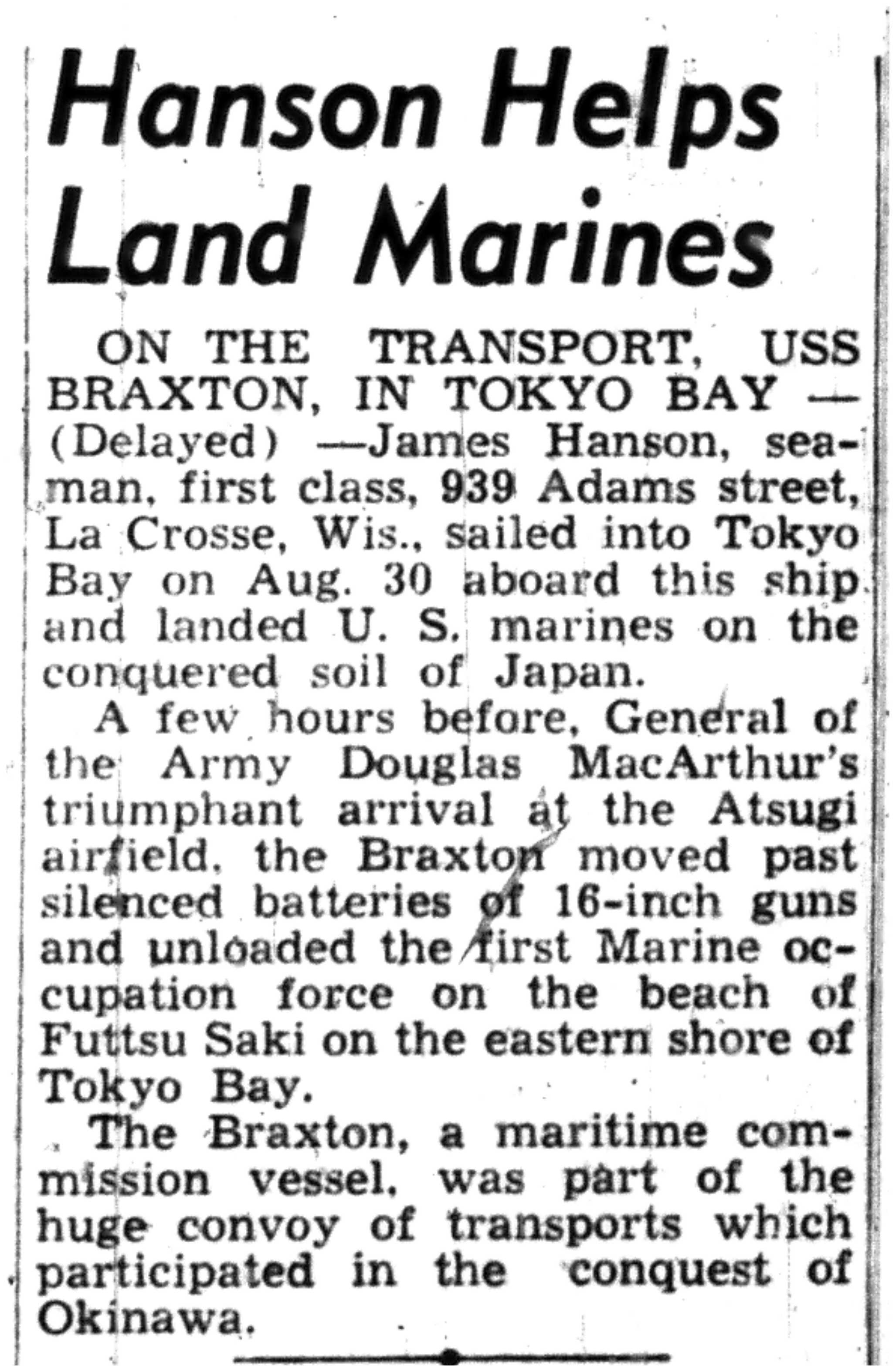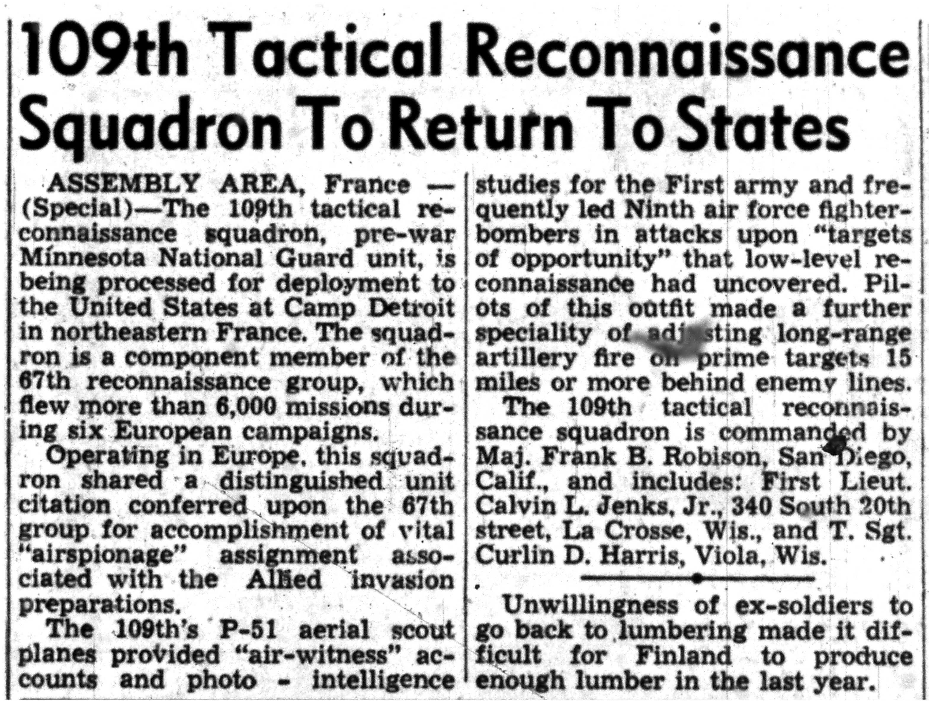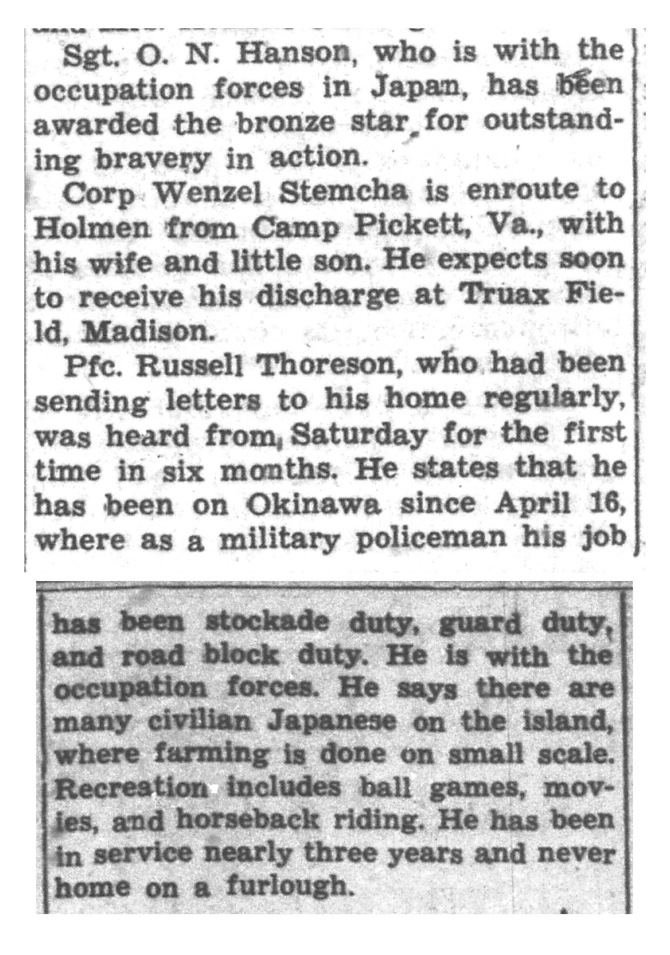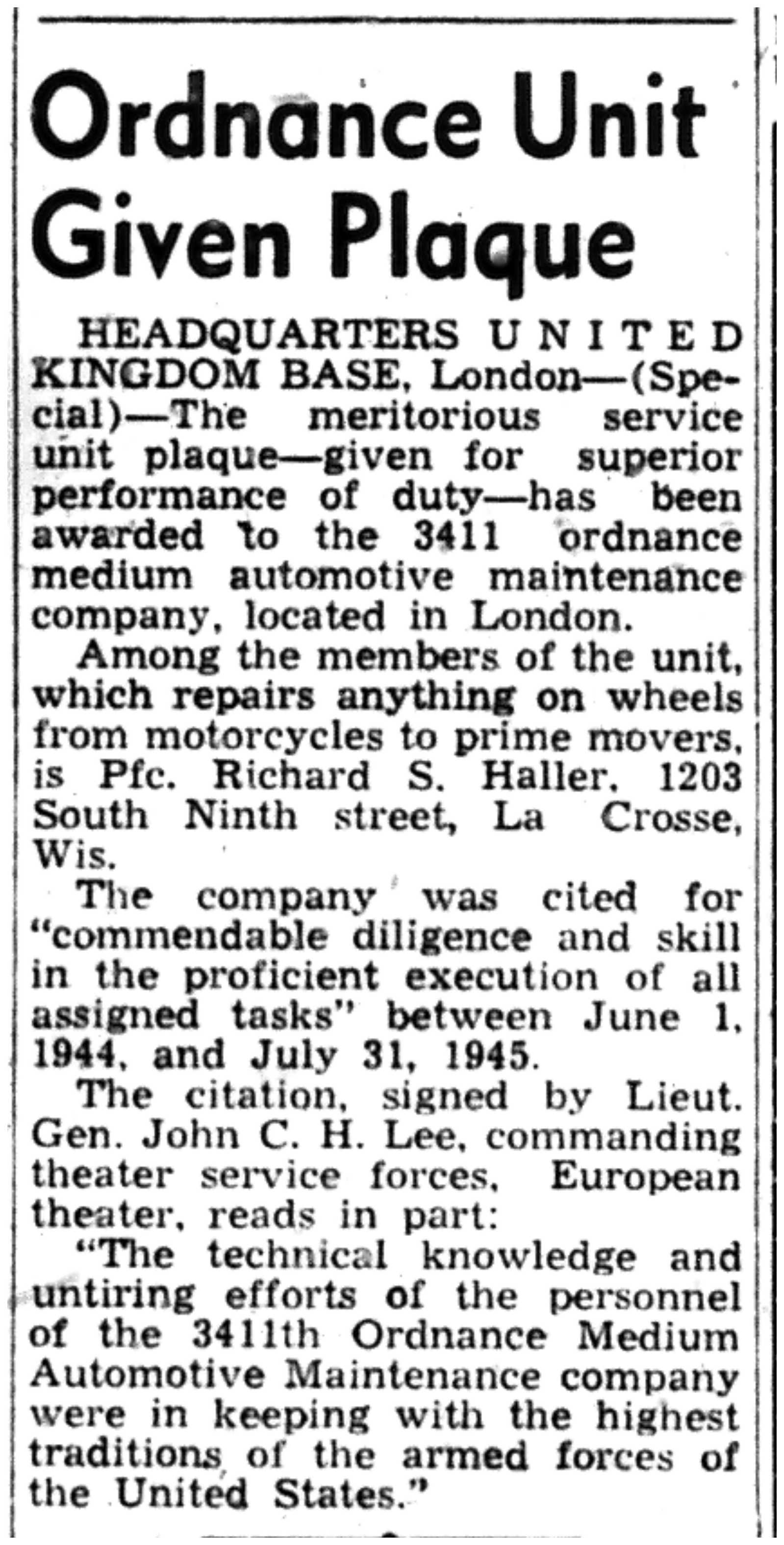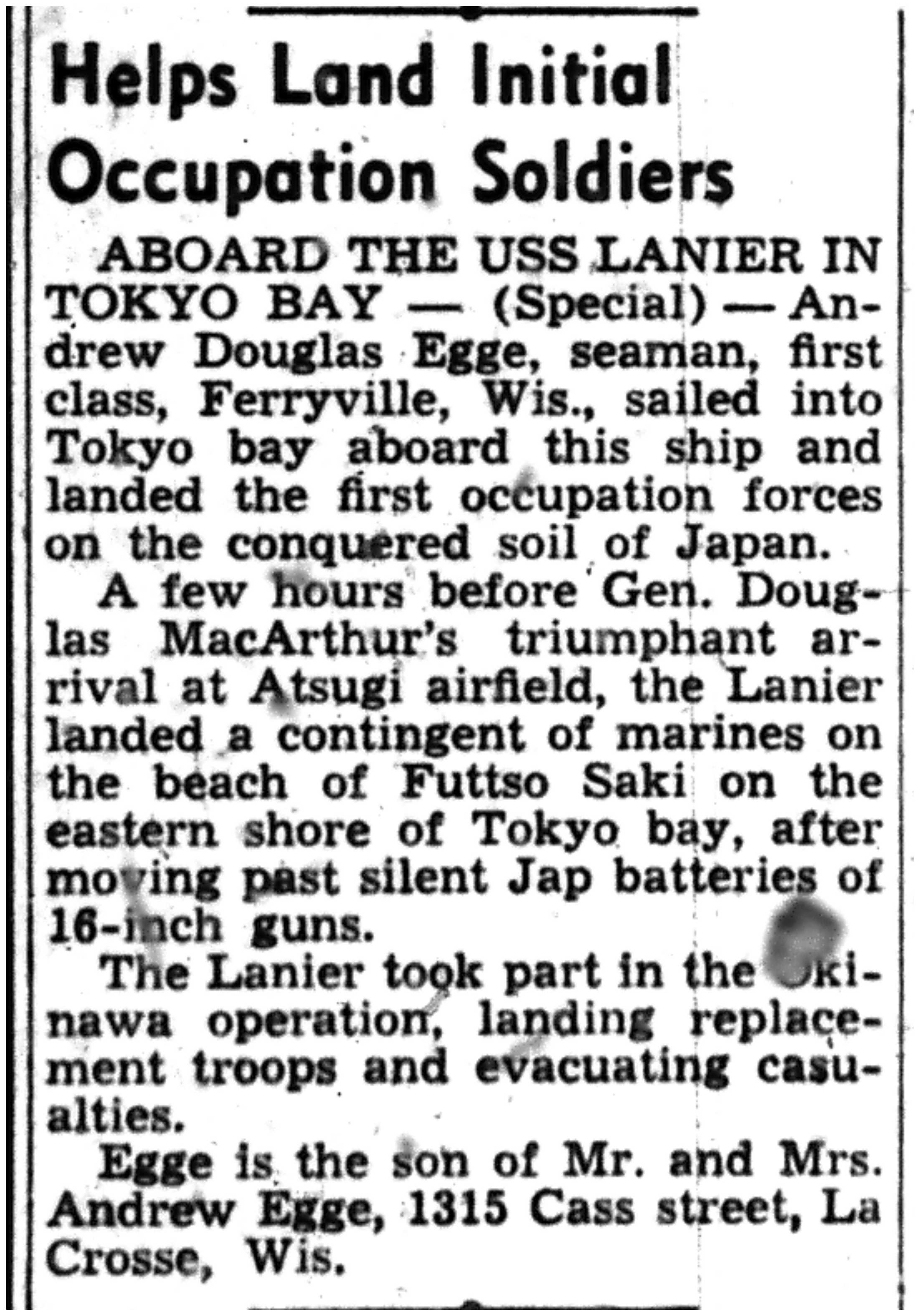 | 1945-9-2 | La Crosse Tribune p3 | |