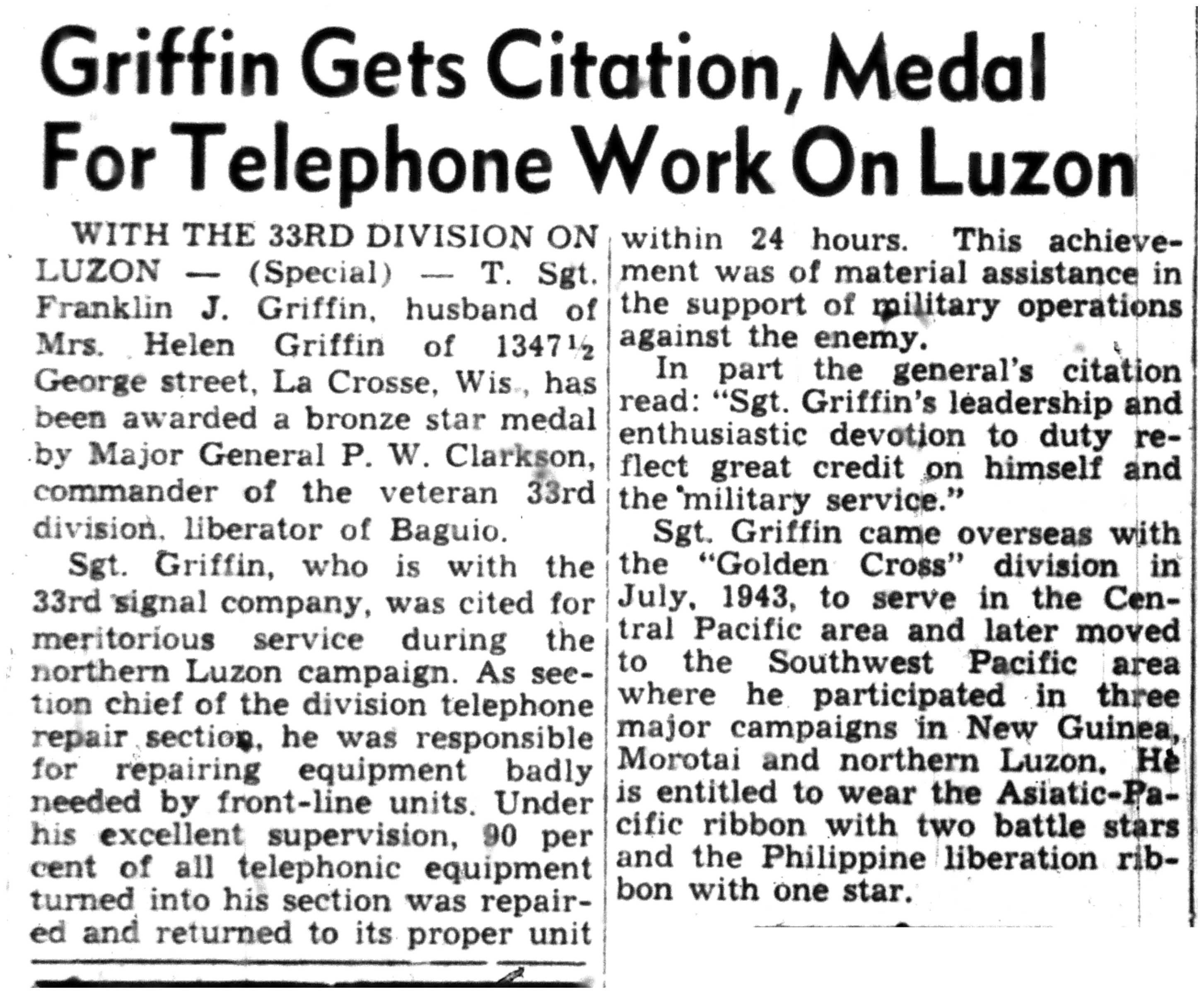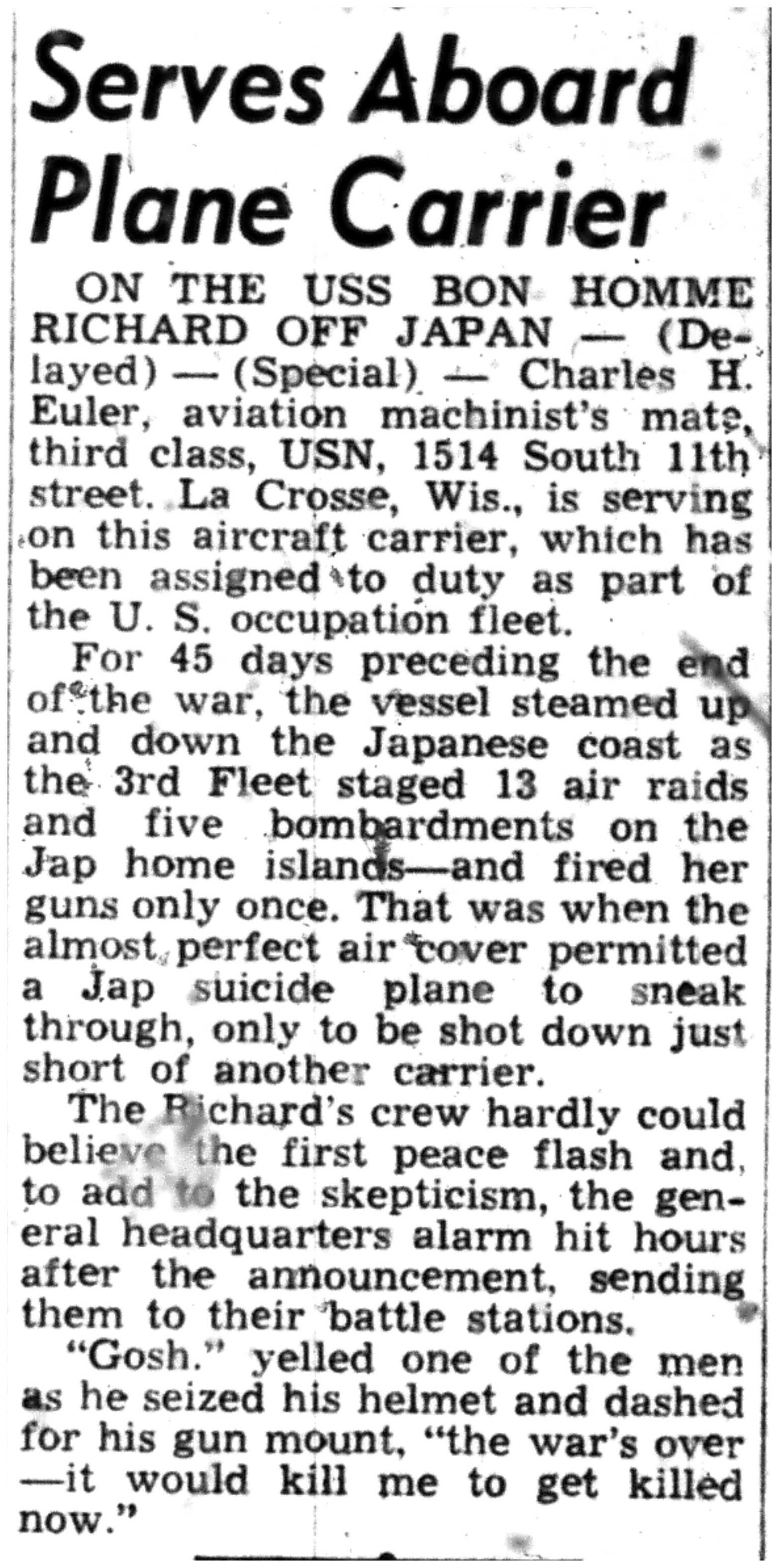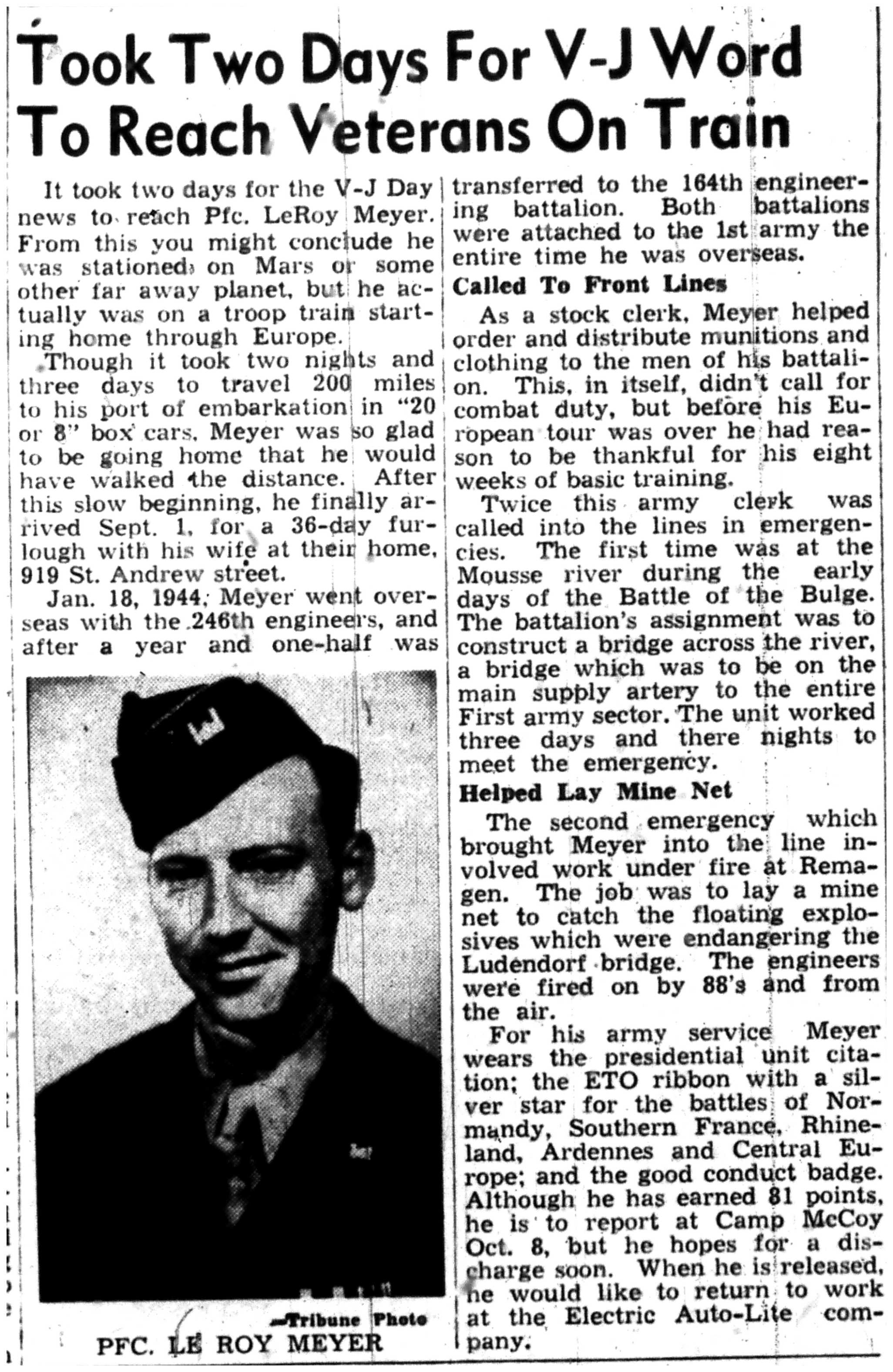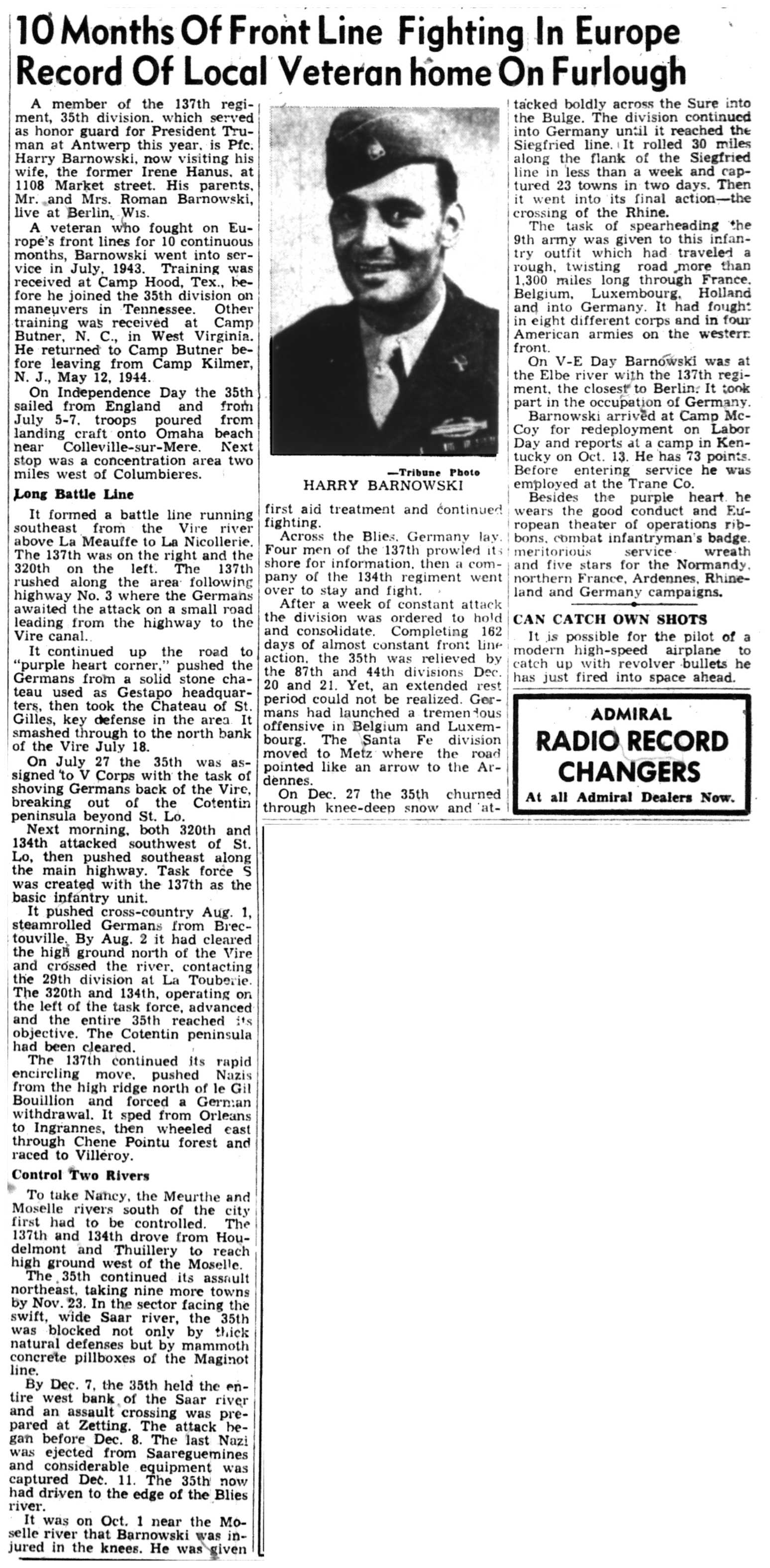 | 1945-9-2 | La Crosse Tribune p3 | |