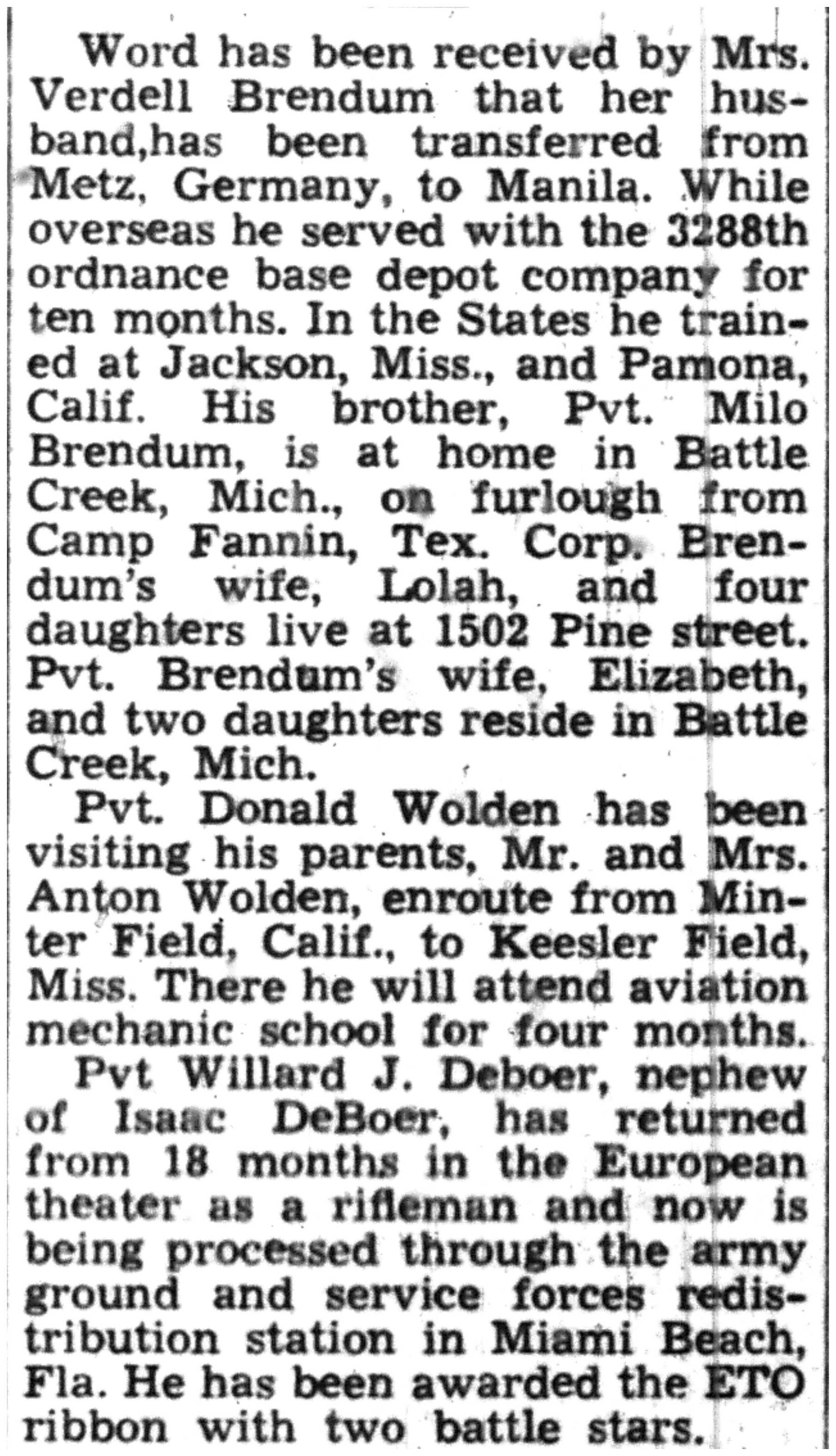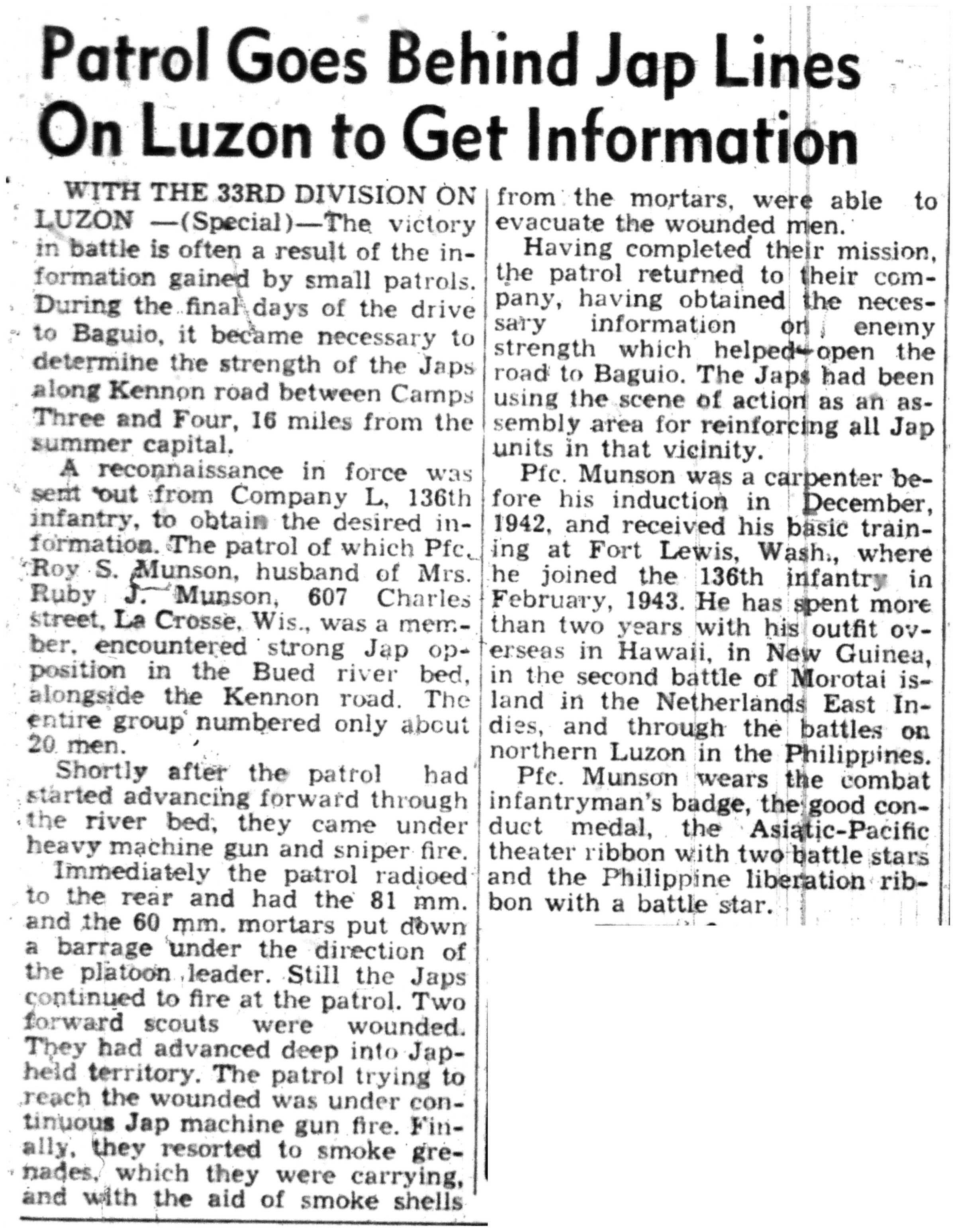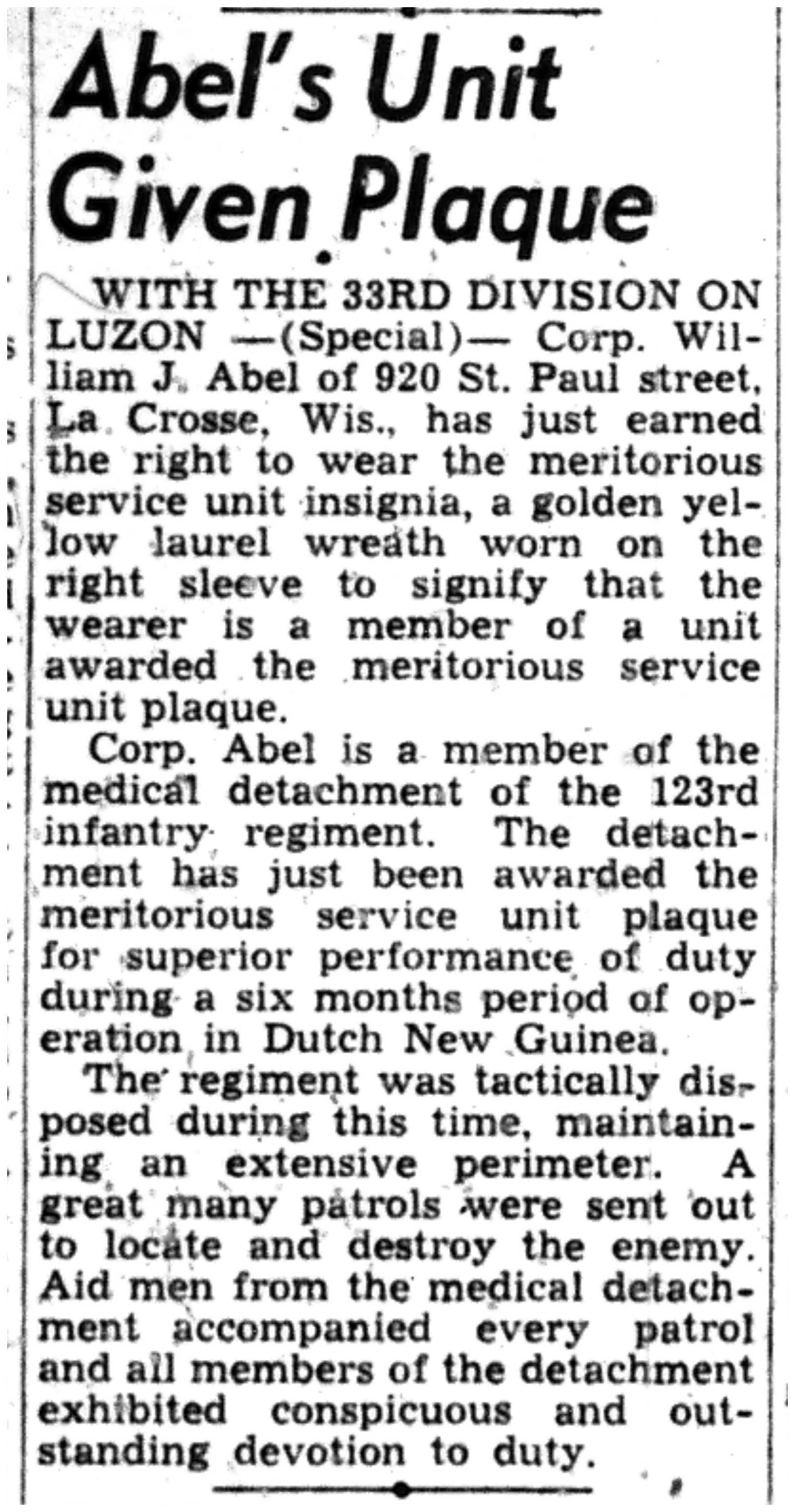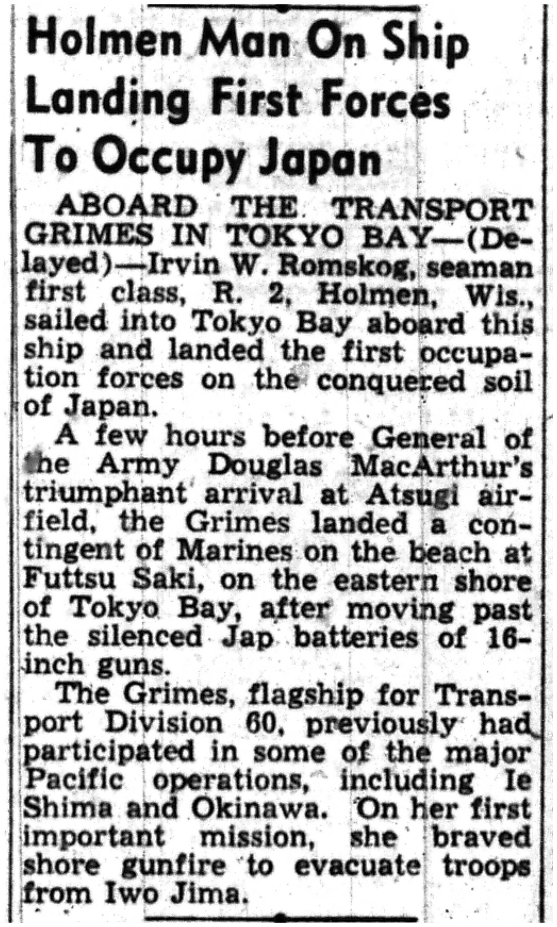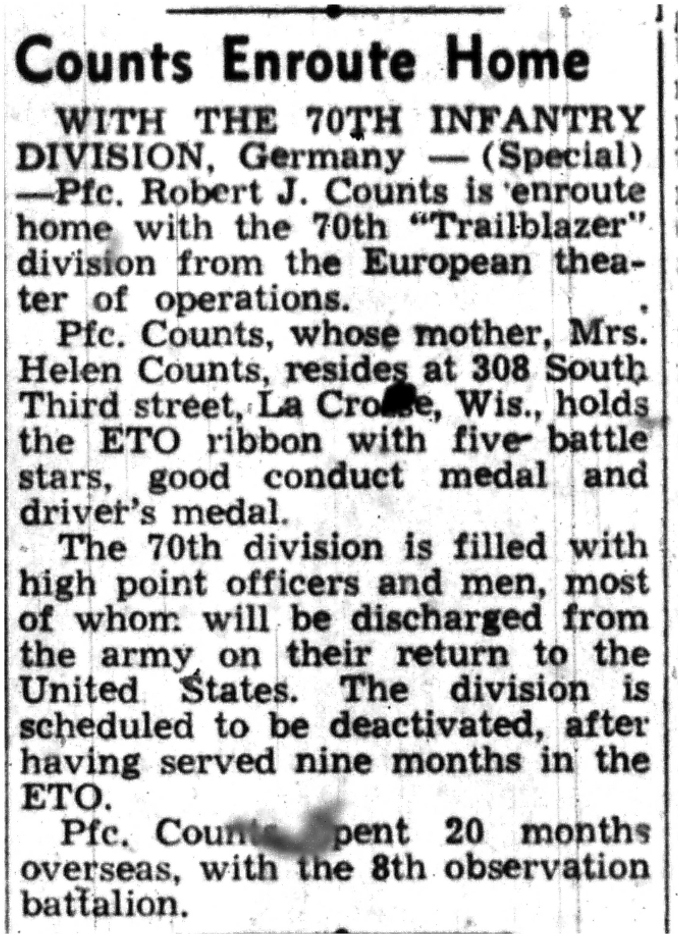 | 1945-9-2 | La Crosse Tribune p3 | |