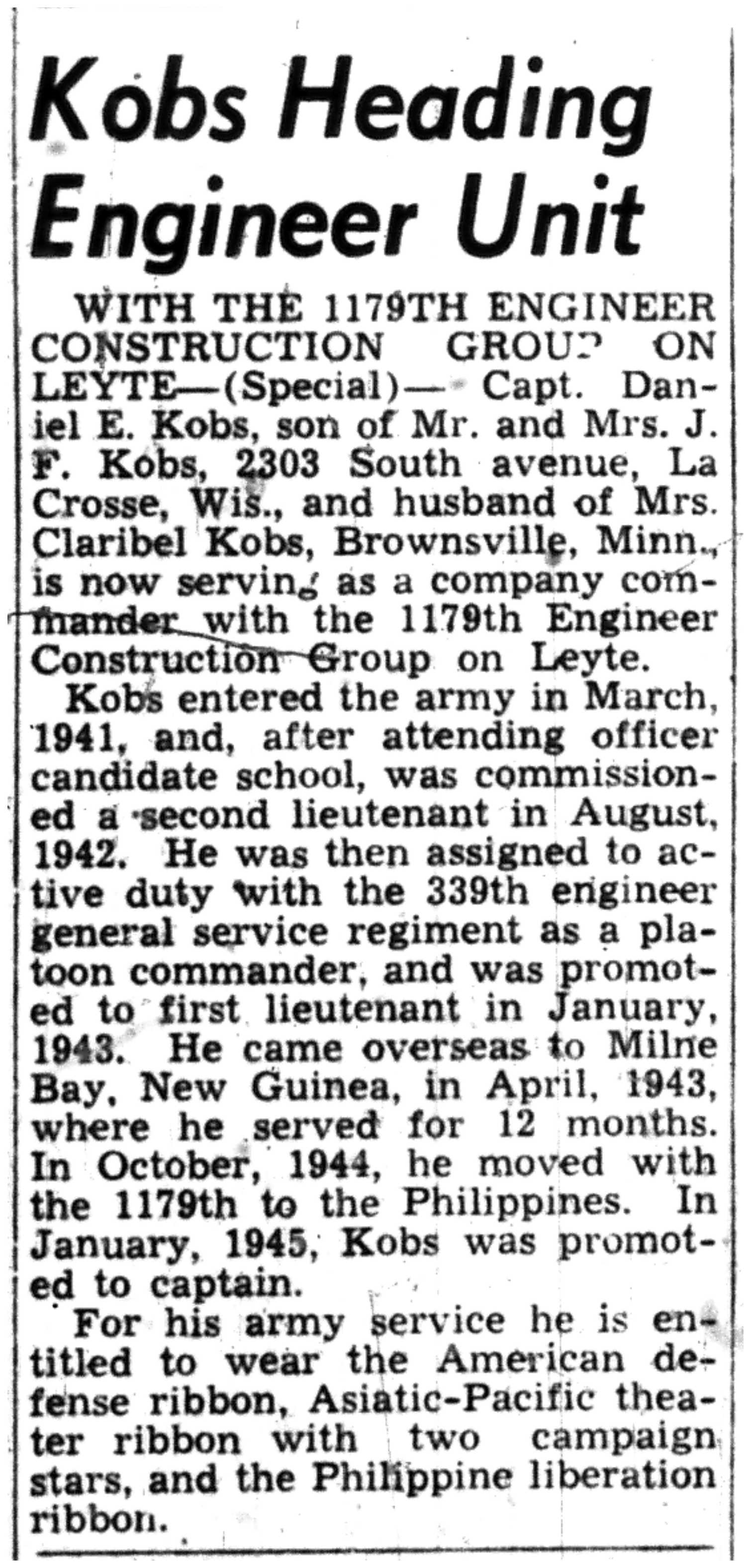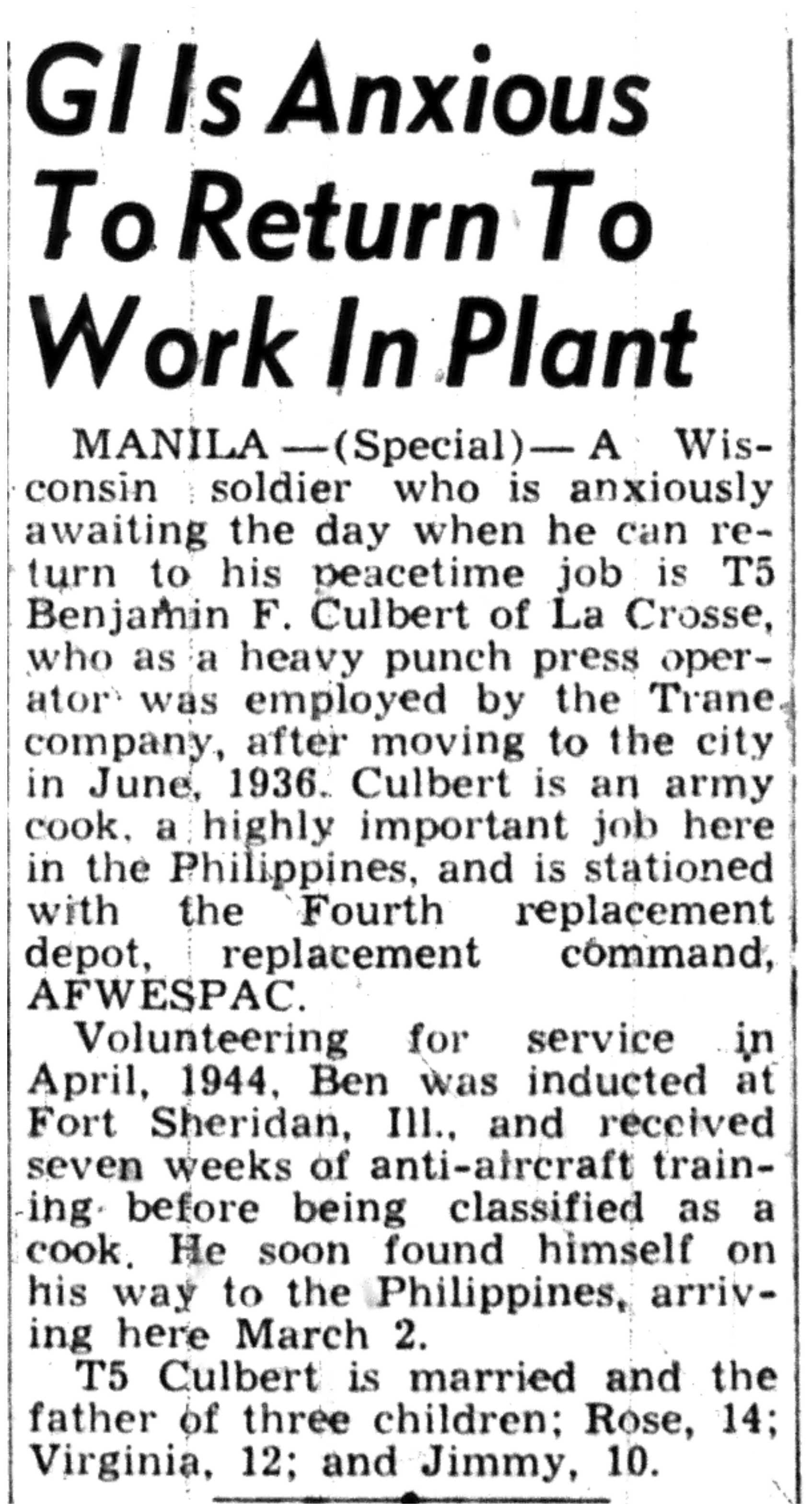 | 1945-9-10 | La Crosse Tribune p5 | |