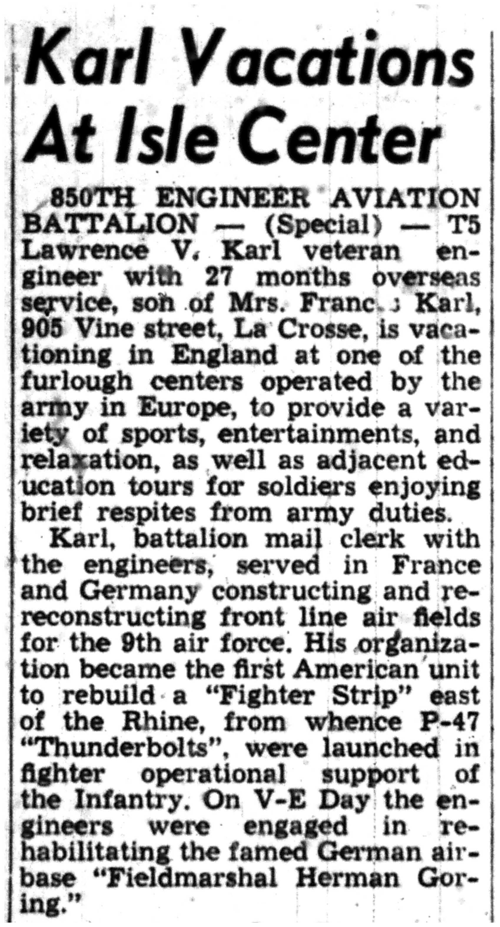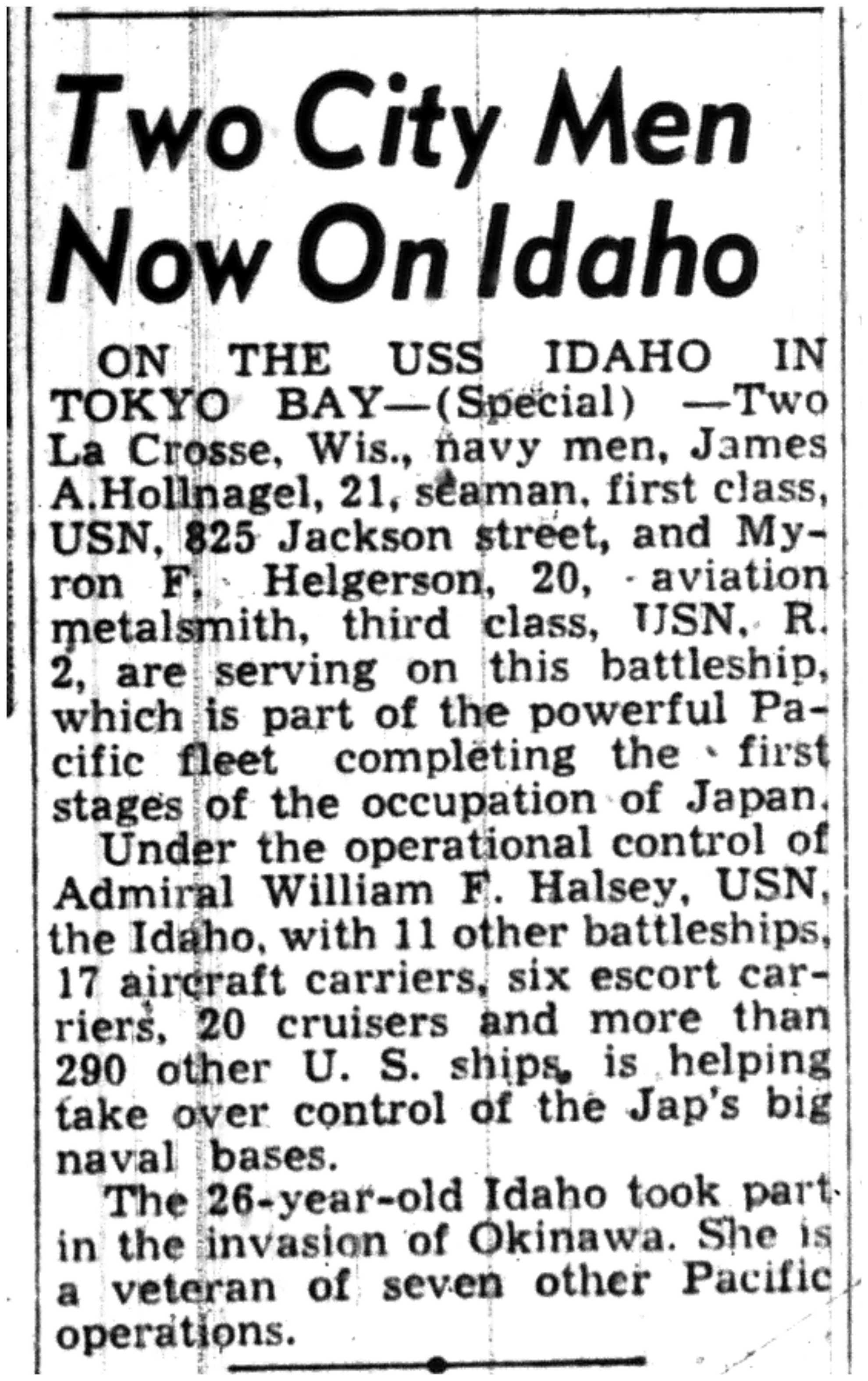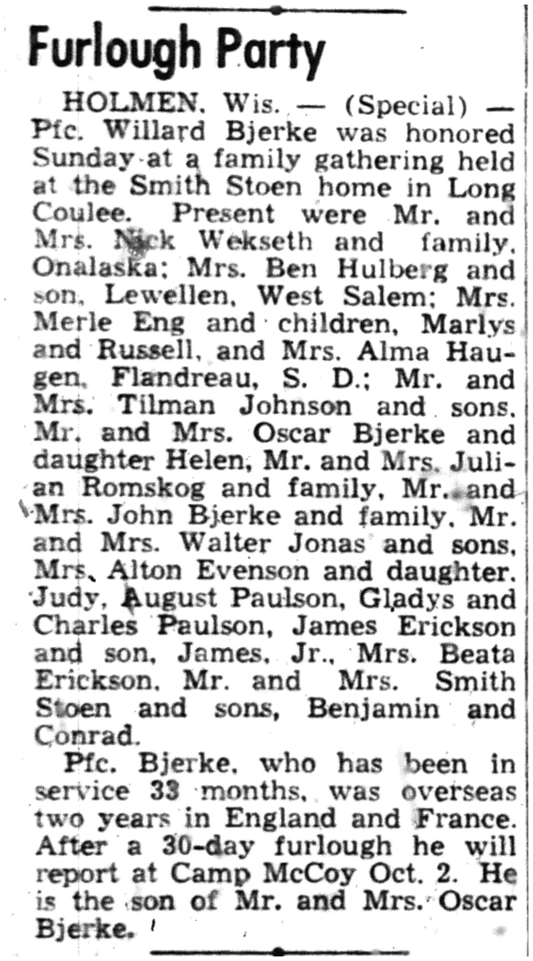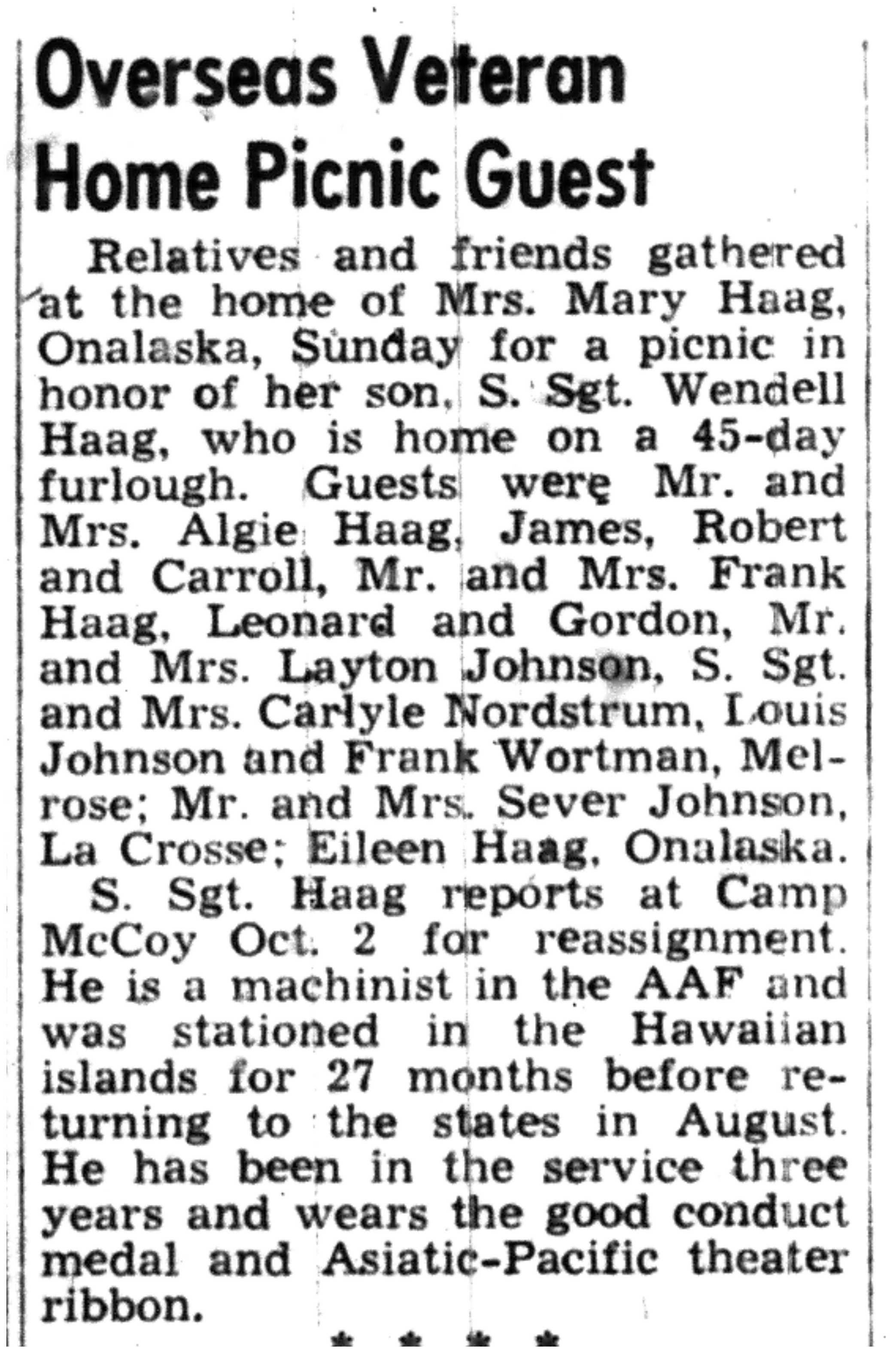 | 1945-9-7 | La Crosse Tribune p8 | |
